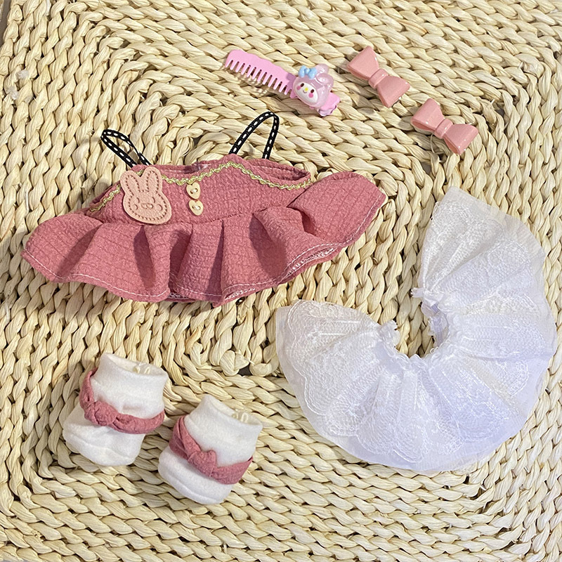 • 핑크 멜빵 + 레이스 스커트 + 머리핀 + 신발 (5 점)
