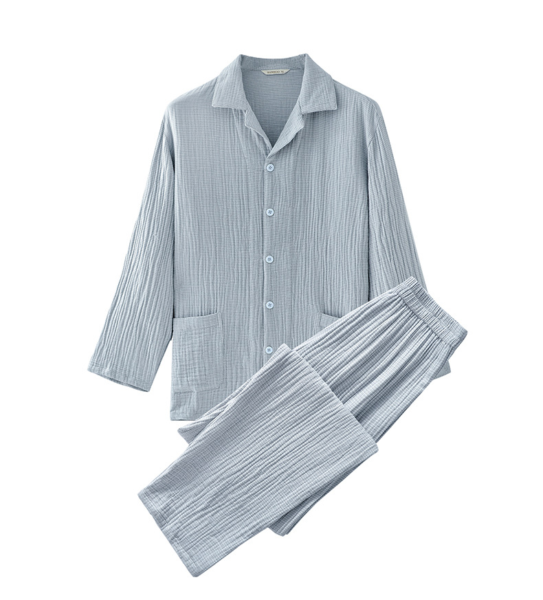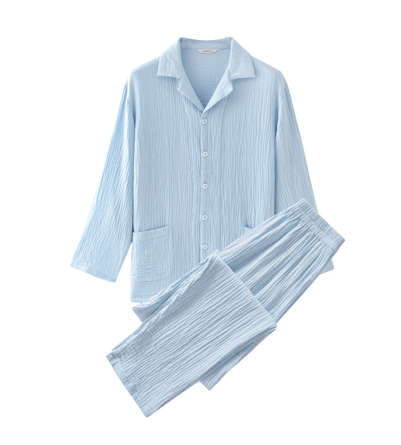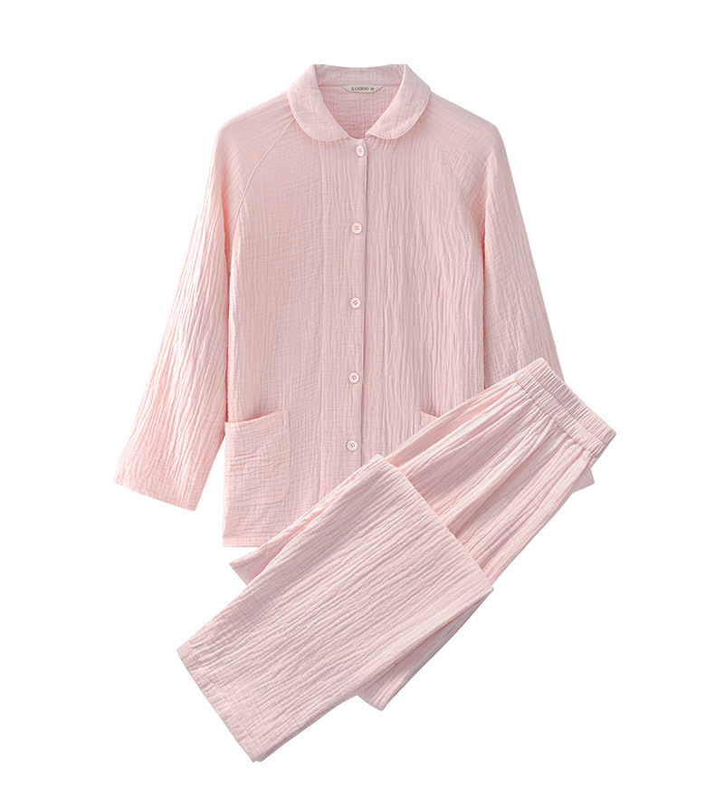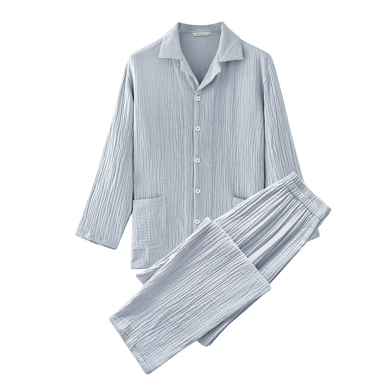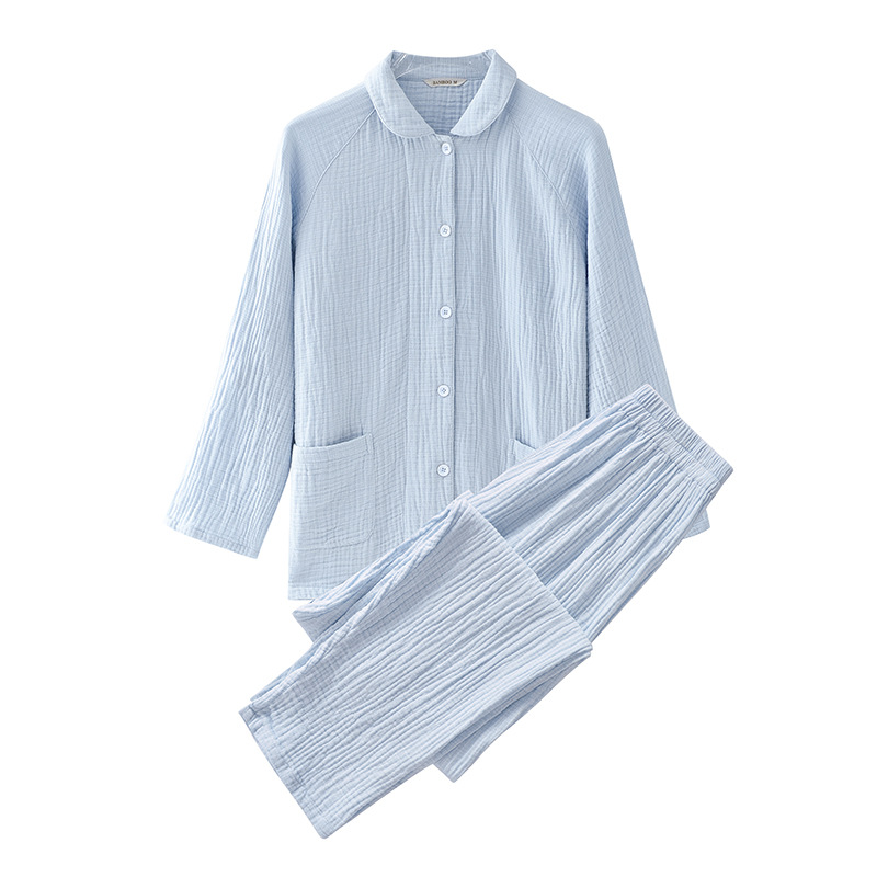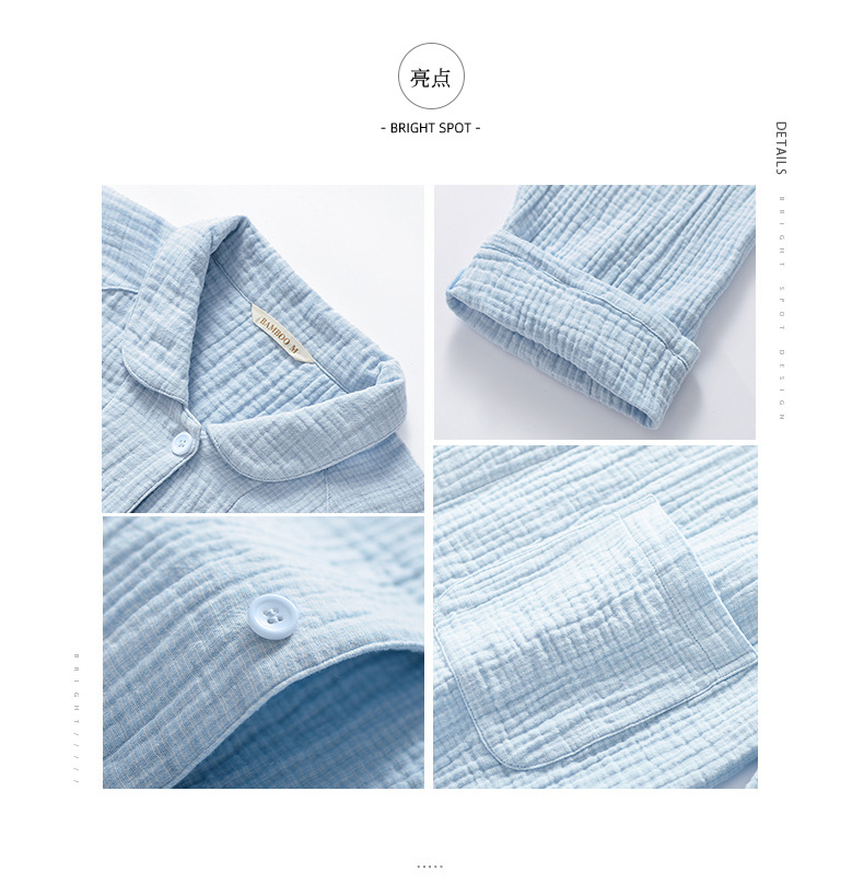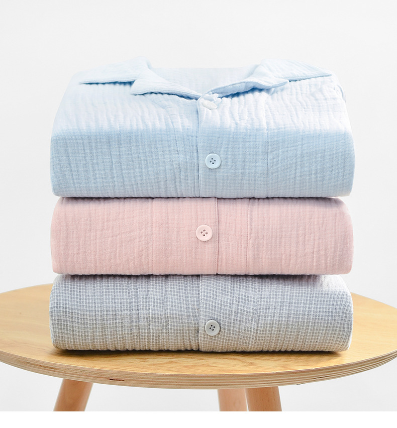 2025 신제품 일본식 잠옷 여성용 긴팔 크레페 3겹 거즈 커플 홈웨어 심플한 땀 흡수 잠옷 세트