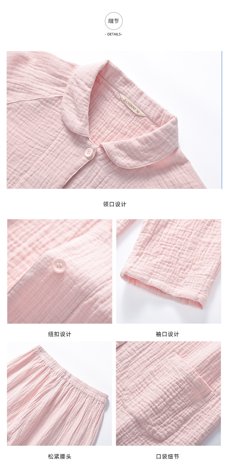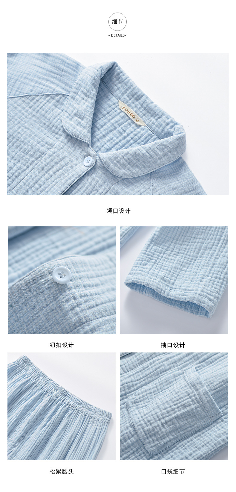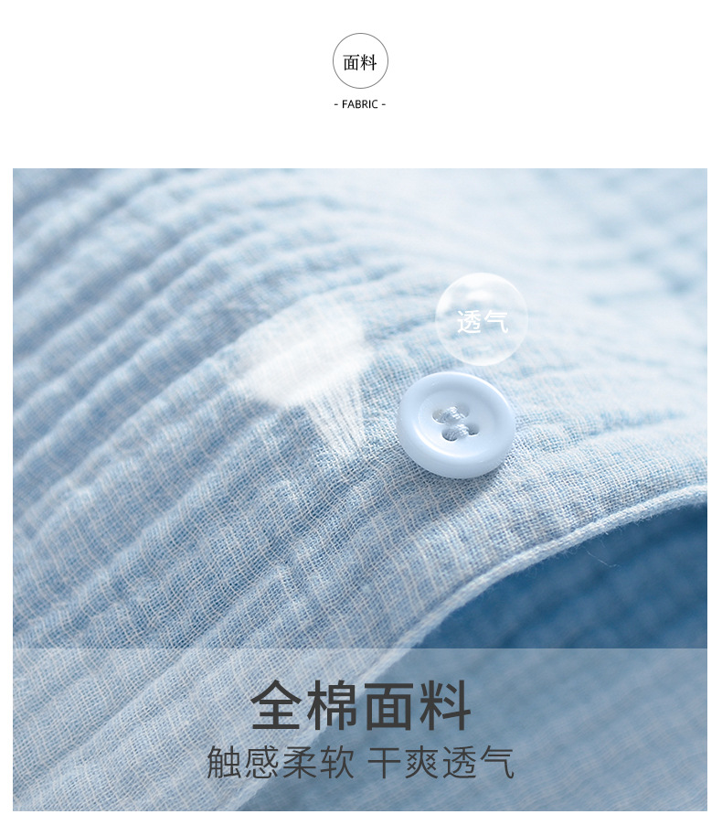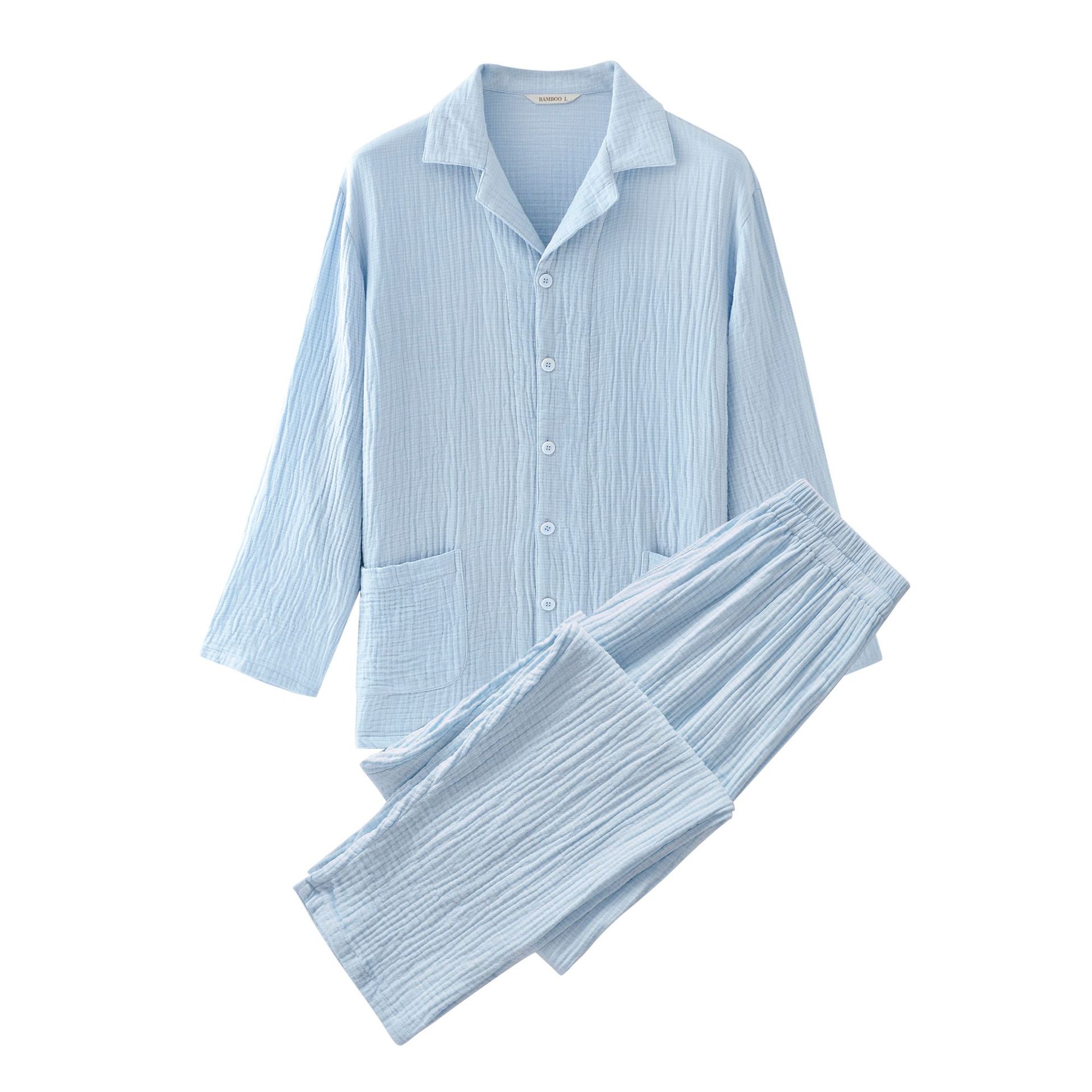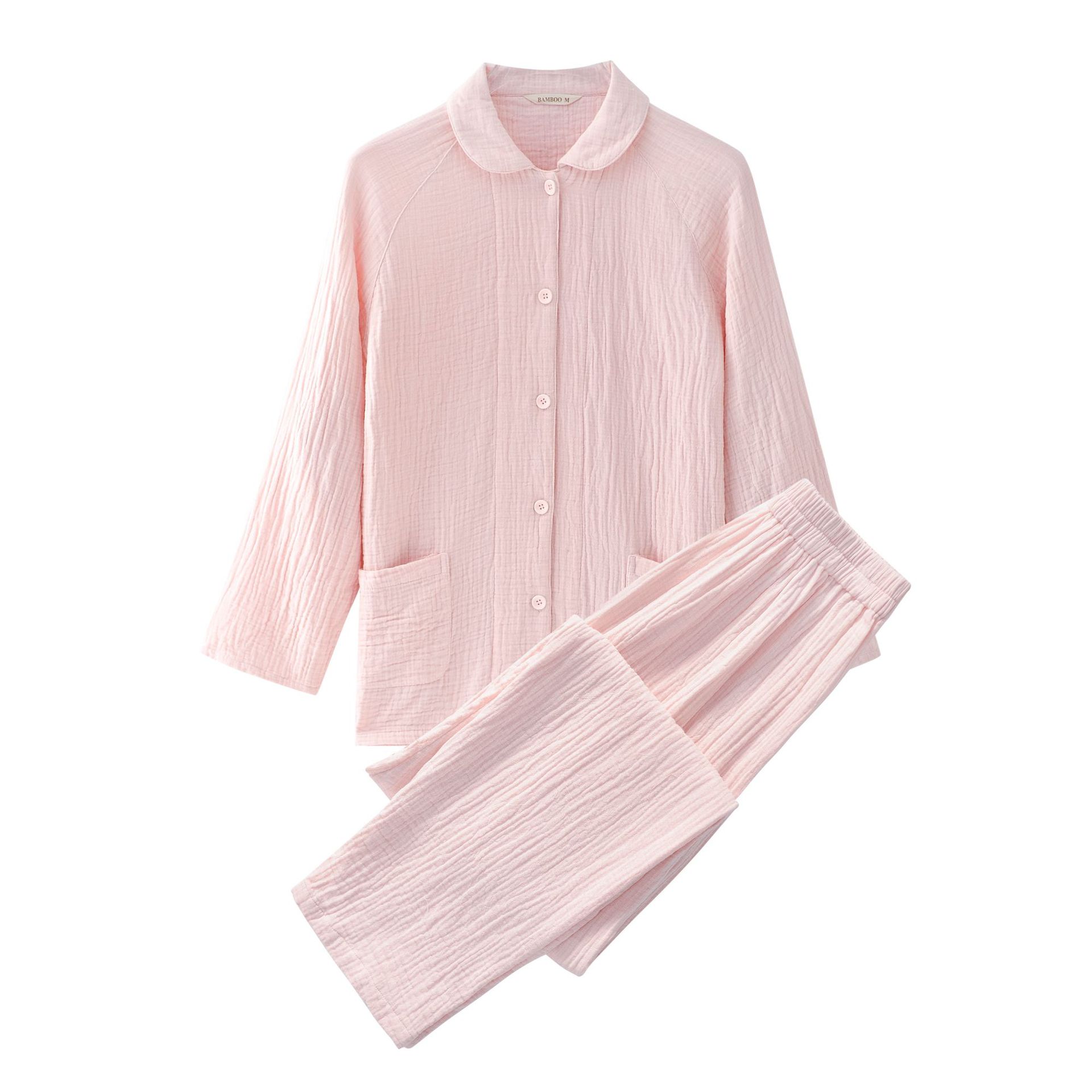 2025 신제품 일본식 잠옷 여성용 긴팔 크레페 3겹 거즈 커플 홈웨어 심플한 땀 흡수 잠옷 세트