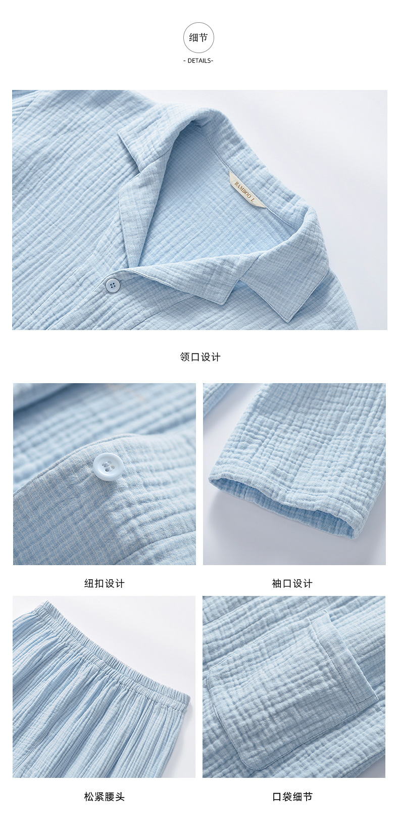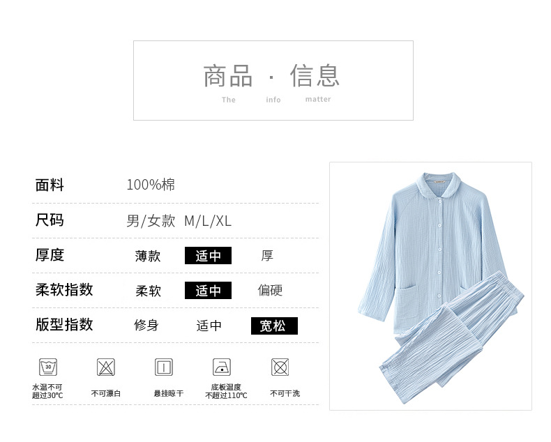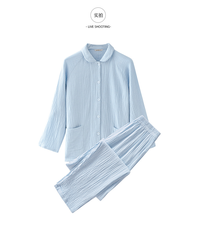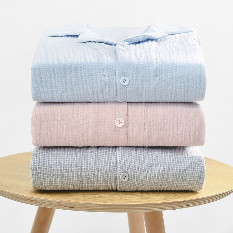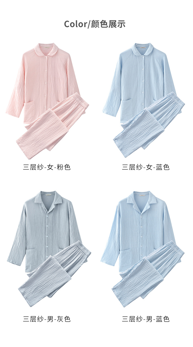 2025 신제품 일본식 잠옷 여성용 긴팔 크레페 3겹 거즈 커플 홈웨어 심플한 땀 흡수 잠옷 세트스토어 가기