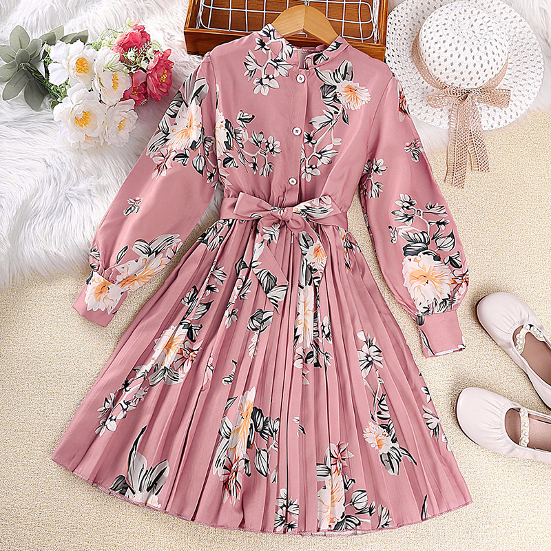 독립 역은 아마존 이베이 아동복 봄 새로운 긴 소매 프린트 주름 공주 치마 소녀 원피스스토어 가기