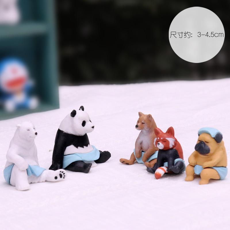 일본 목욕 동물 인형 북극곰 레드 팬더 개 너구리 핸드 케이크 데스크탑 장식품 블라인드 박스 액세서리