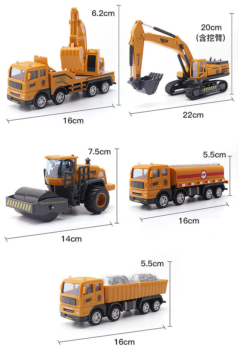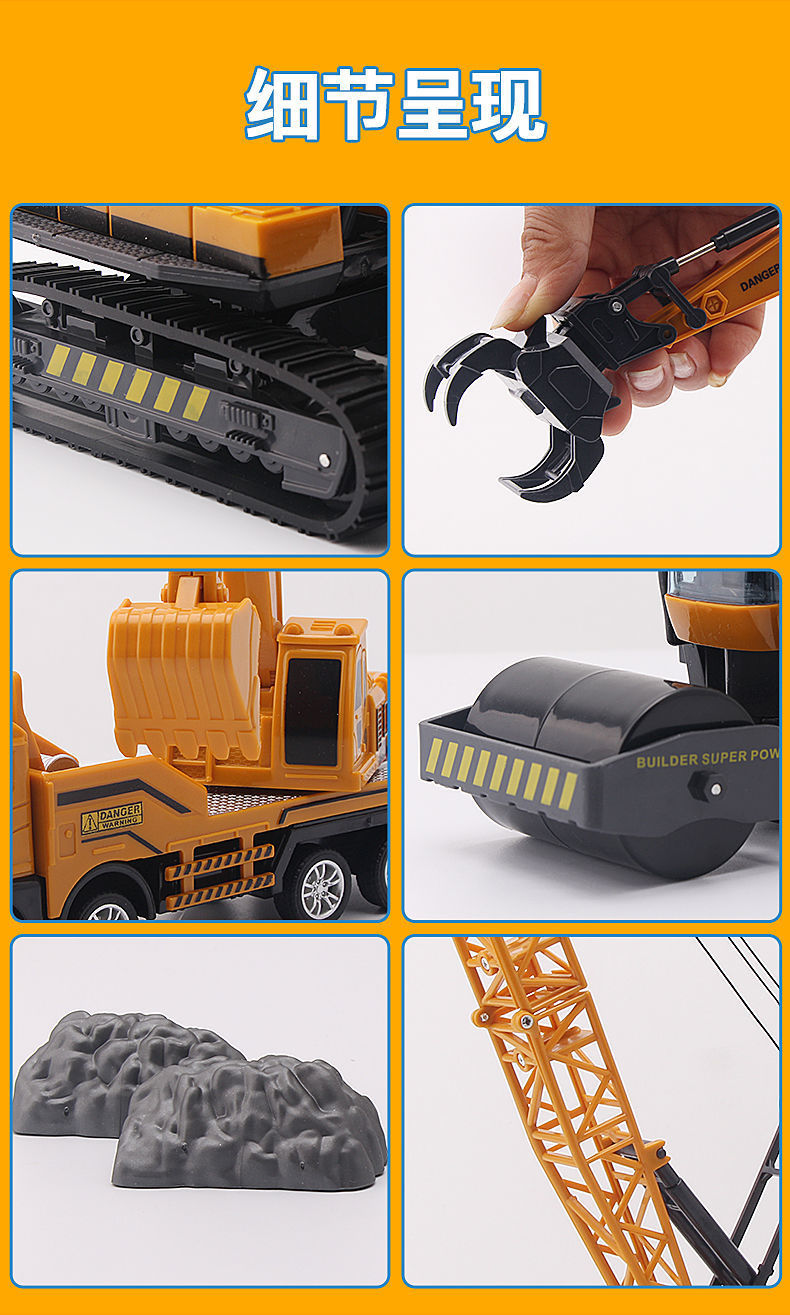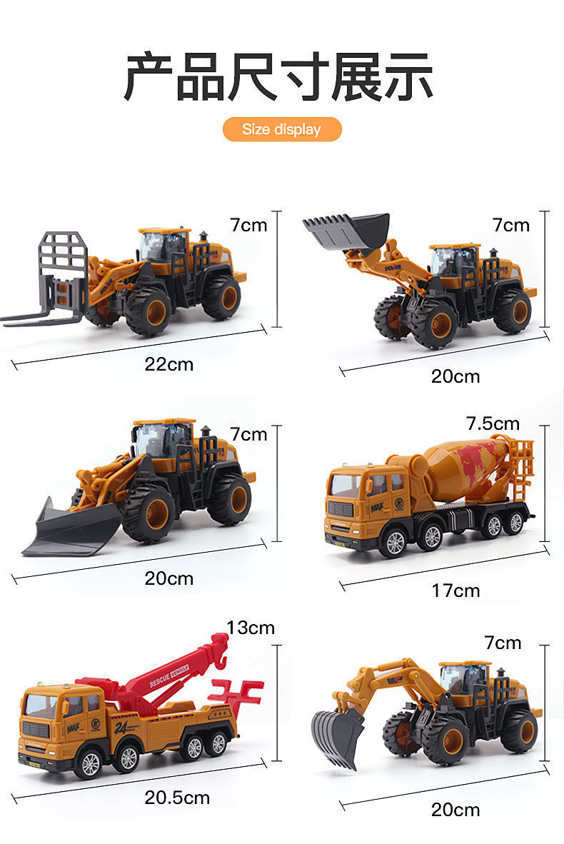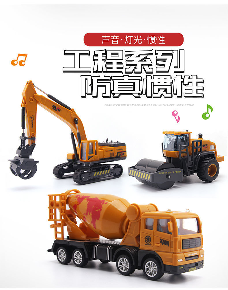 굴삭기 어린이 장난감 자동차 믹서 트럭 굴삭기 엔지니어링 차량 세트 시뮬레이션 지게차 트럭 모델