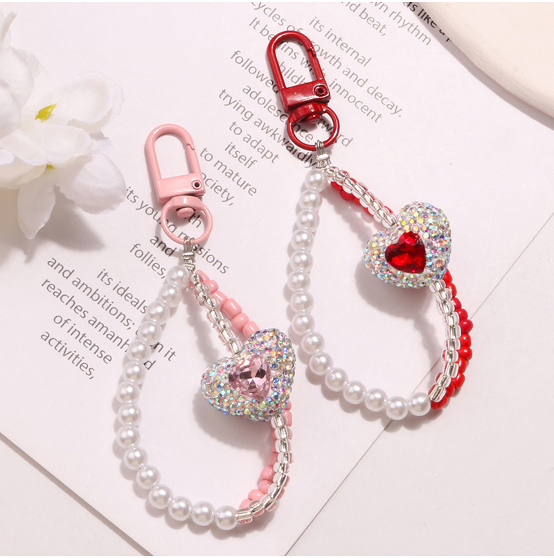 새로운 다이아몬드 사랑 보석 키 체인 펜던트 작은 신선한 단색 라이스 비드 체인 액세서리 이어폰 패키지 장식스토어 가기