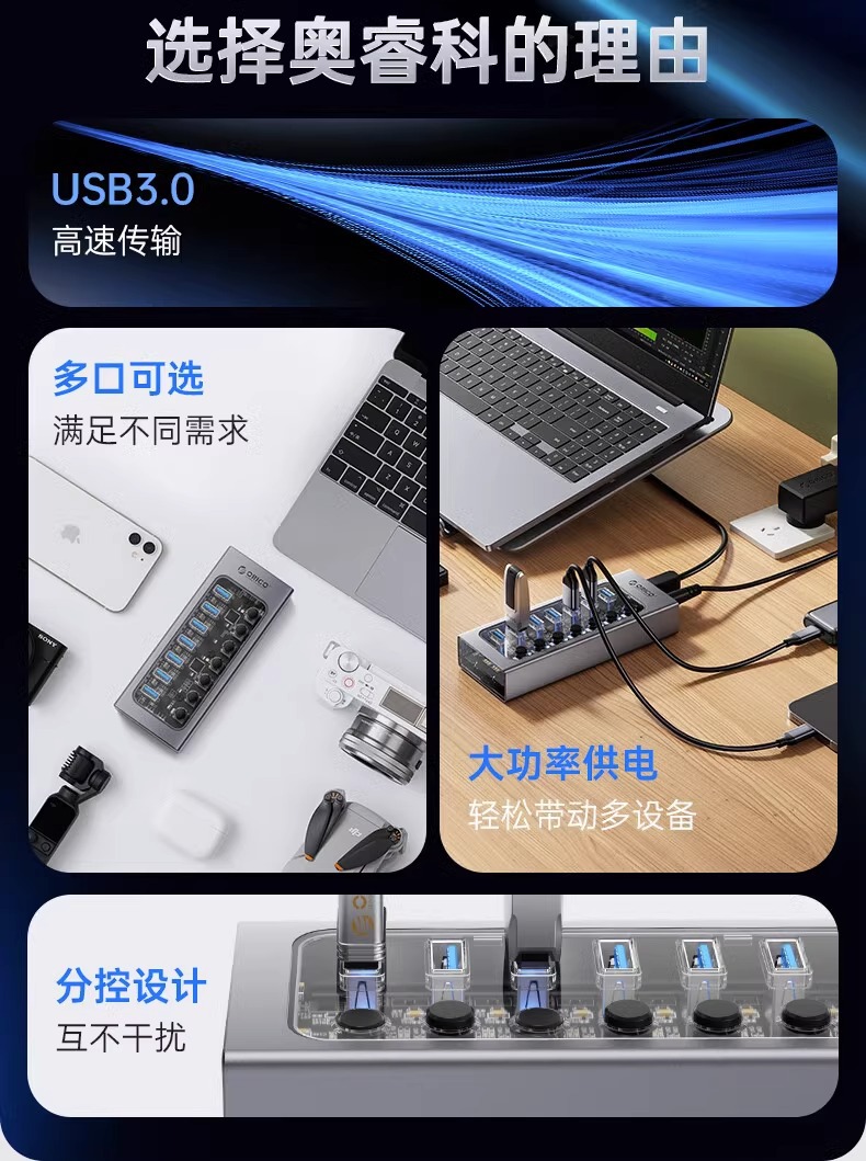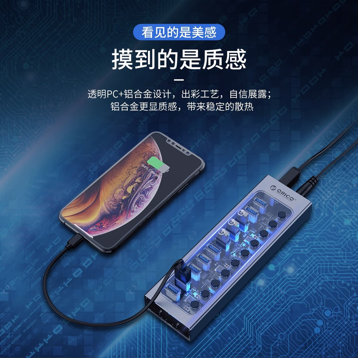 전원 공급 장치 허브 분배기가있는 ORICO/Aurico AT2U3 USB3.0 연장기 1 대 10 산업용 등급스토어 가기