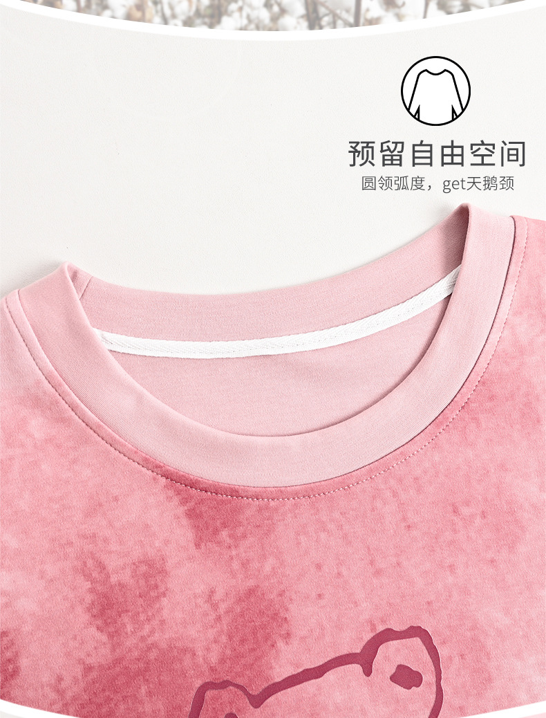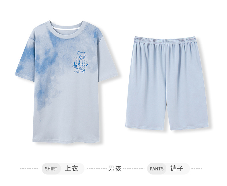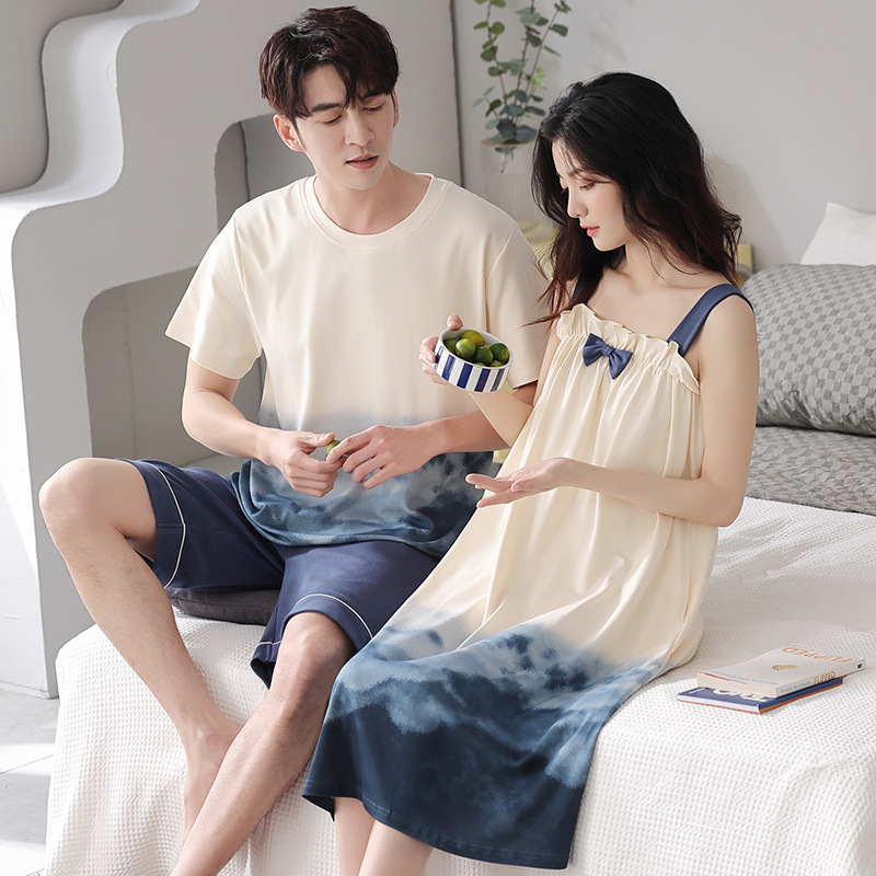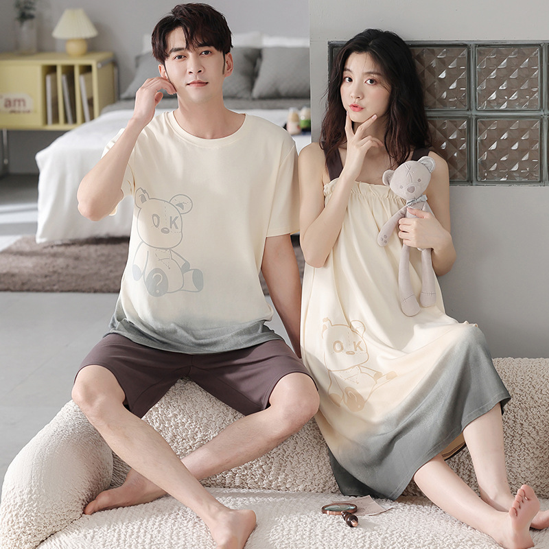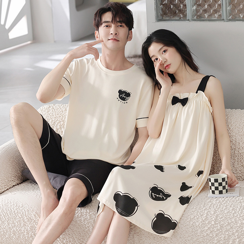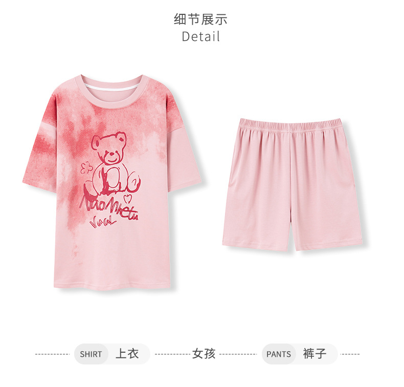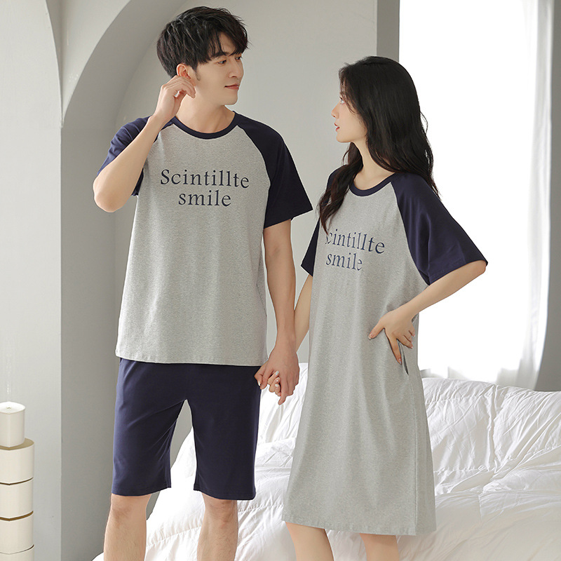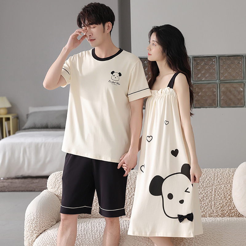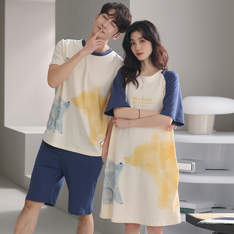 32수 순면 반팔 라운드넥 만화 커플 잠옷, 여름용 남녀 홈웨어, 외출복으로도 착용 가능한 캐주얼 시원한 세트