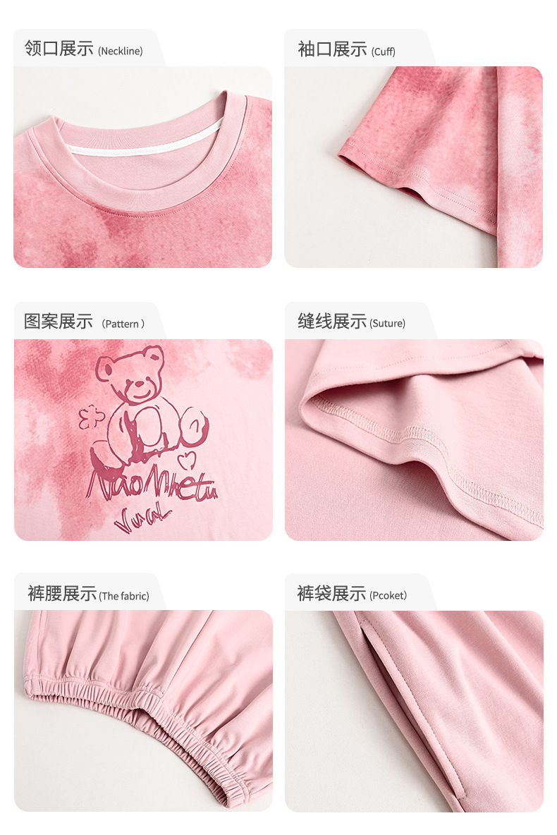 32수 순면 반팔 라운드넥 만화 커플 잠옷, 여름용 남녀 홈웨어, 외출복으로도 착용 가능한 캐주얼 시원한 세트스토어 가기