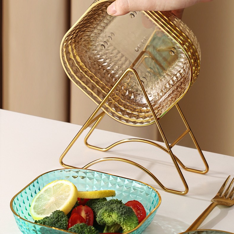 가벼운 고급 과일 접시 침 뼈 접시 가정용 식탁 뼈 접시 스낵 플라스틱 과일 접시 어린이 광장 금테 접시 세트스토어 가기