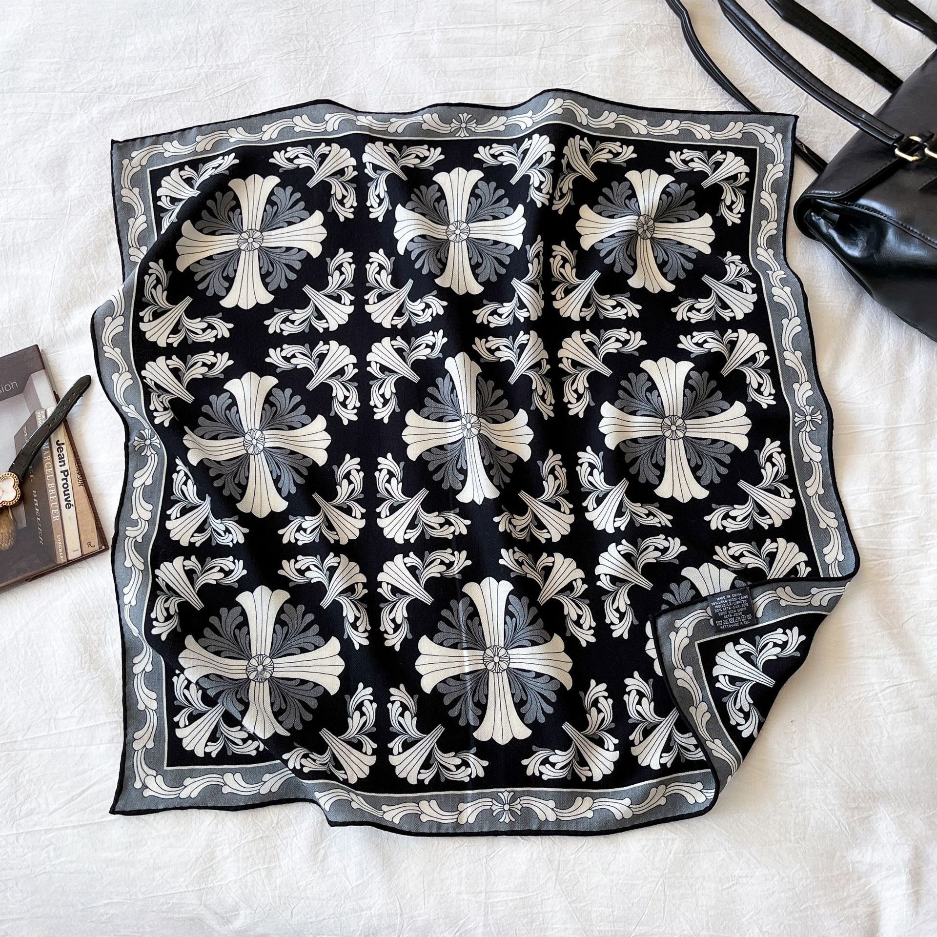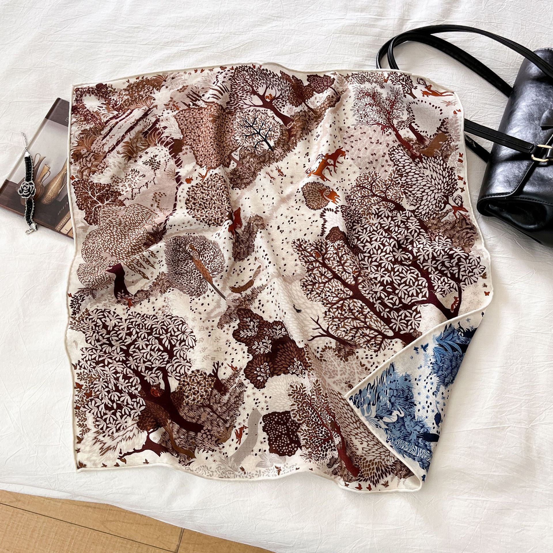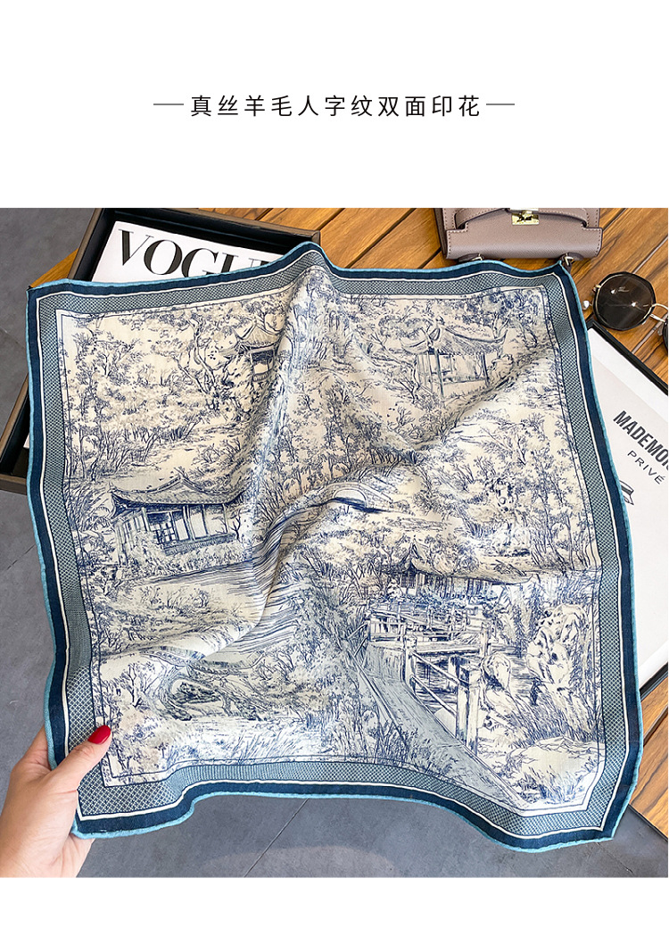 한국의 새로운 스타일 실크 울 스카프 스케치 정원 양면 인쇄 실크 울 스퀘어 스카프 가을과 겨울 패션 숄 실크 스카프