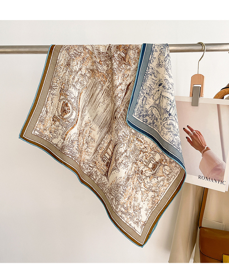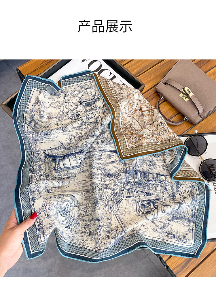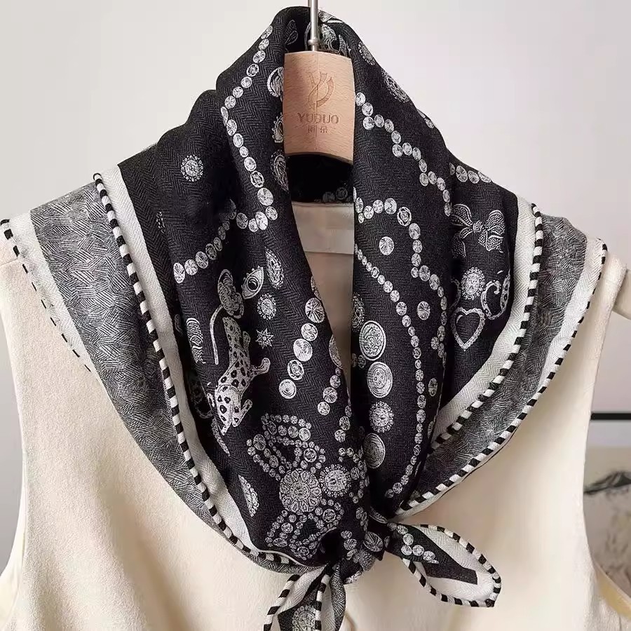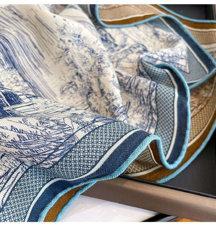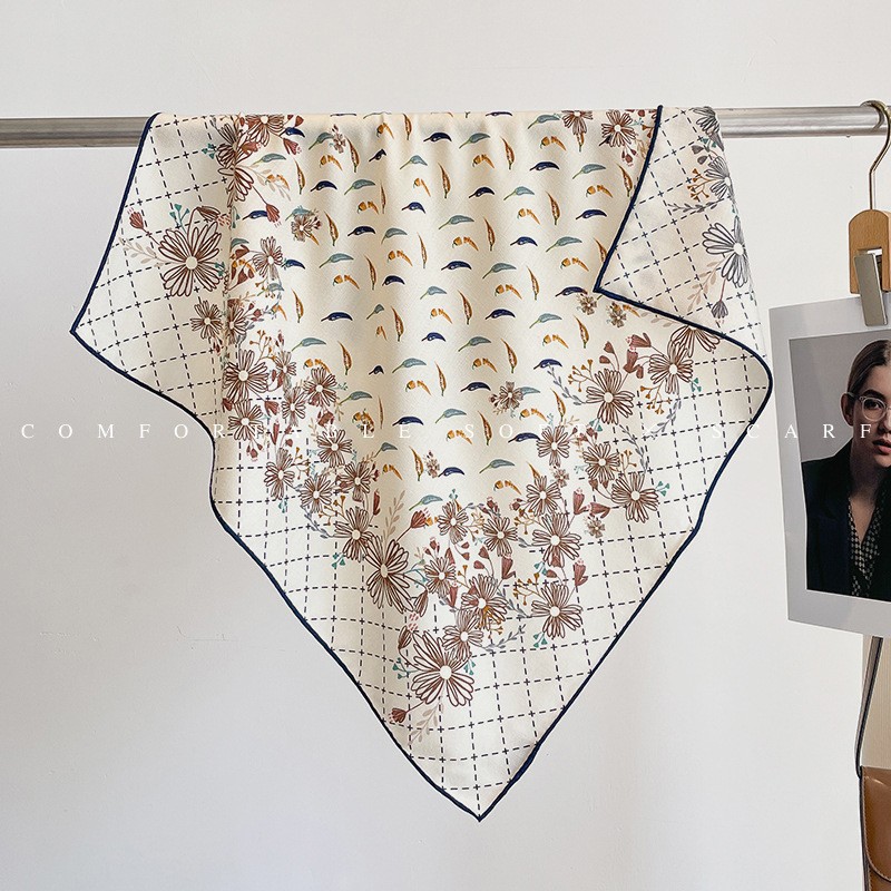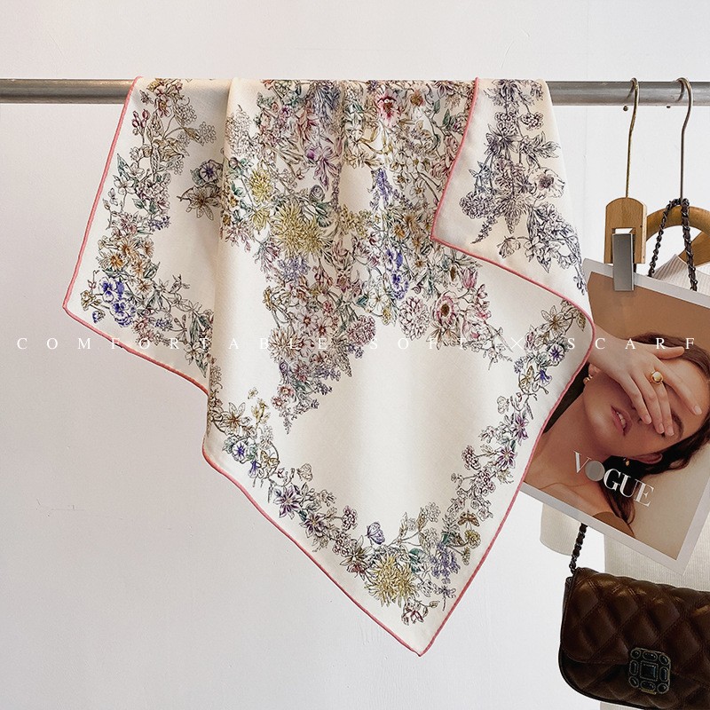 한국의 새로운 스타일 실크 울 스카프 스케치 정원 양면 인쇄 실크 울 스퀘어 스카프 가을과 겨울 패션 숄 실크 스카프스토어 가기