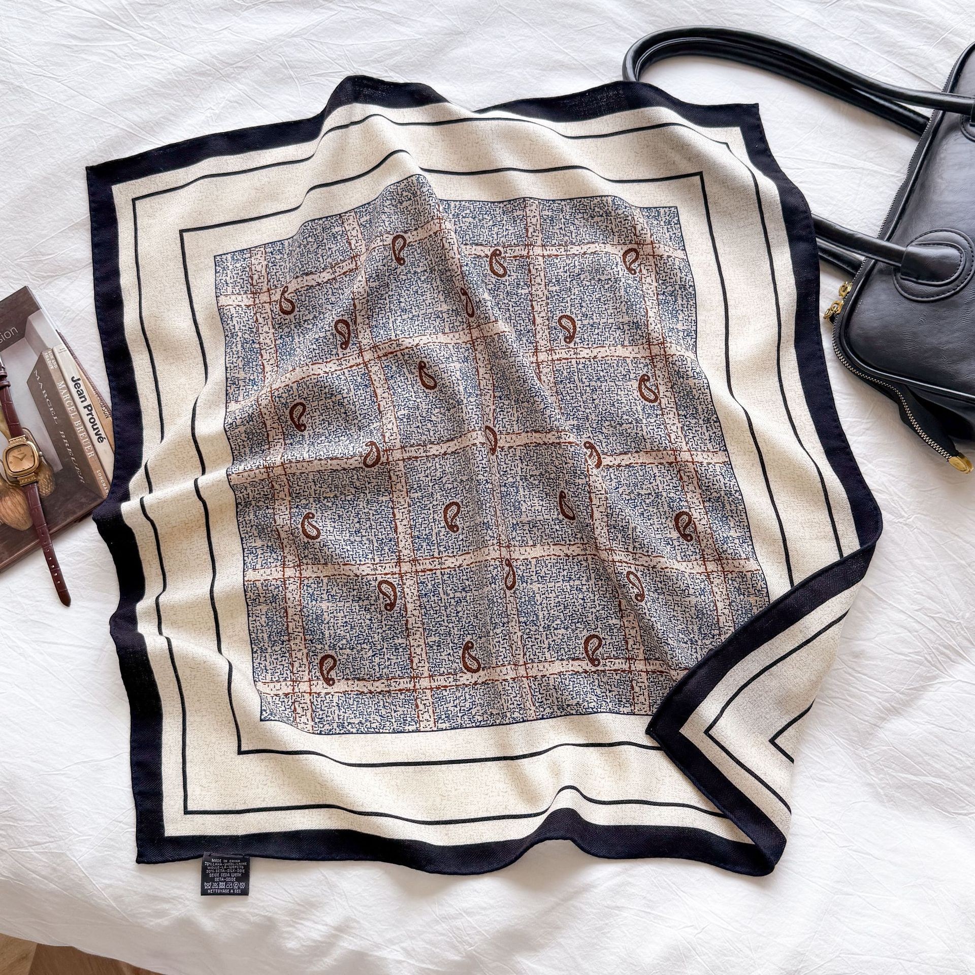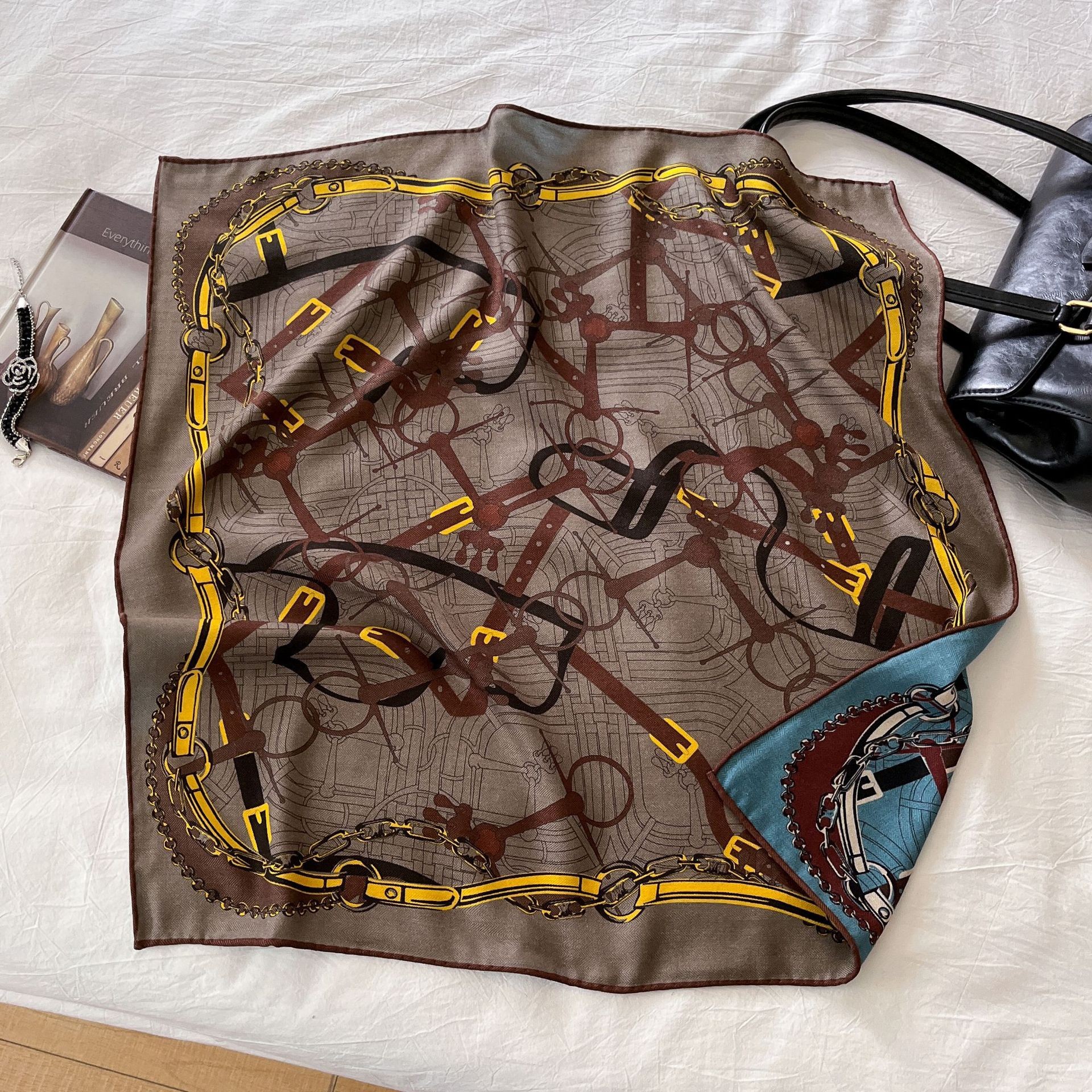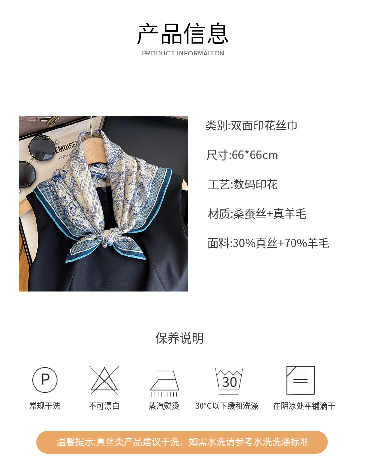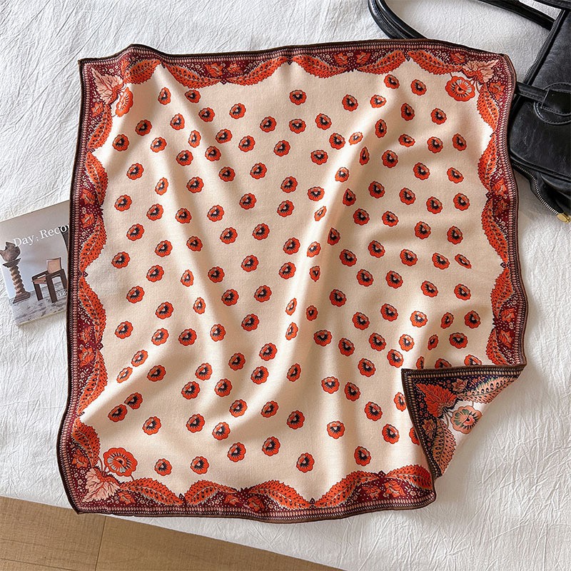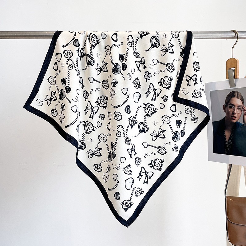 한국의 새로운 스타일 실크 울 스카프 스케치 정원 양면 인쇄 실크 울 스퀘어 스카프 가을과 겨울 패션 숄 실크 스카프스토어 가기