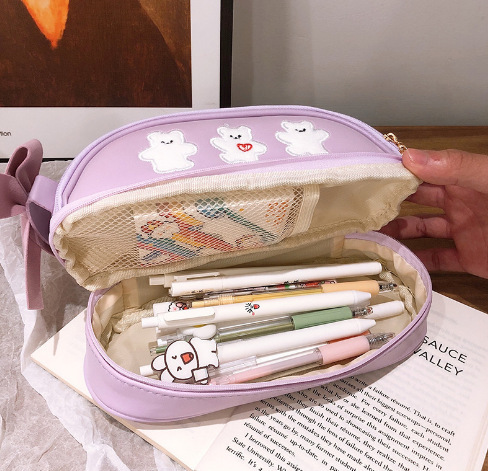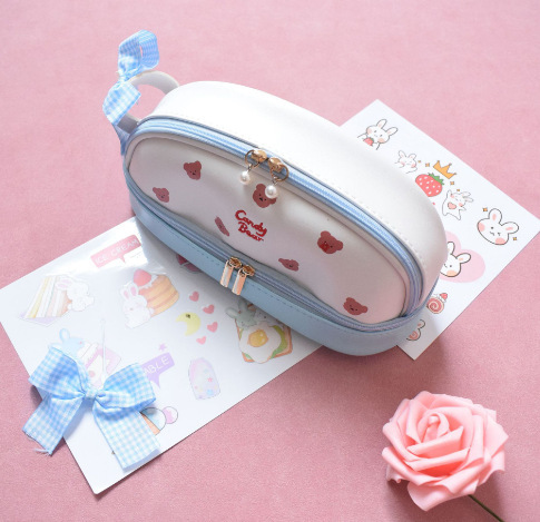 공장 소녀 하트 더블 레이어 필통 스타일 간단한 문구 상자 중학교 및 초등학생을위한 대용량 문구 보관 가방스토어 가기