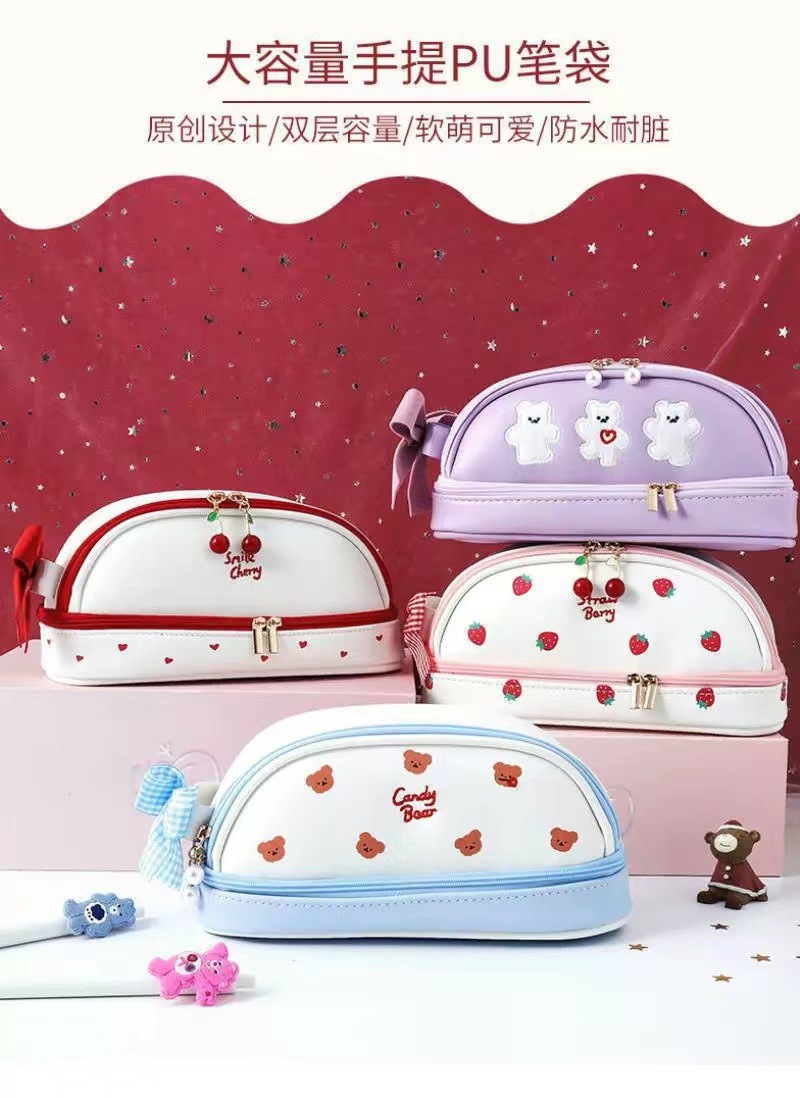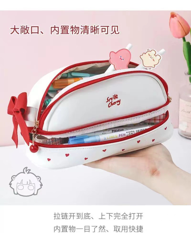 공장 소녀 하트 더블 레이어 필통 스타일 간단한 문구 상자 중학교 및 초등학생을위한 대용량 문구 보관 가방