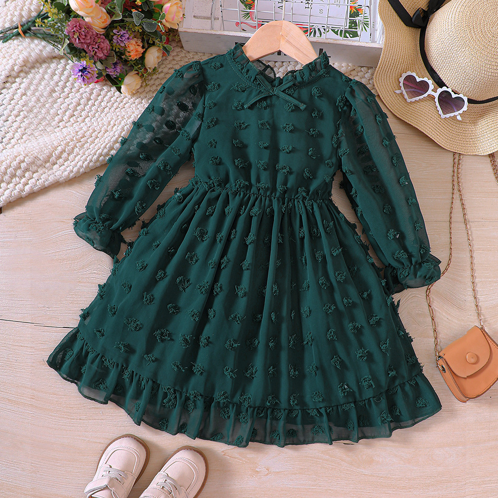 EW外贸童装 中小童新品女童秋款提花圆点花边蝴蝶结连衣裙Q1457-D