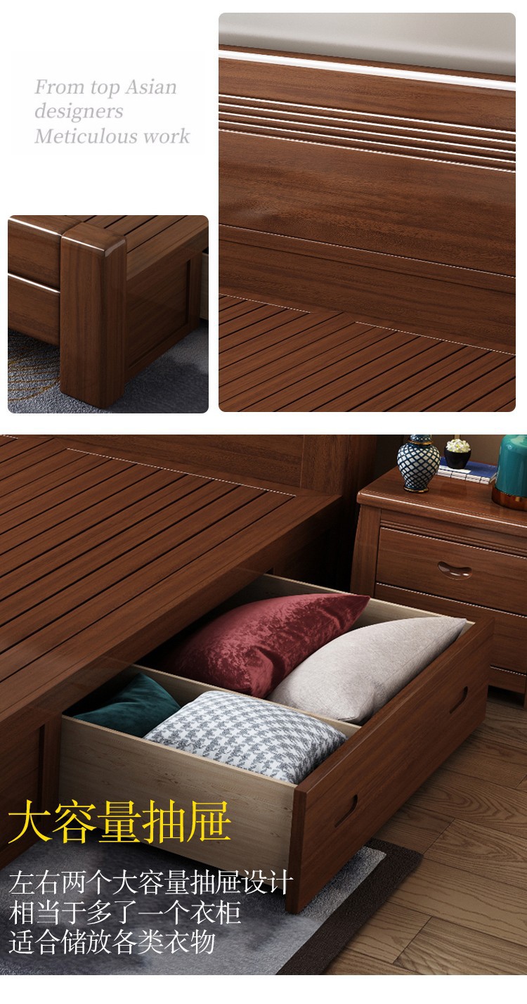 단단한 나무 침대 현대 간단한 호두 침실 1.5 m 더블 침대 1.8 m 마스터 침실 전체 단단한 나무 웨딩 룸 보관 침대