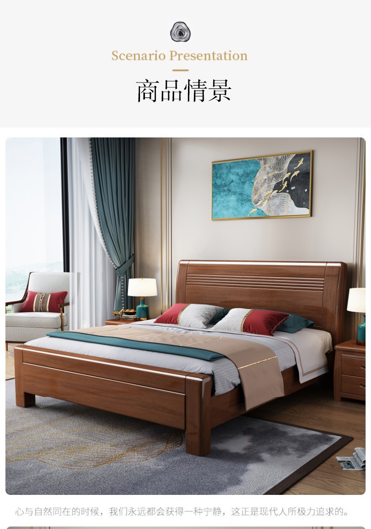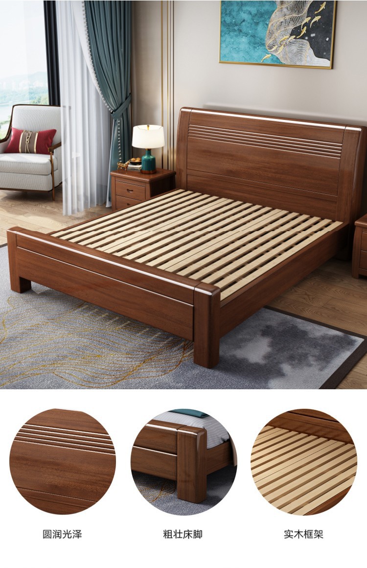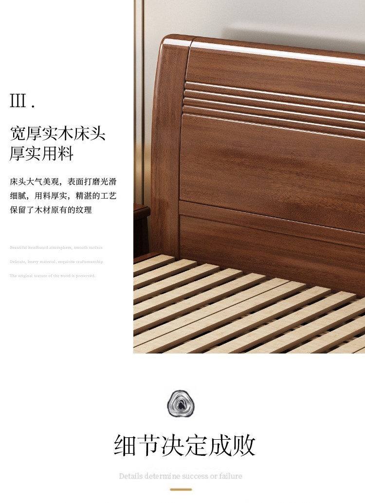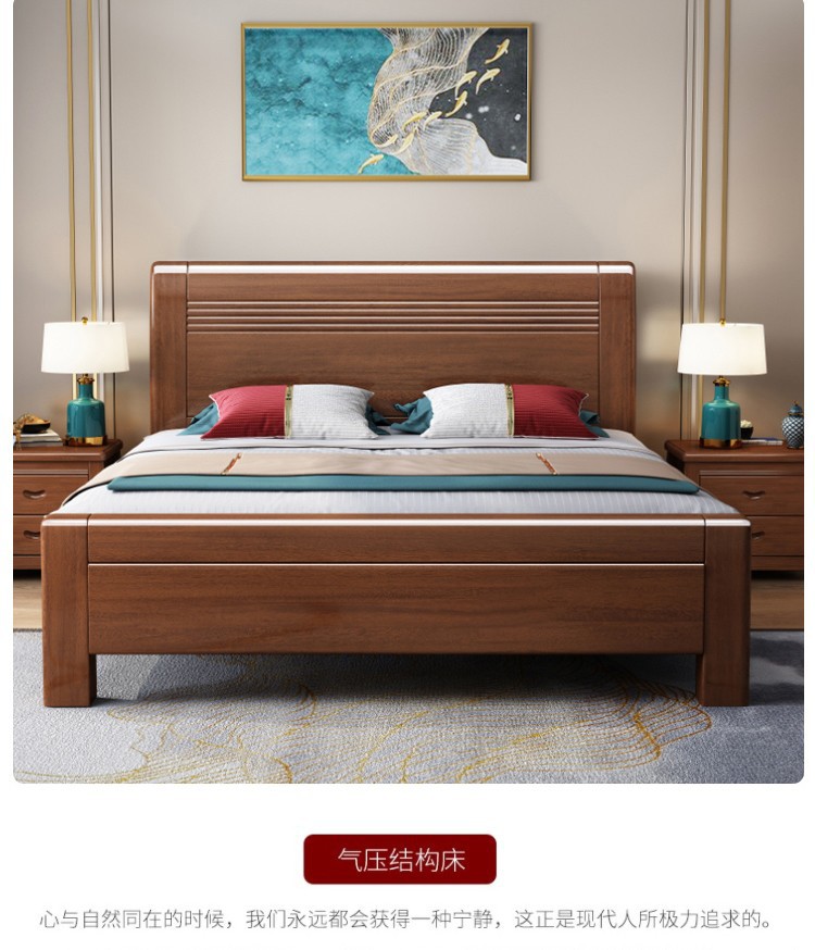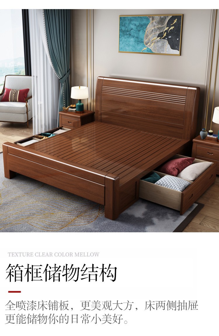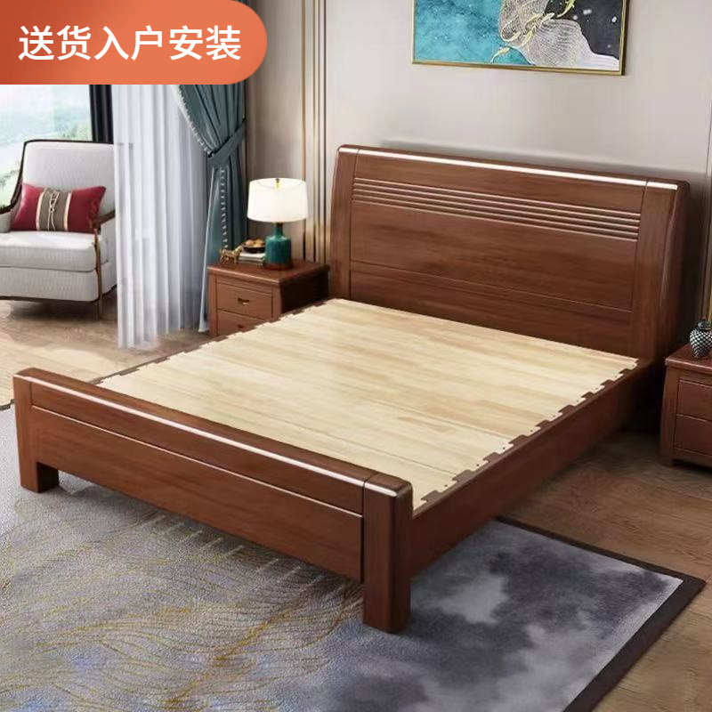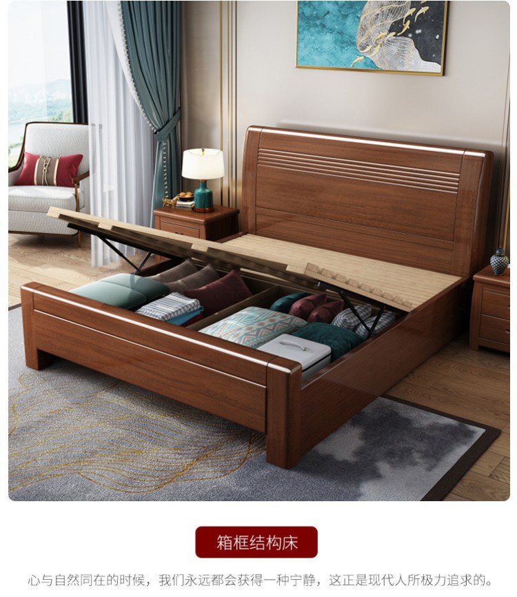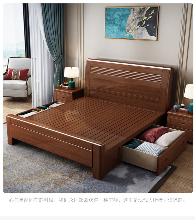 단단한 나무 침대 현대 간단한 호두 침실 1.5 m 더블 침대 1.8 m 마스터 침실 전체 단단한 나무 웨딩 룸 보관 침대스토어 가기