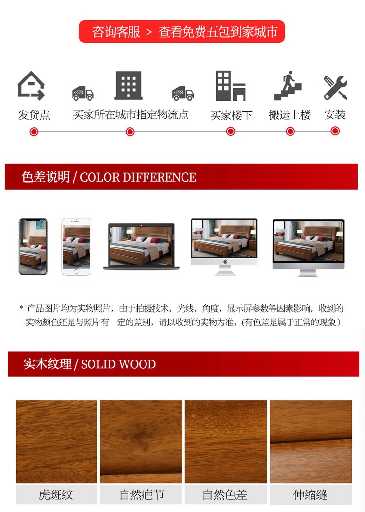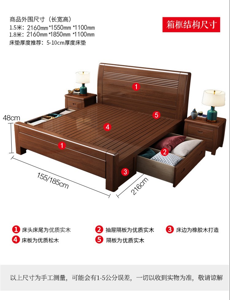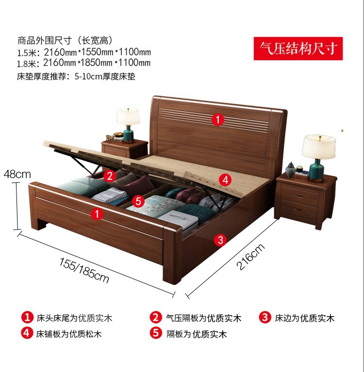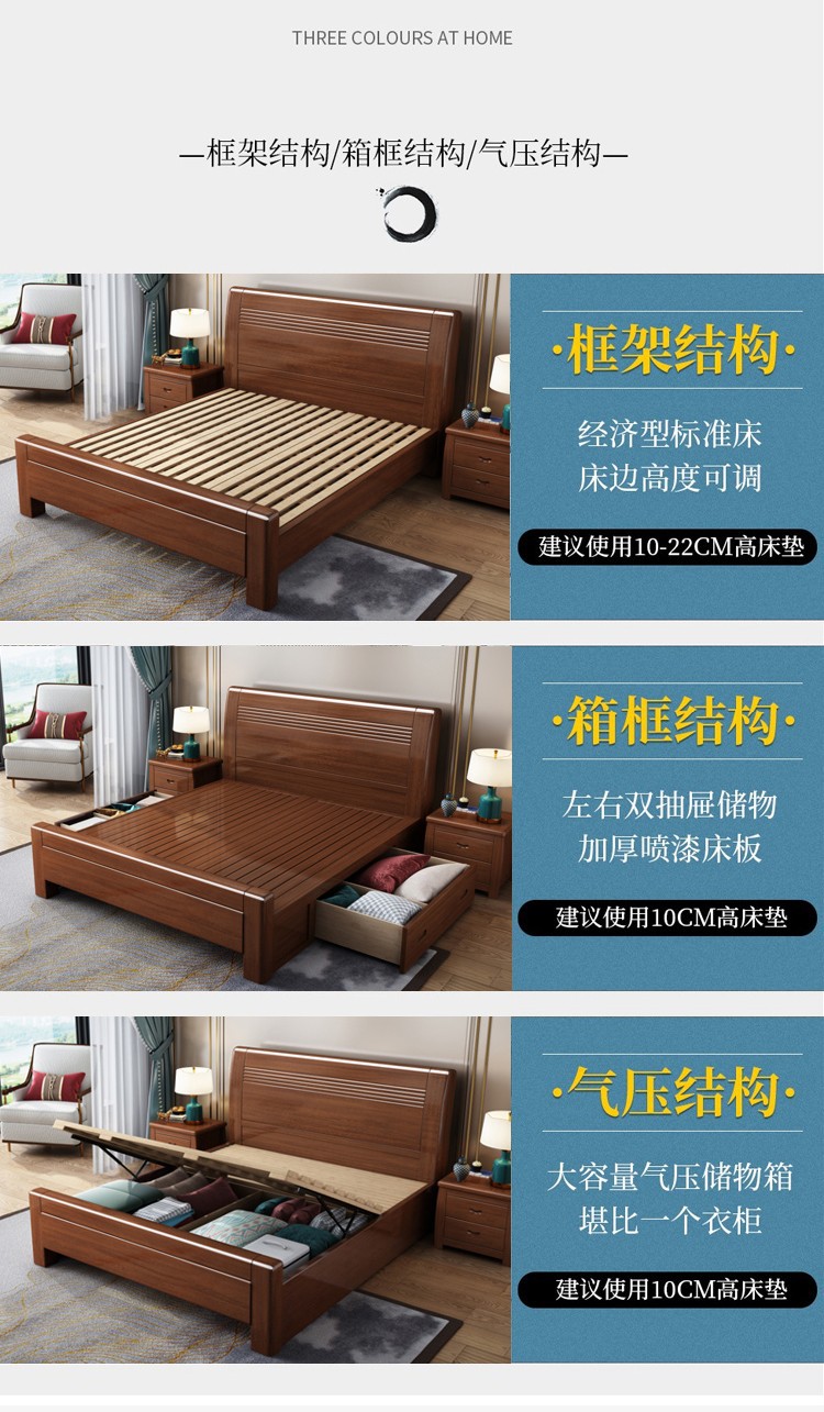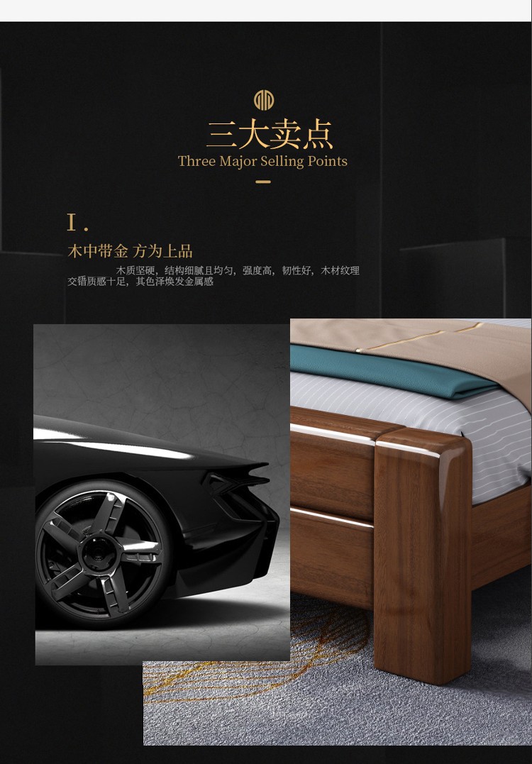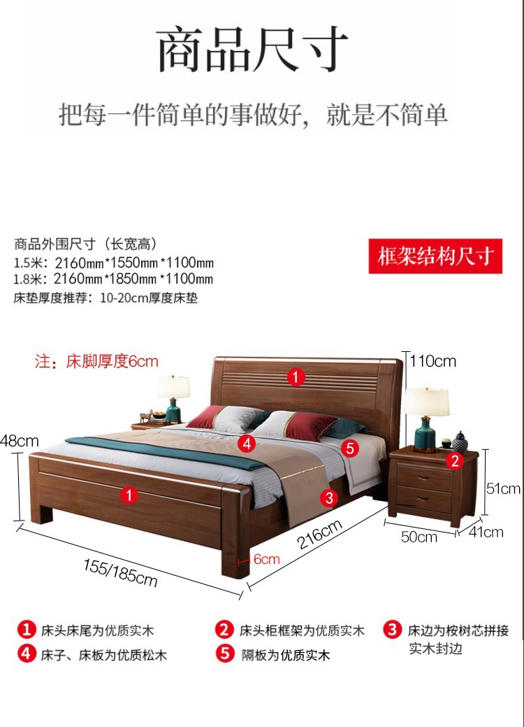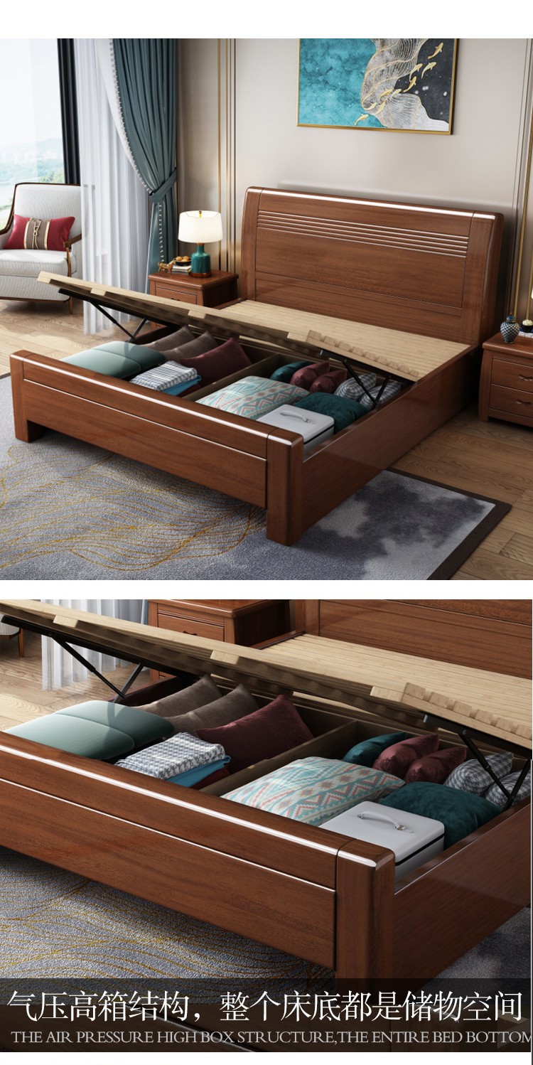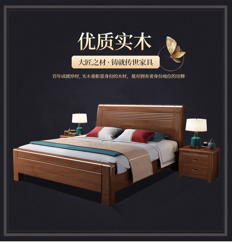 단단한 나무 침대 현대 간단한 호두 침실 1.5 m 더블 침대 1.8 m 마스터 침실 전체 단단한 나무 웨딩 룸 보관 침대스토어 가기