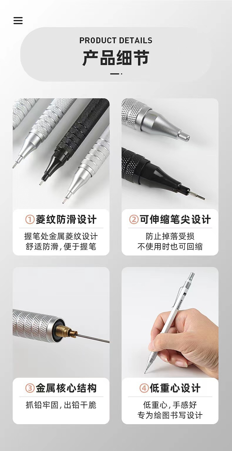 낮은 무게 중심 활성 연필 금속 샤프 펜슬 0.3/0.5/0.7/0.9/2.0mm 스케치 페인팅 펜슬스토어 가기
