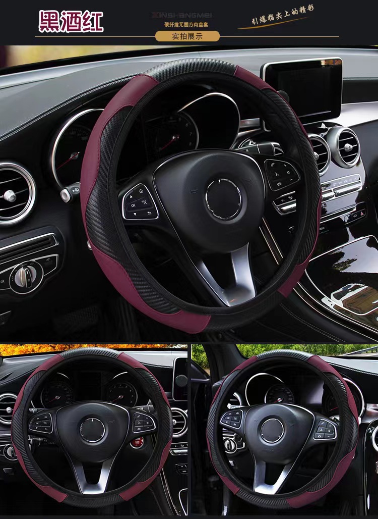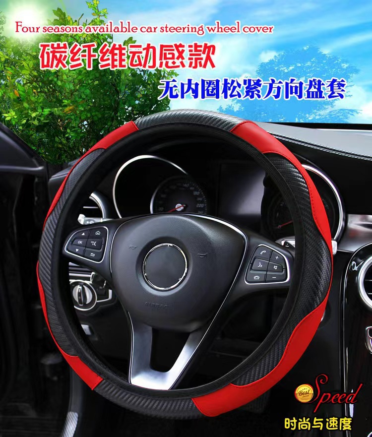 아마존 폭발 자동차 핸들 커버 없음 내부 링 미끄럼 방지 탄소 섬유 가죽 핸들 커버 크로스 보더 사계절 범용 폭탄스토어 가기