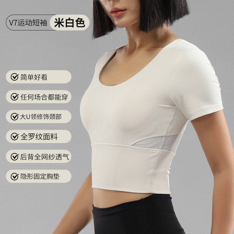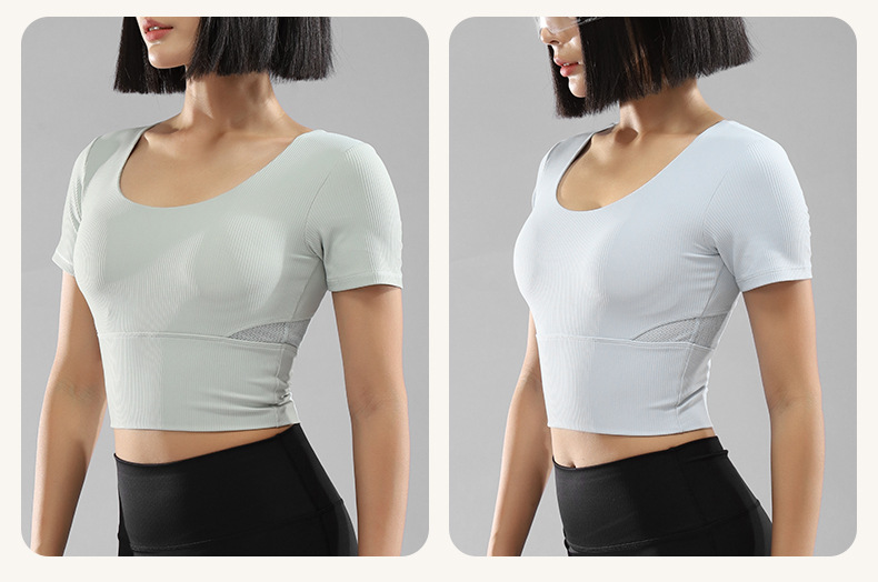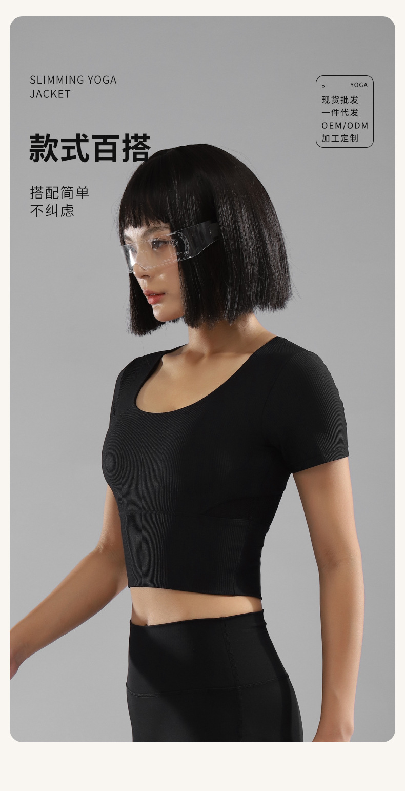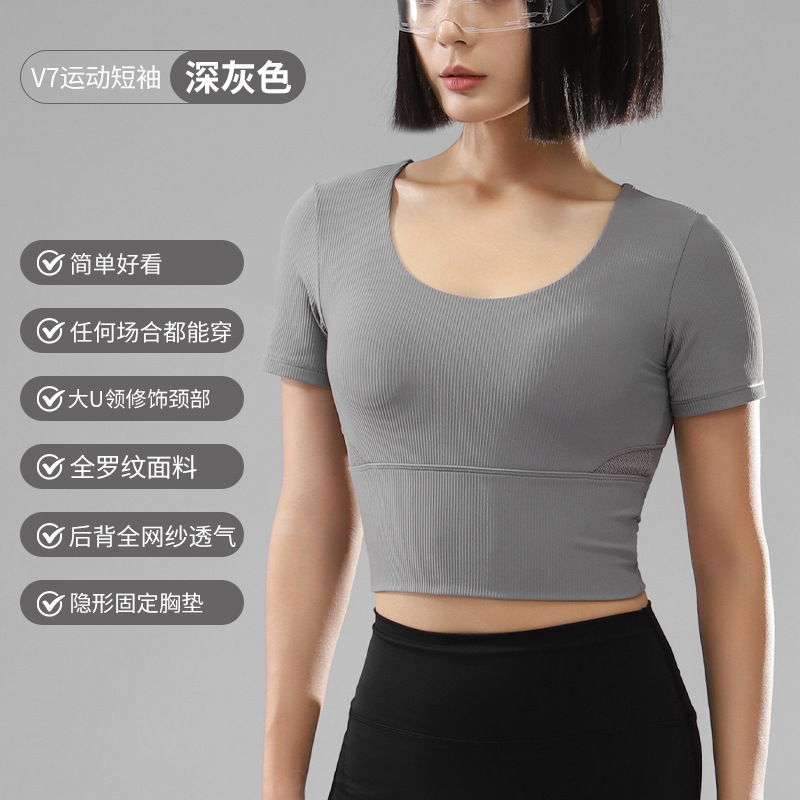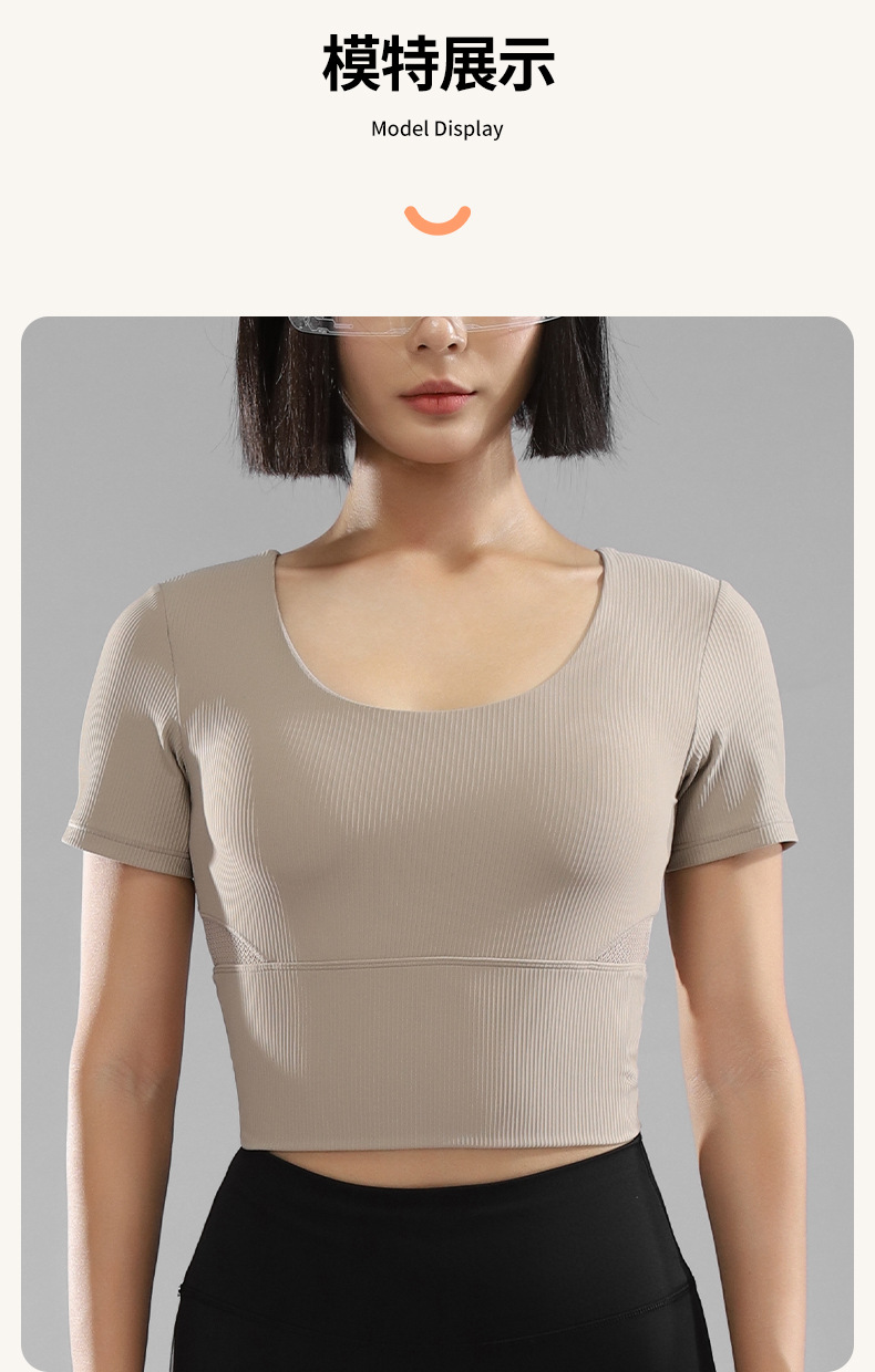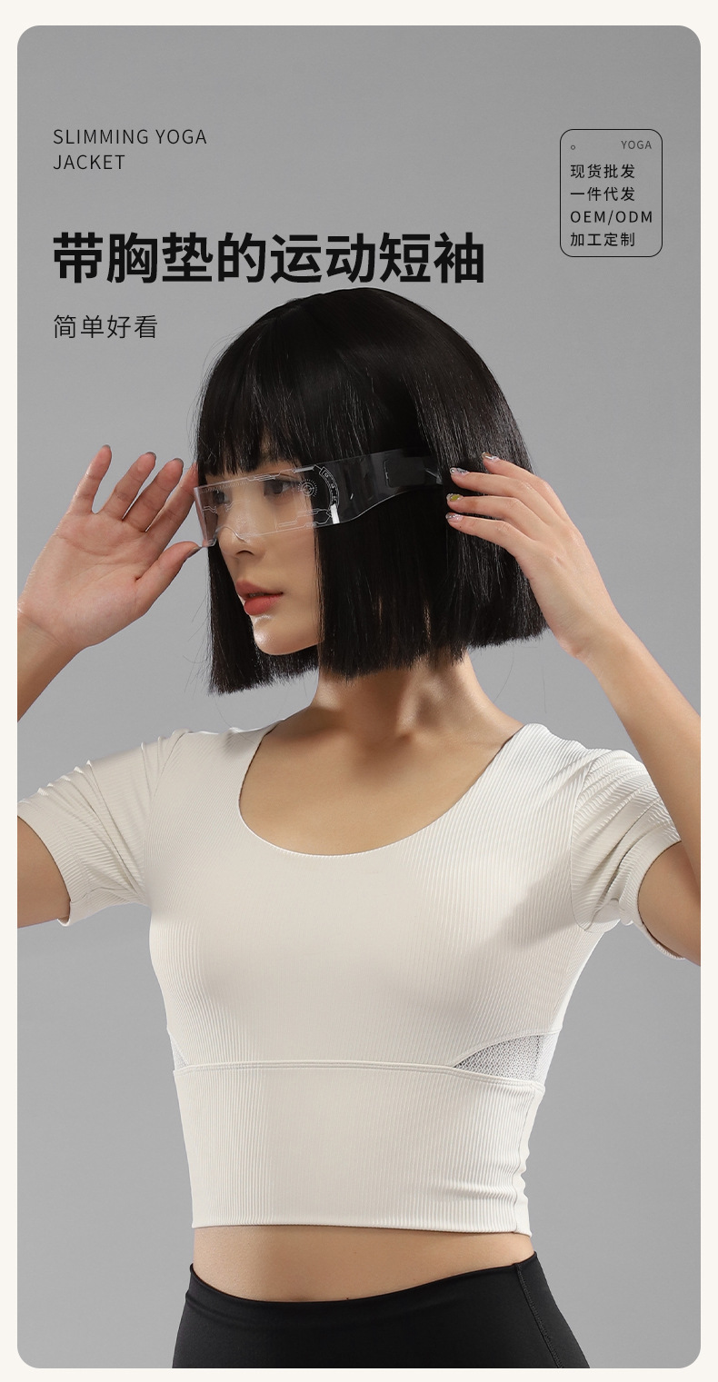 가슴 패드가 있는 요가복 제조업체, 여성용 타이트핏 스포츠 반팔 런닝, 아침 런닝, 필라테스, 피트니스 티셔츠스토어 가기