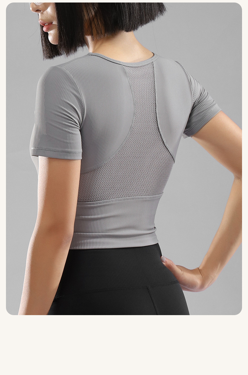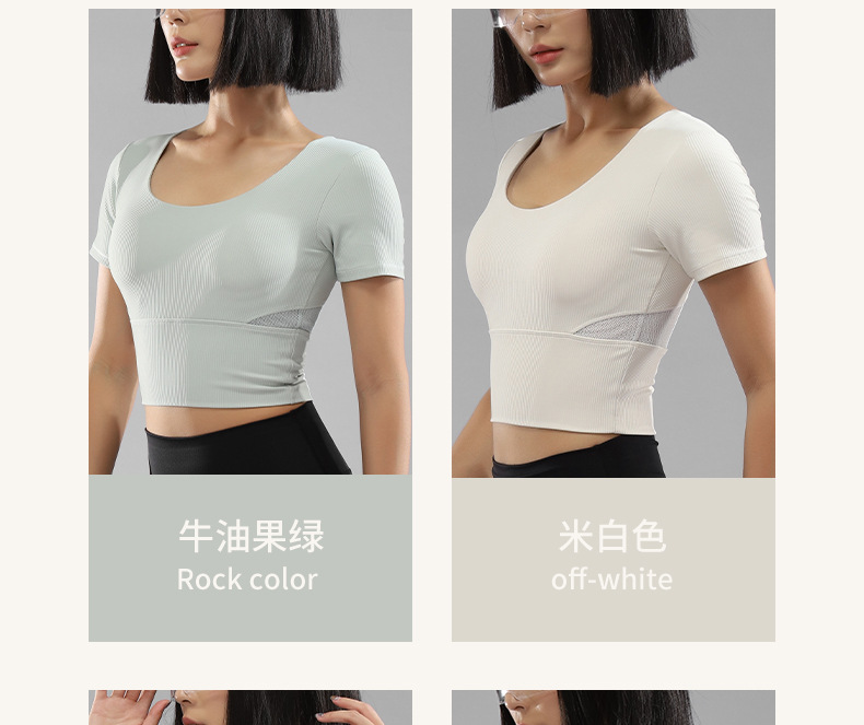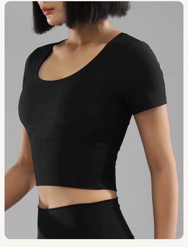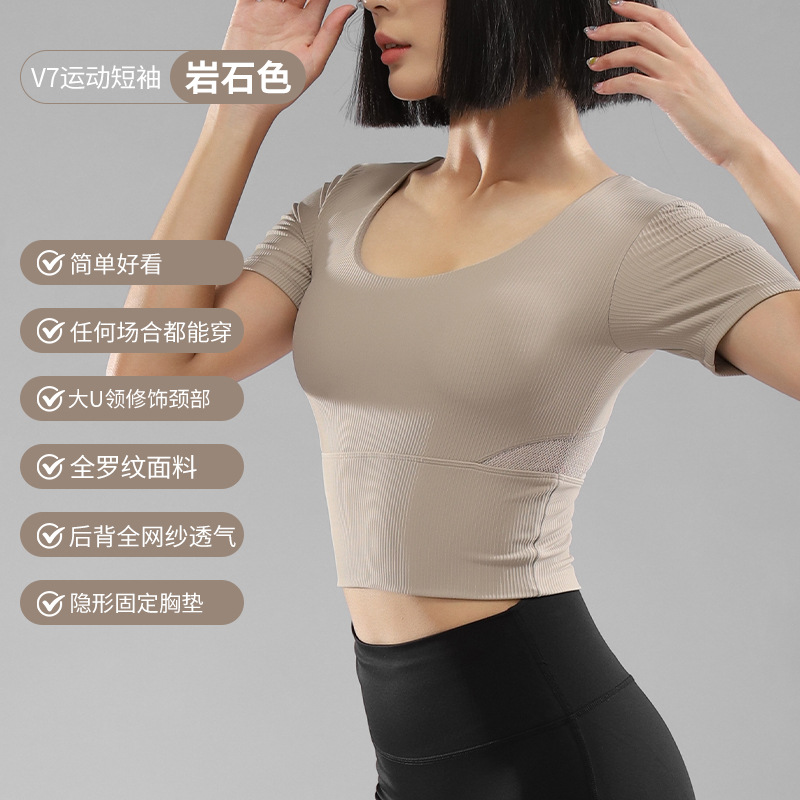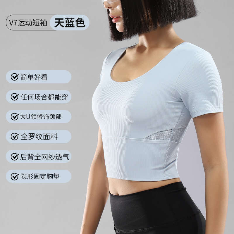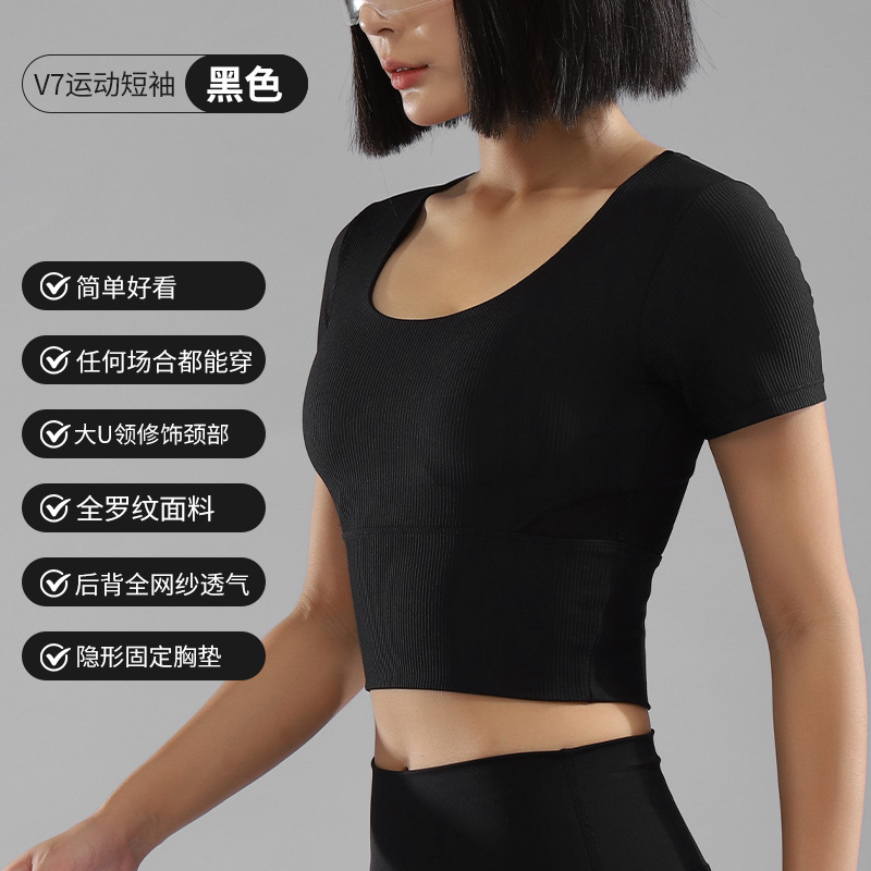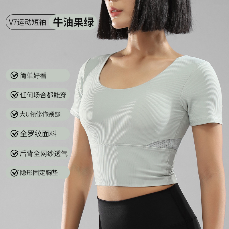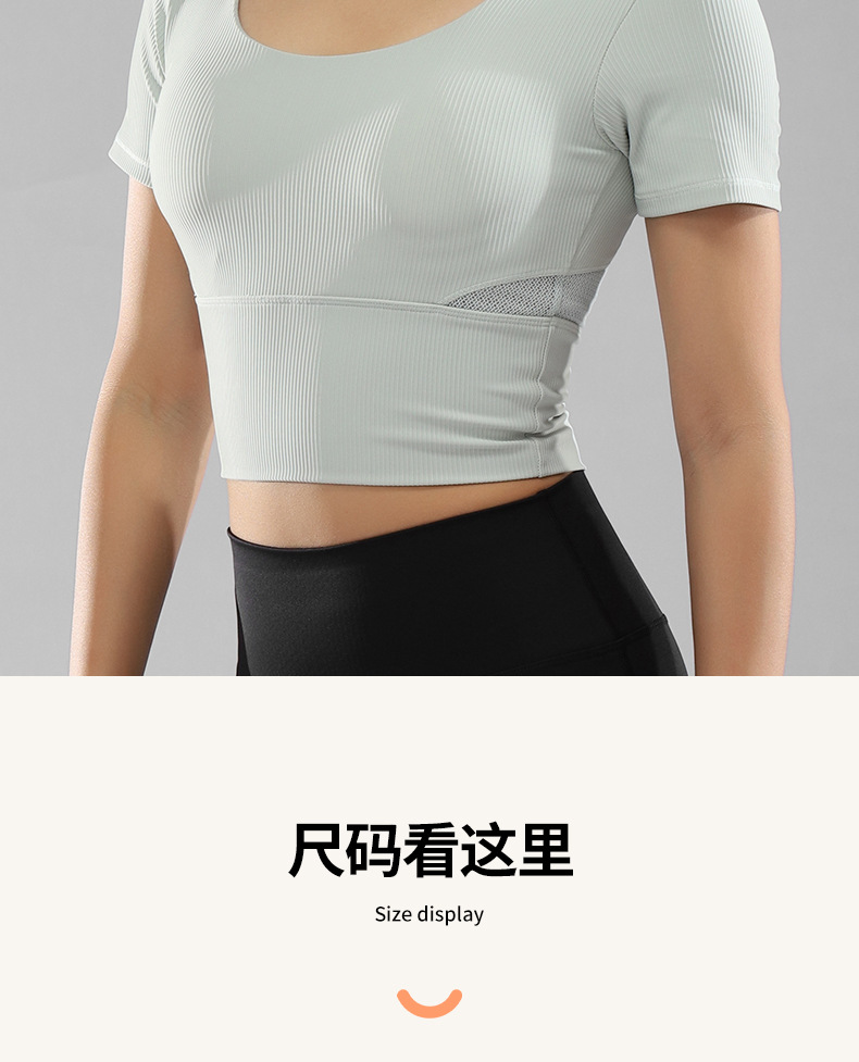 가슴 패드가 있는 요가복 제조업체, 여성용 타이트핏 스포츠 반팔 런닝, 아침 런닝, 필라테스, 피트니스 티셔츠스토어 가기