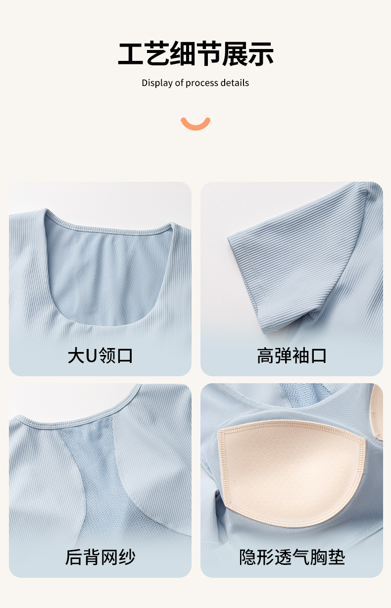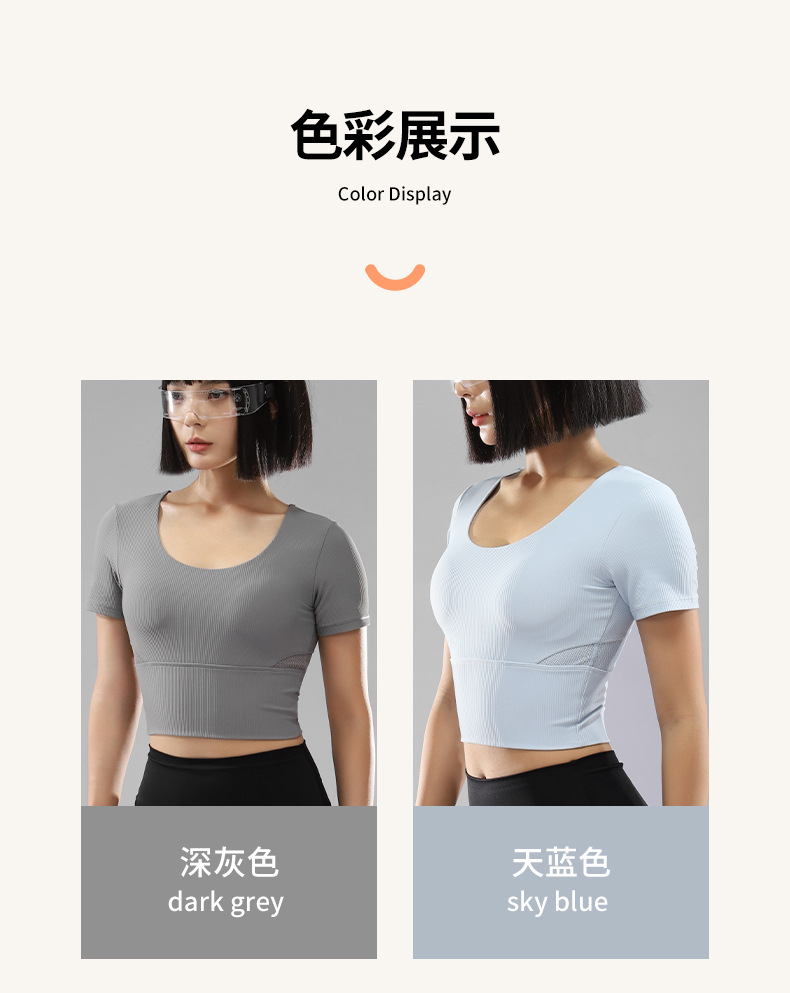 가슴 패드가 있는 요가복 제조업체, 여성용 타이트핏 스포츠 반팔 런닝, 아침 런닝, 필라테스, 피트니스 티셔츠