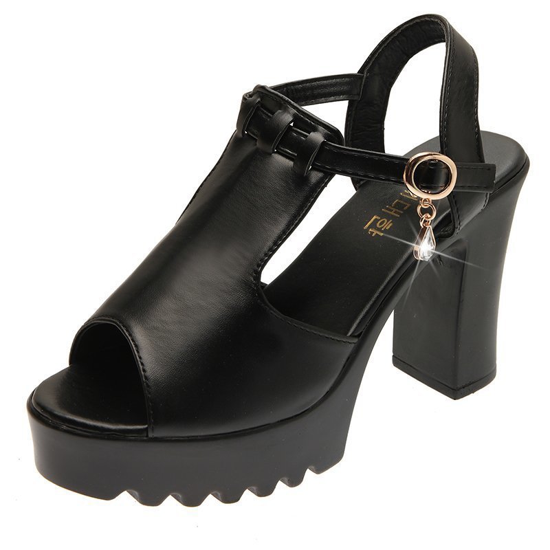 하이힐 샌들 여성용 두꺼운 굽 2023 여름 새 샌들 여성용 한국 스타일 유행 섹시한 티셔츠 모양의 샌들 물고기 입스토어 가기