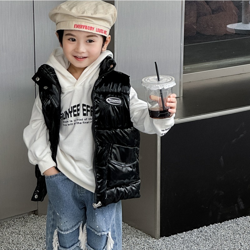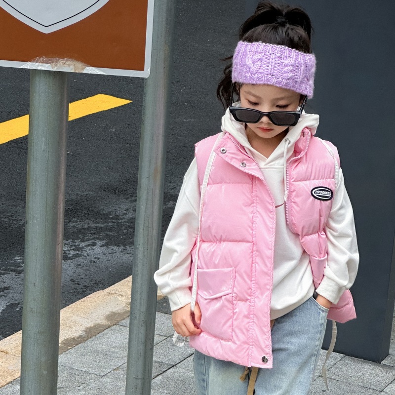 어린이 다운 면 조끼 남아 및 여아 두꺼운 조끼 아기의 따뜻한 양복 조끼 워시프리 광택 재킷