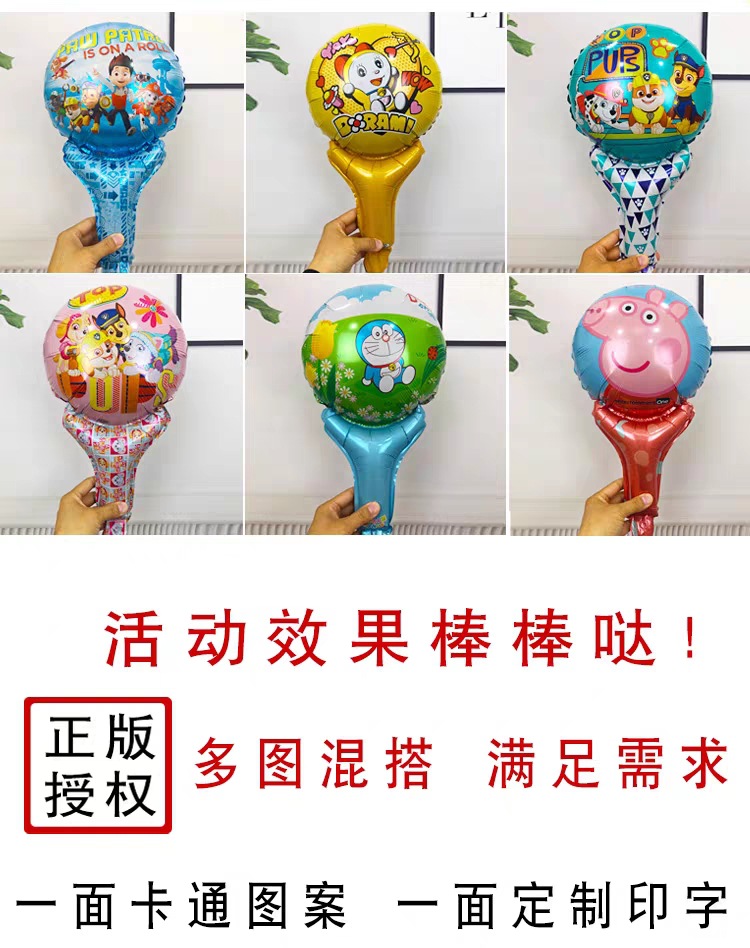 만화 알루미늄 필름 핸드 헬드 스틱 광고 풍선 인쇄 맞춤형 로고 인쇄 유치원 푸시 활동 홍보 풍선스토어 가기