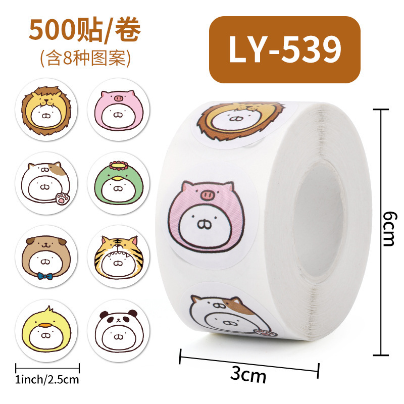 귀여운 돼지 스티커 라운드 인감 스티커 500 접착 라벨 어린이 만화 롤 스티커 도매