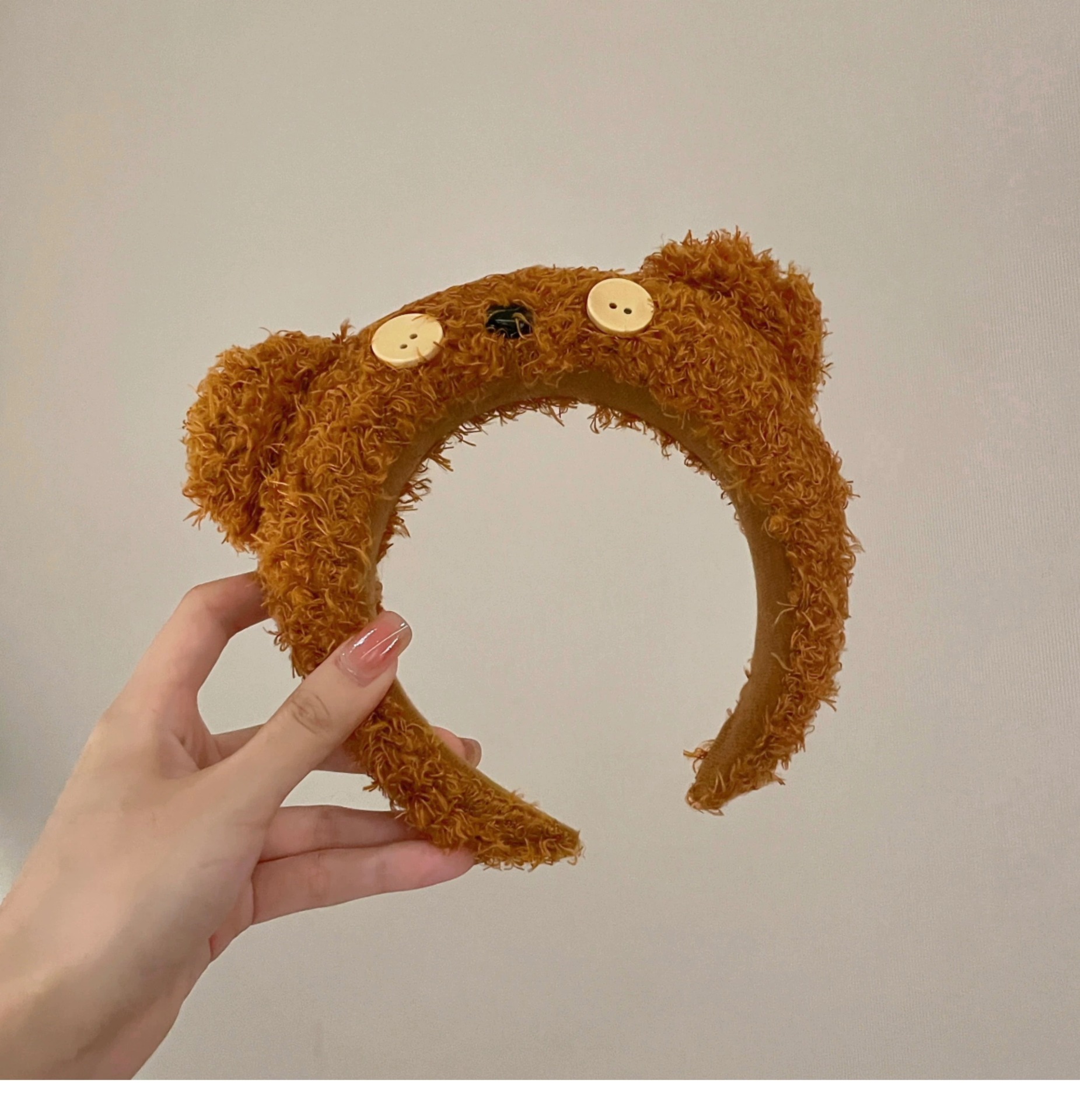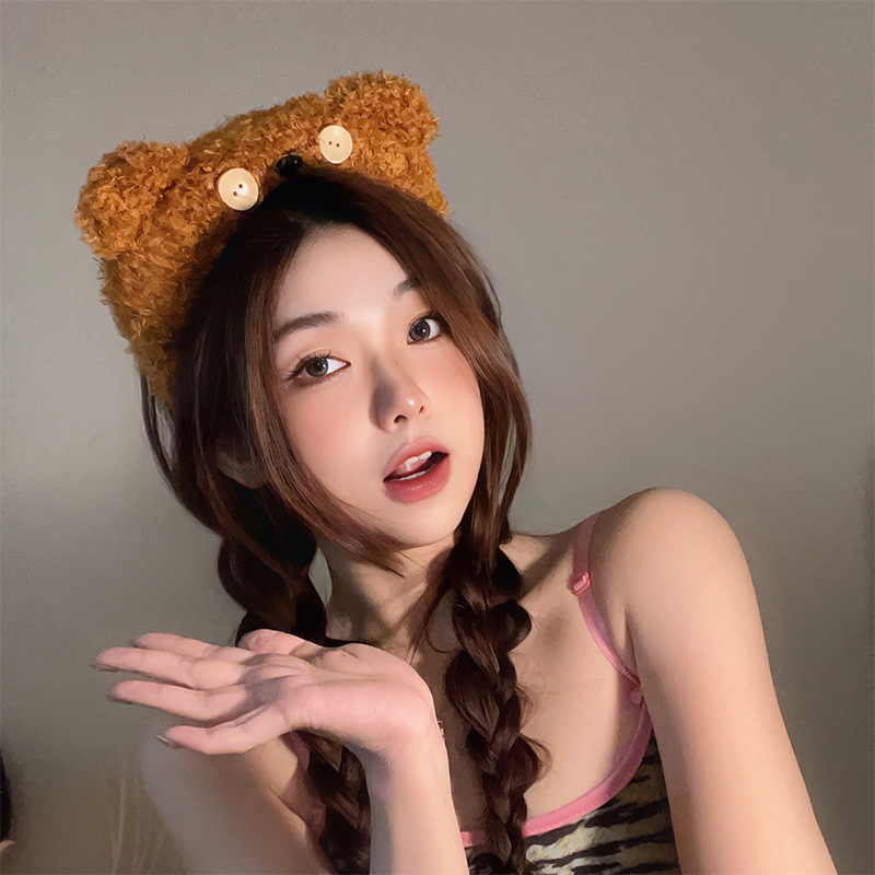 Zhang Ruonan과 같은 스타일의 인터넷 연예인 헤어밴드 플러시 버튼 곰 머리띠 여성용 고급 가을 겨울 귀여운 헤어밴드 헤어 액세서리스토어 가기