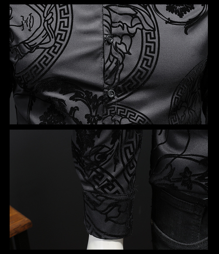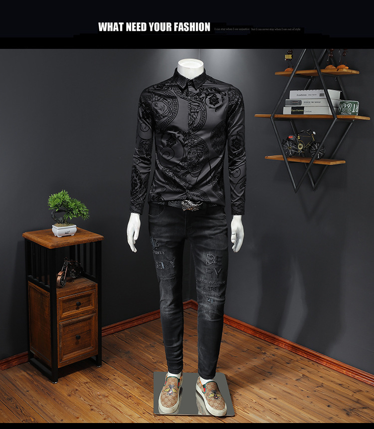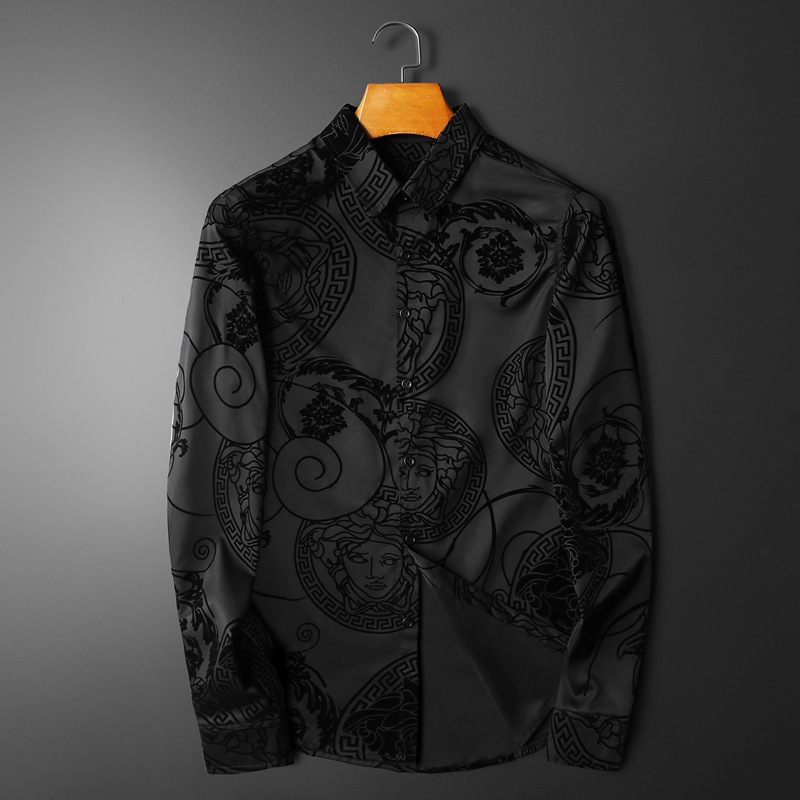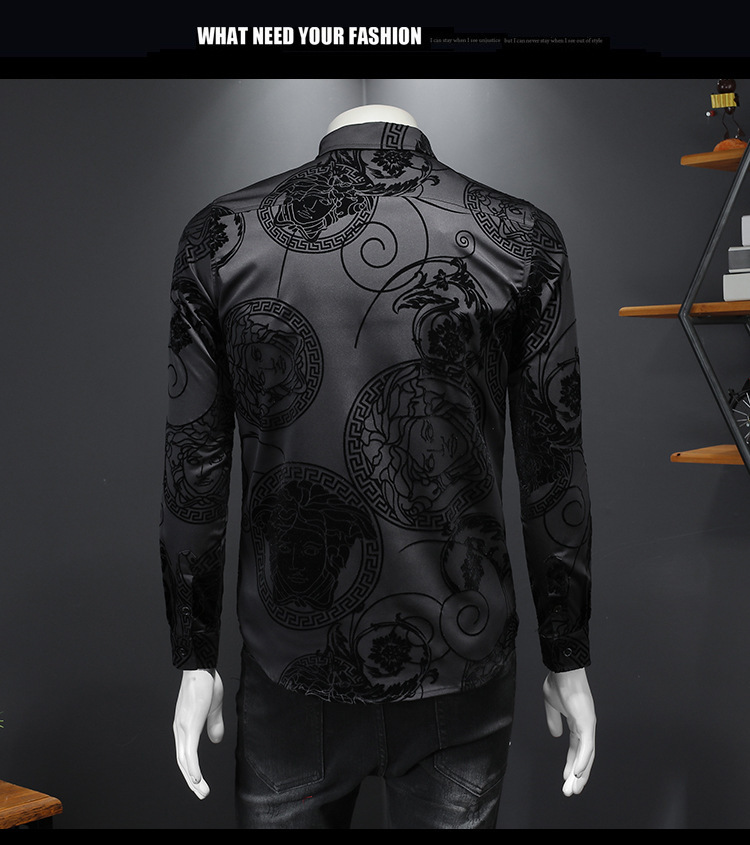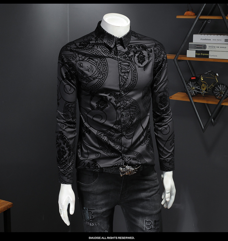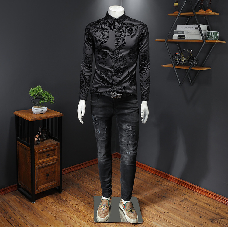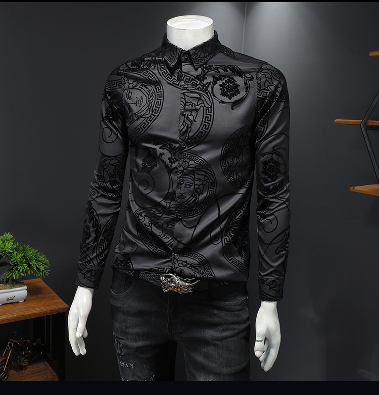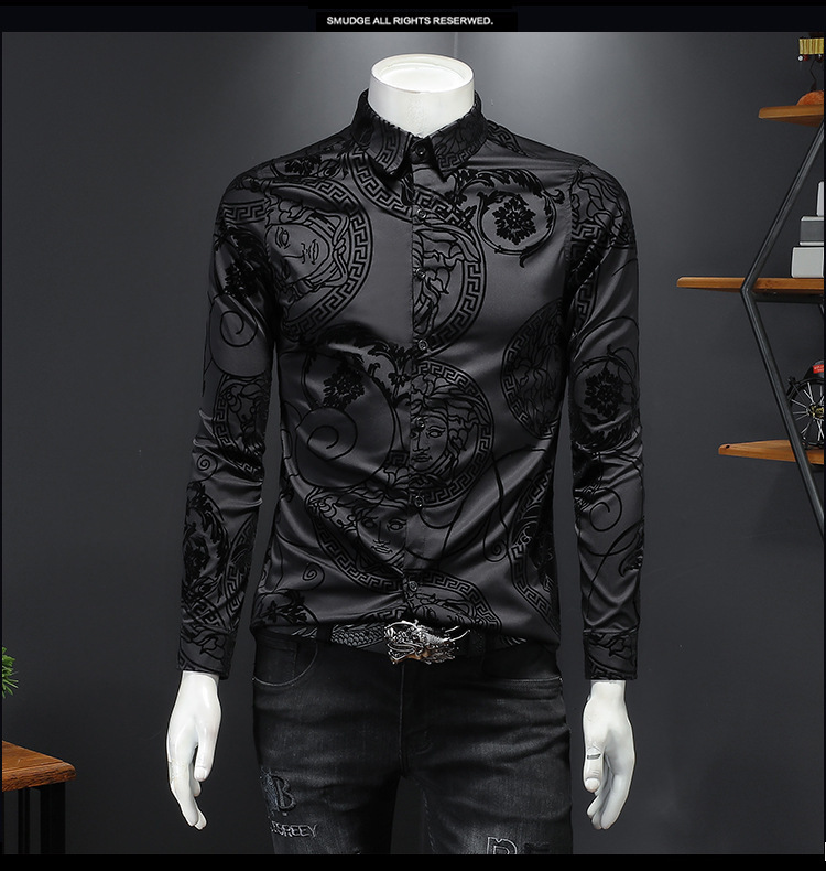 타오바오 해외 무역 도매 2024년 가을 벨벳 긴팔 셔츠 남성용 대형 사이즈 슬림핏 셔츠 남성복 모델스토어 가기