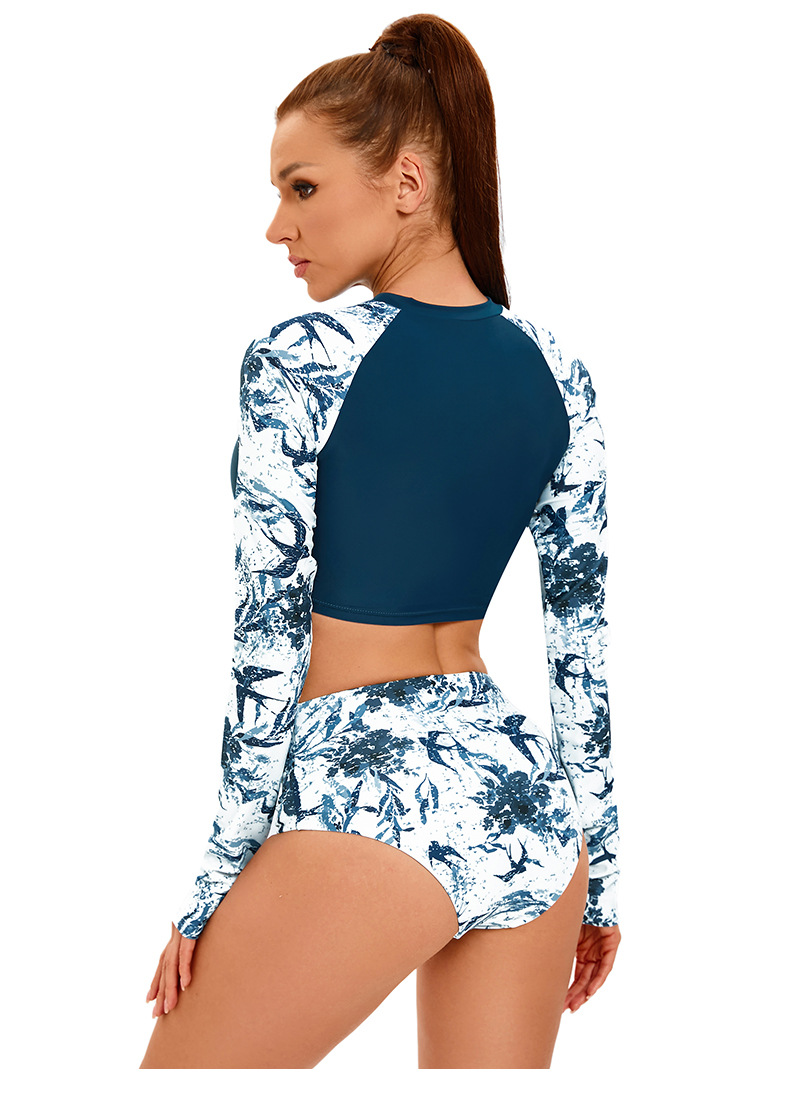 크로스 보더 새로운 프린트 긴팔 스플릿 수영복 여성용 아마존 하이 웨이스트 서퍼 의류 유럽과 미국 섹시 보수적 수영복스토어 가기