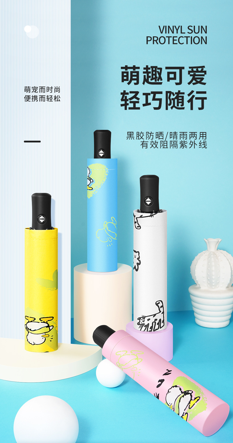 귀여운 소녀들을 위한 심플하고 예쁜 디자인의 우산, 햇빛 차단과 비 차단 겸용, 블랙코팅 자동 우산, 광고 로고 인쇄 가능스토어 가기