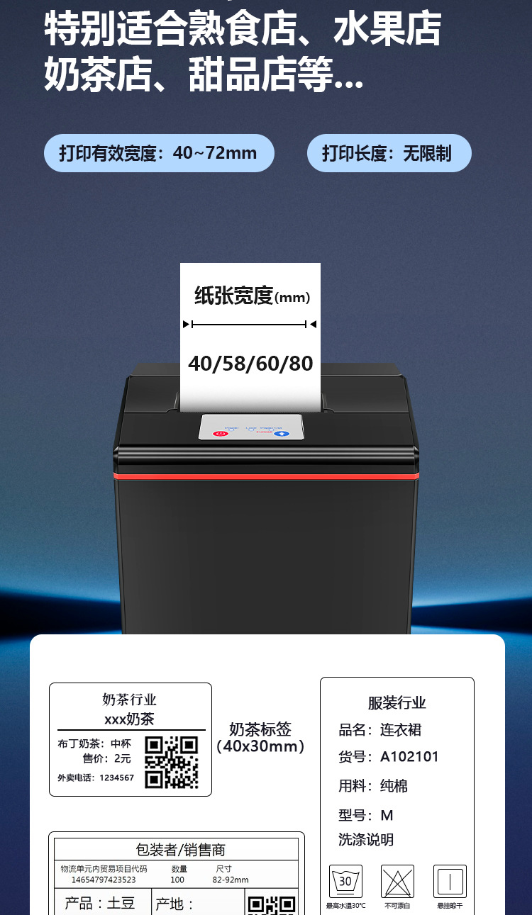 열 바닥이없는 종이 라벨 프린터 밀크티 커피 라벨 인쇄 바닥이없는 종이 프린터