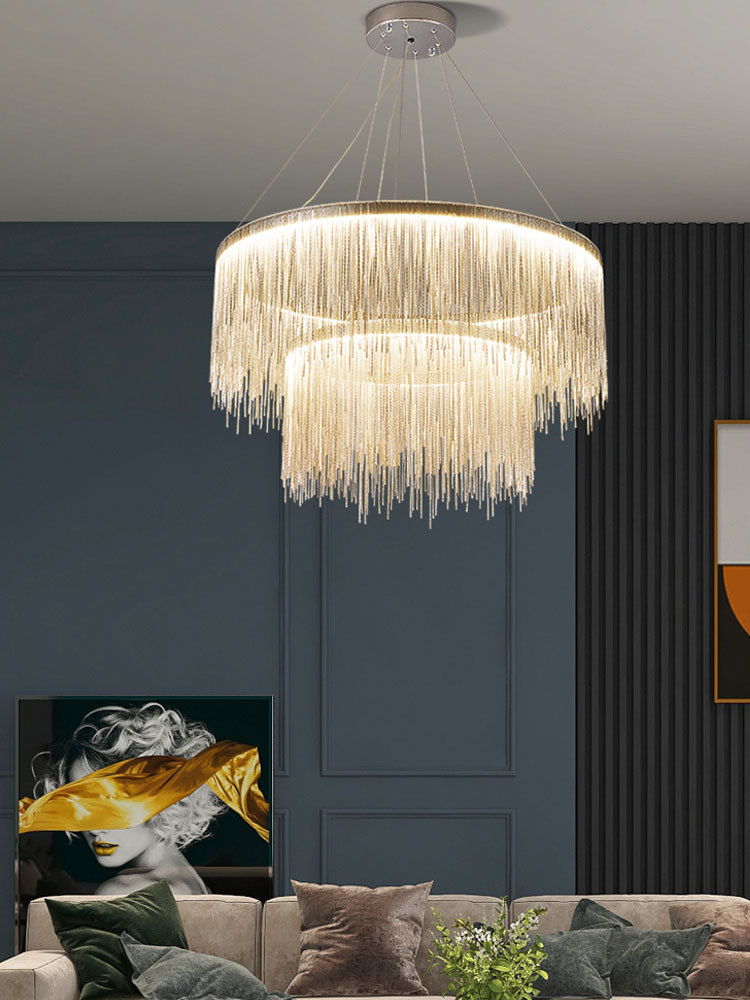 • 더블 레이어 라운드 100 + 60cm 실버 3 색 조명