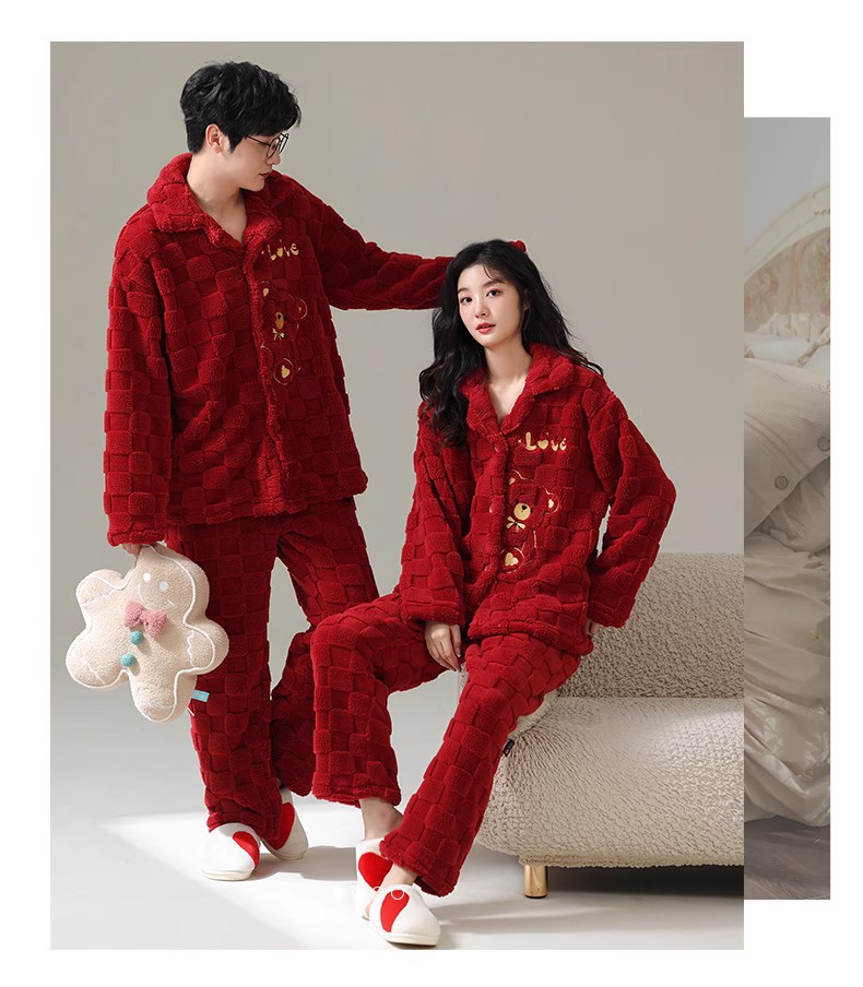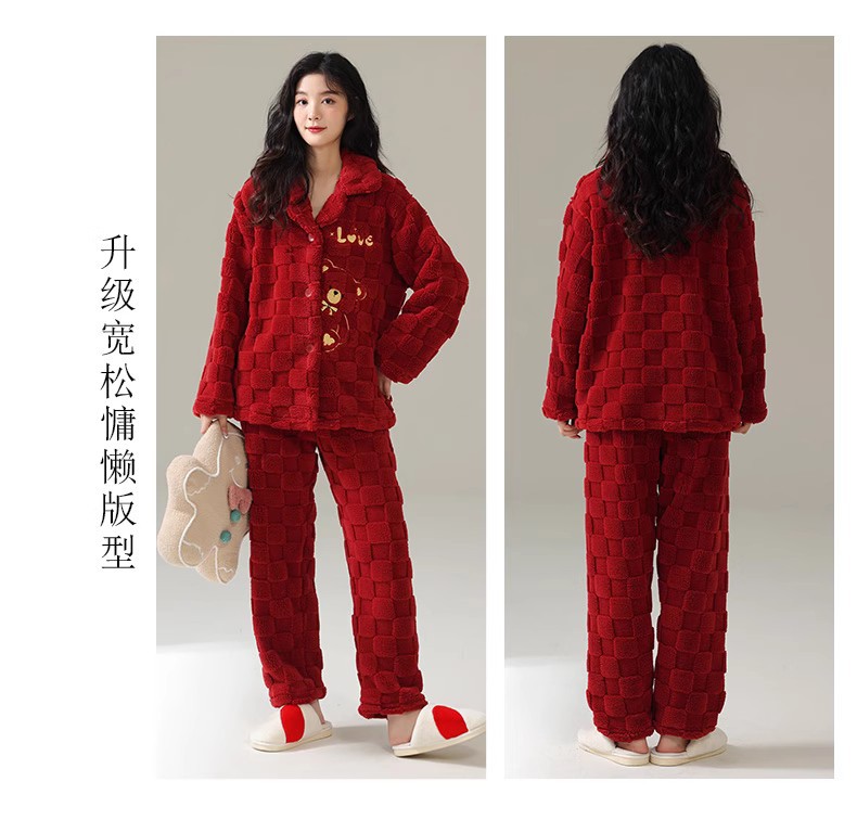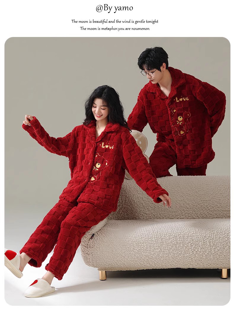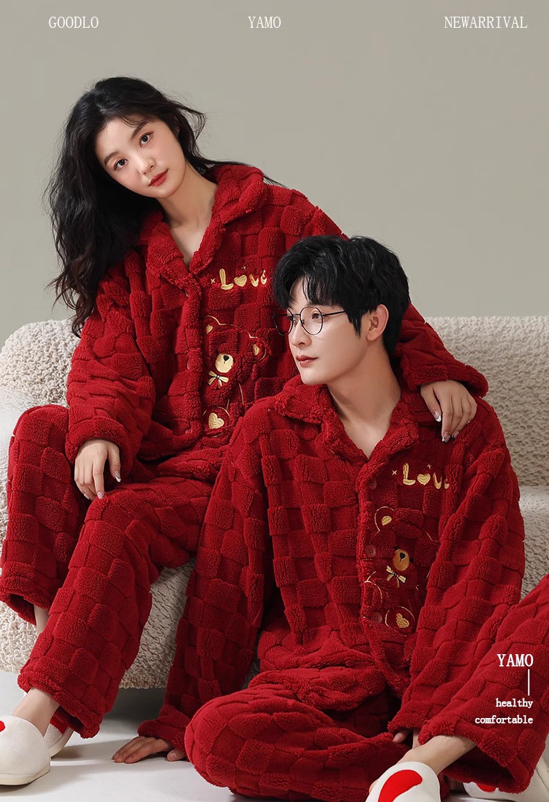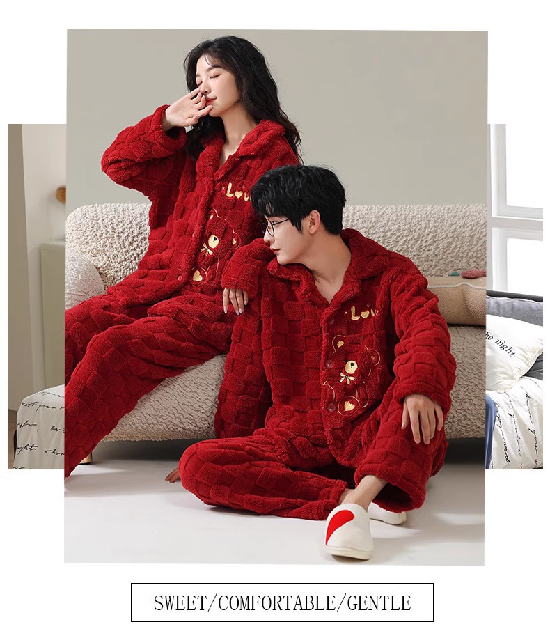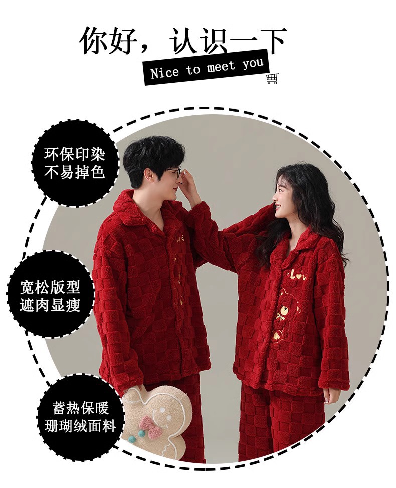 [100 폴리에스터] 웨딩 커플 잠옷 겨울 큰 빨간 결혼식 축제 년 여성 산호 양털스토어 가기