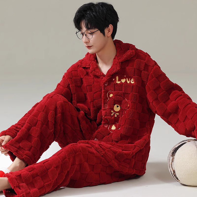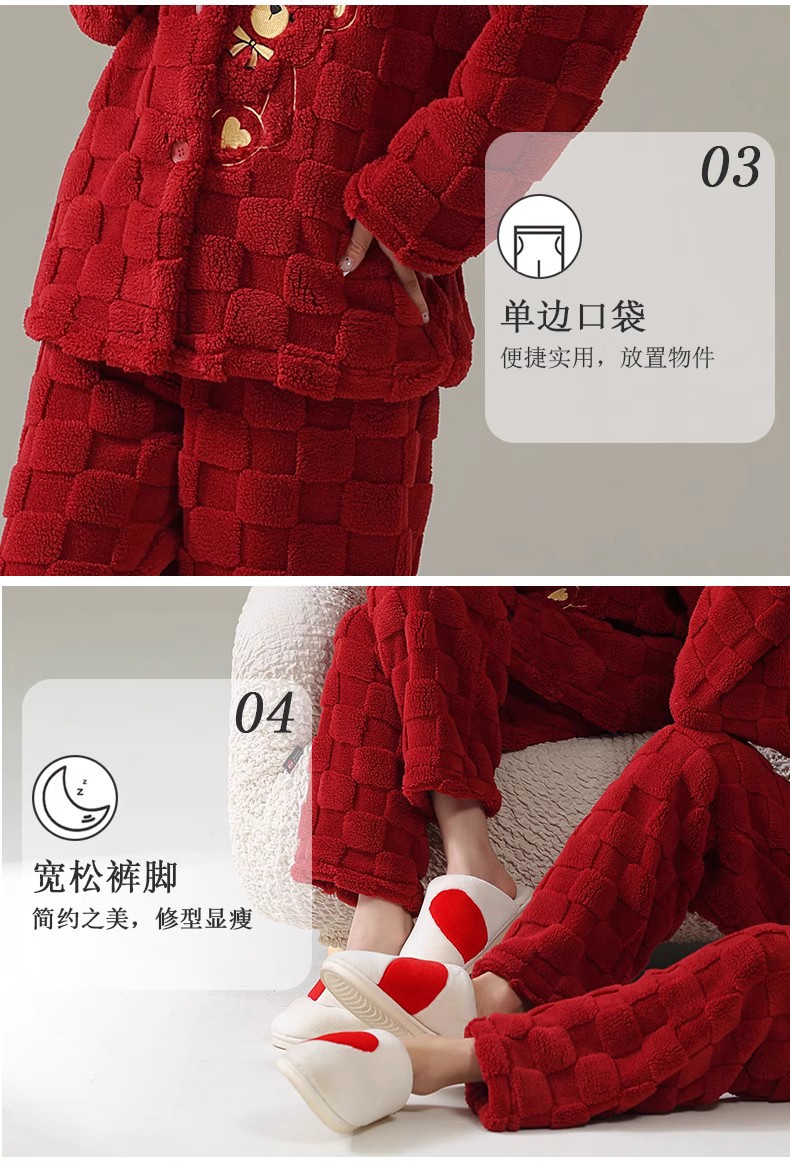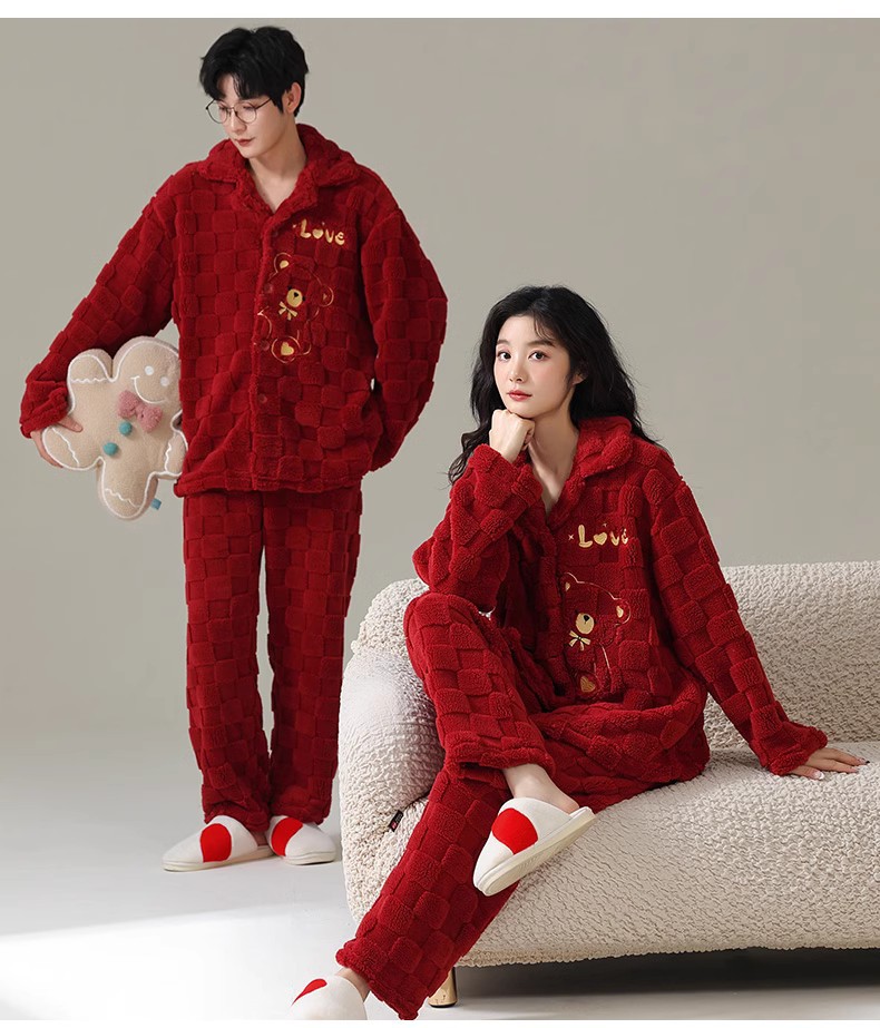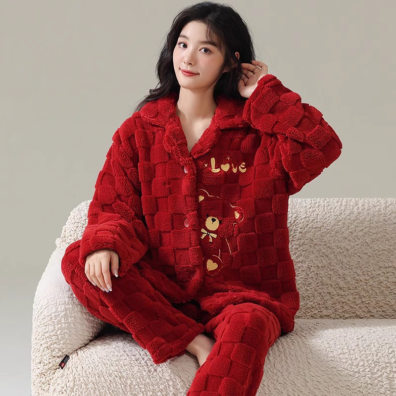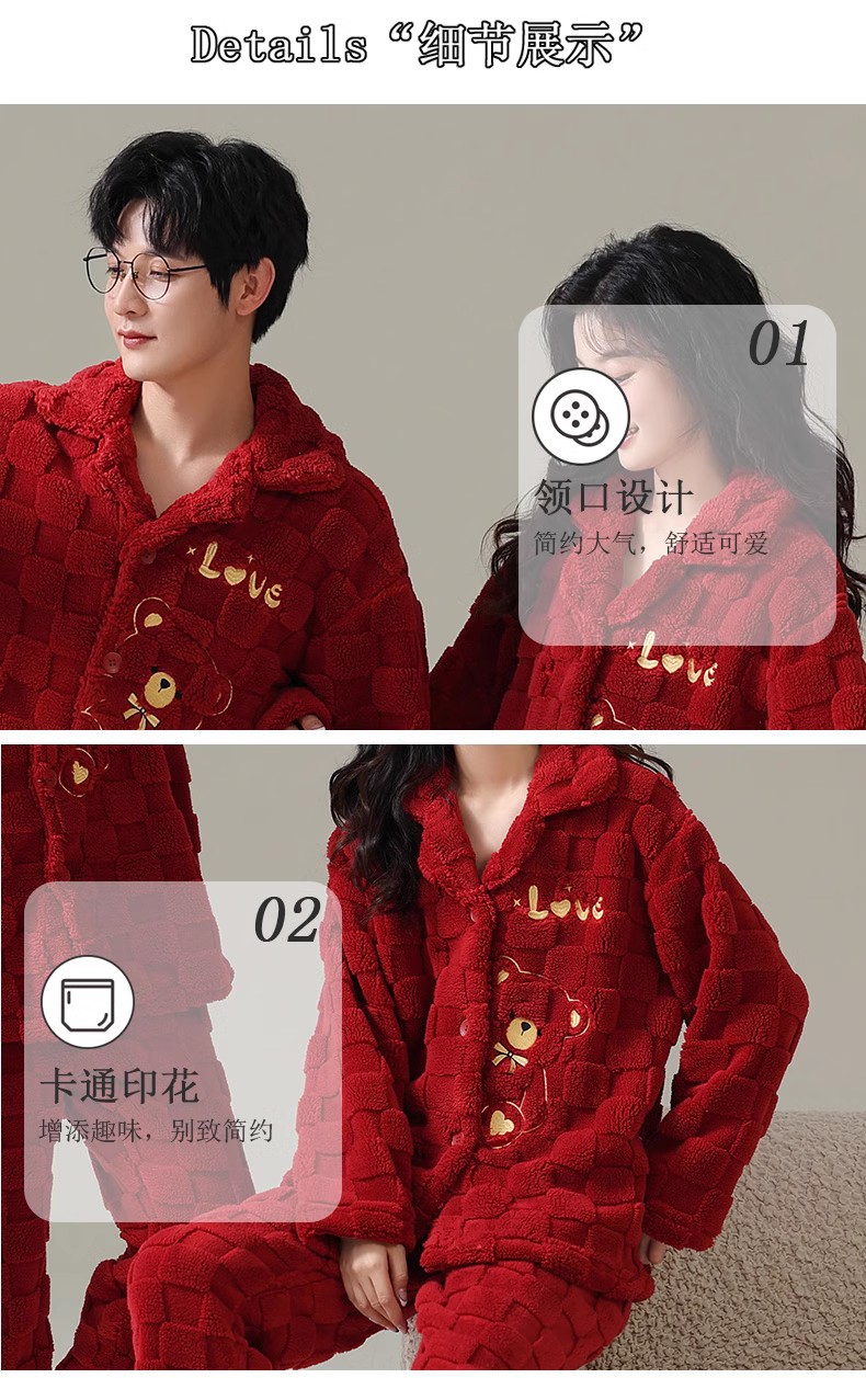 [100 폴리에스터] 웨딩 커플 잠옷 겨울 큰 빨간 결혼식 축제 년 여성 산호 양털스토어 가기