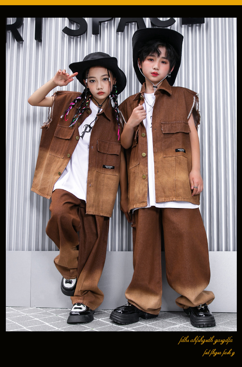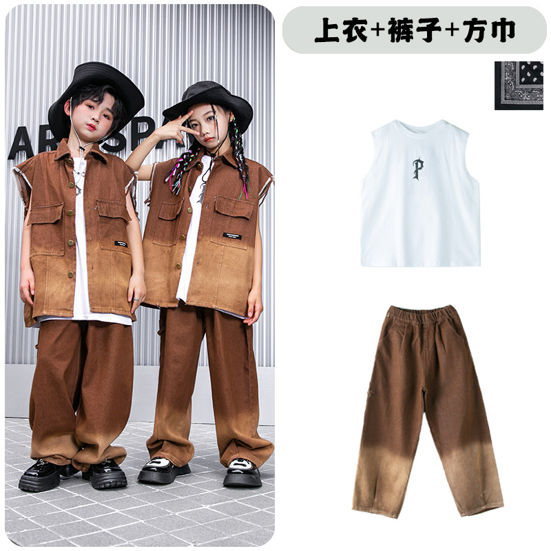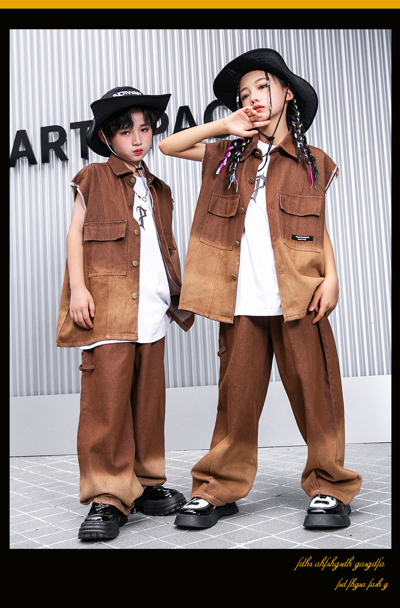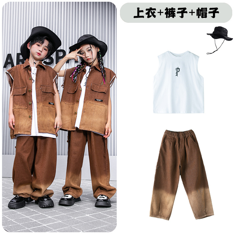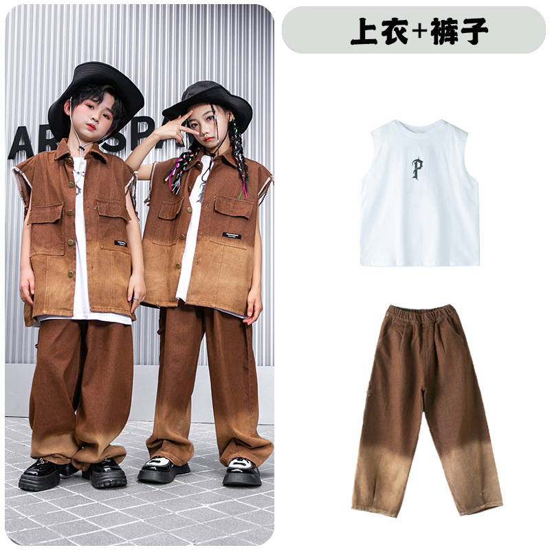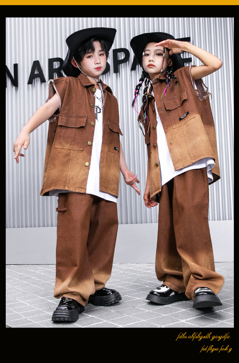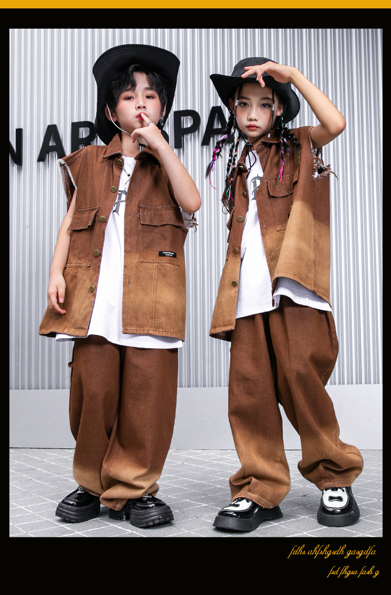 어린이 힙합 의류 힙합 아동 의류 힙합 패션 의류 어린이 패션 브랜드 성능 의류 소년 민소매 조끼 세트
