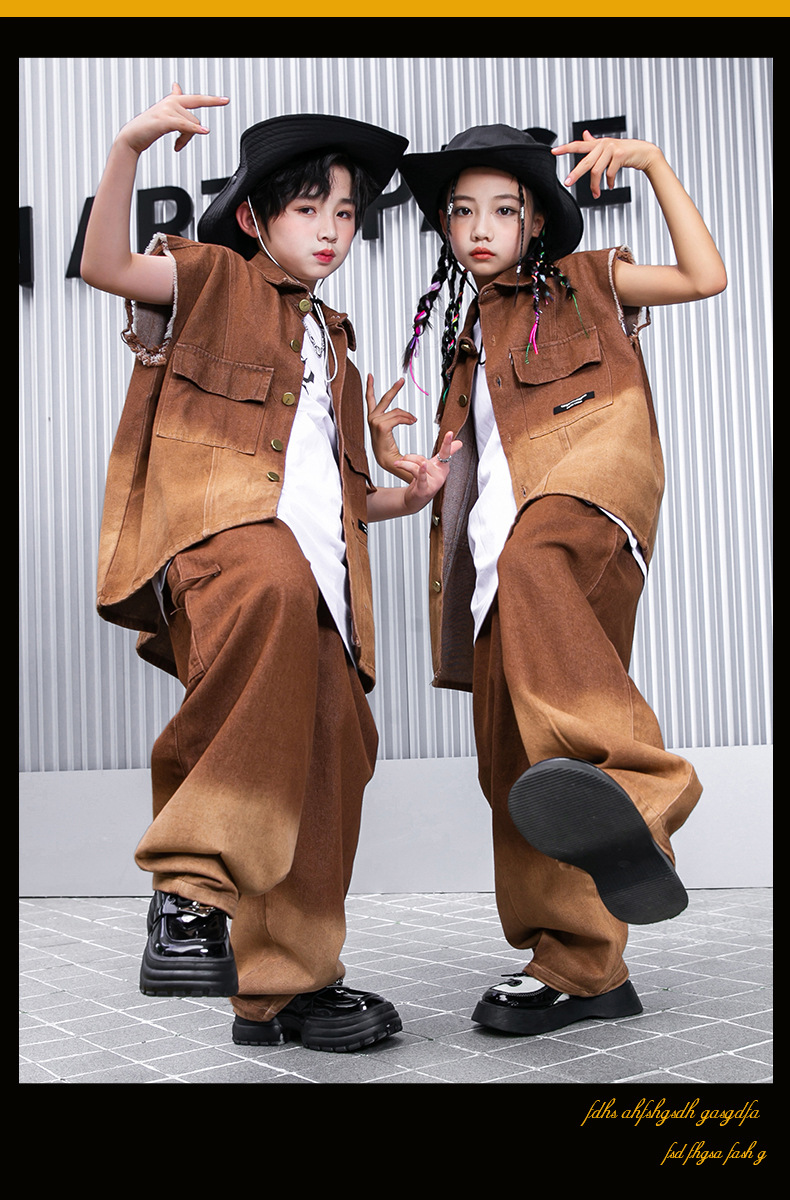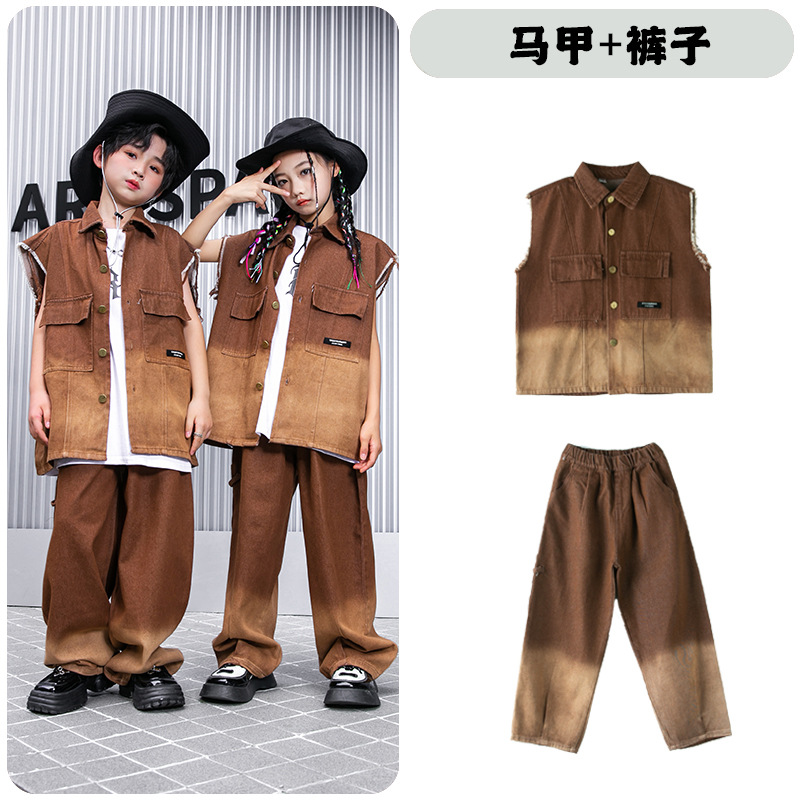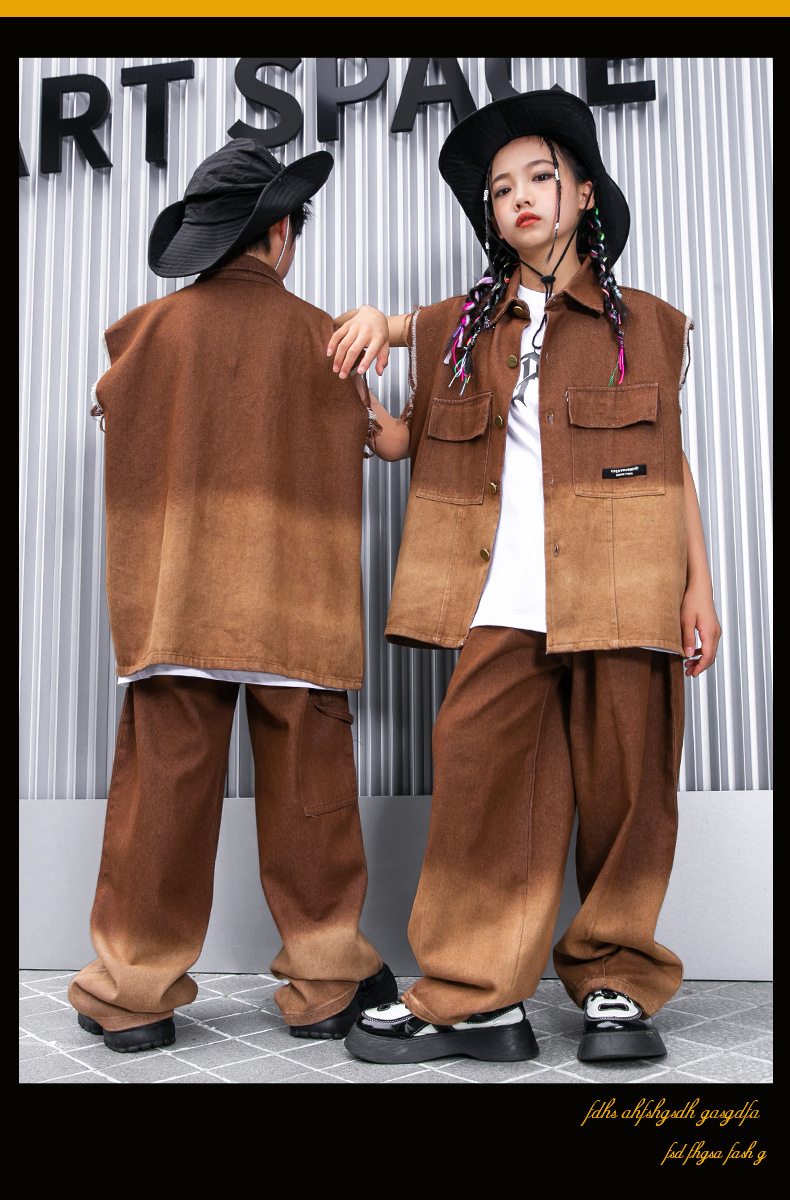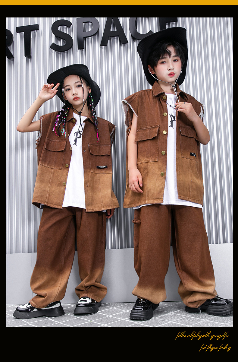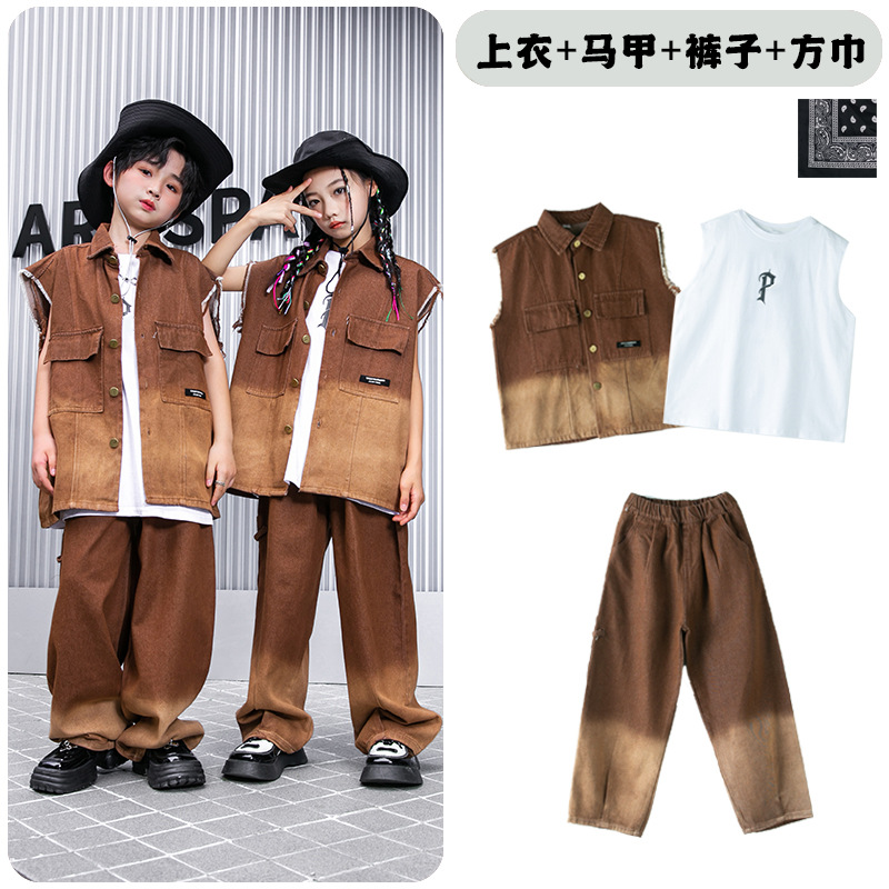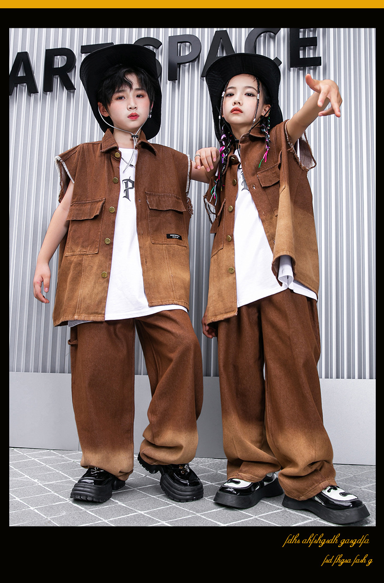어린이 힙합 의류 힙합 아동 의류 힙합 패션 의류 어린이 패션 브랜드 성능 의류 소년 민소매 조끼 세트