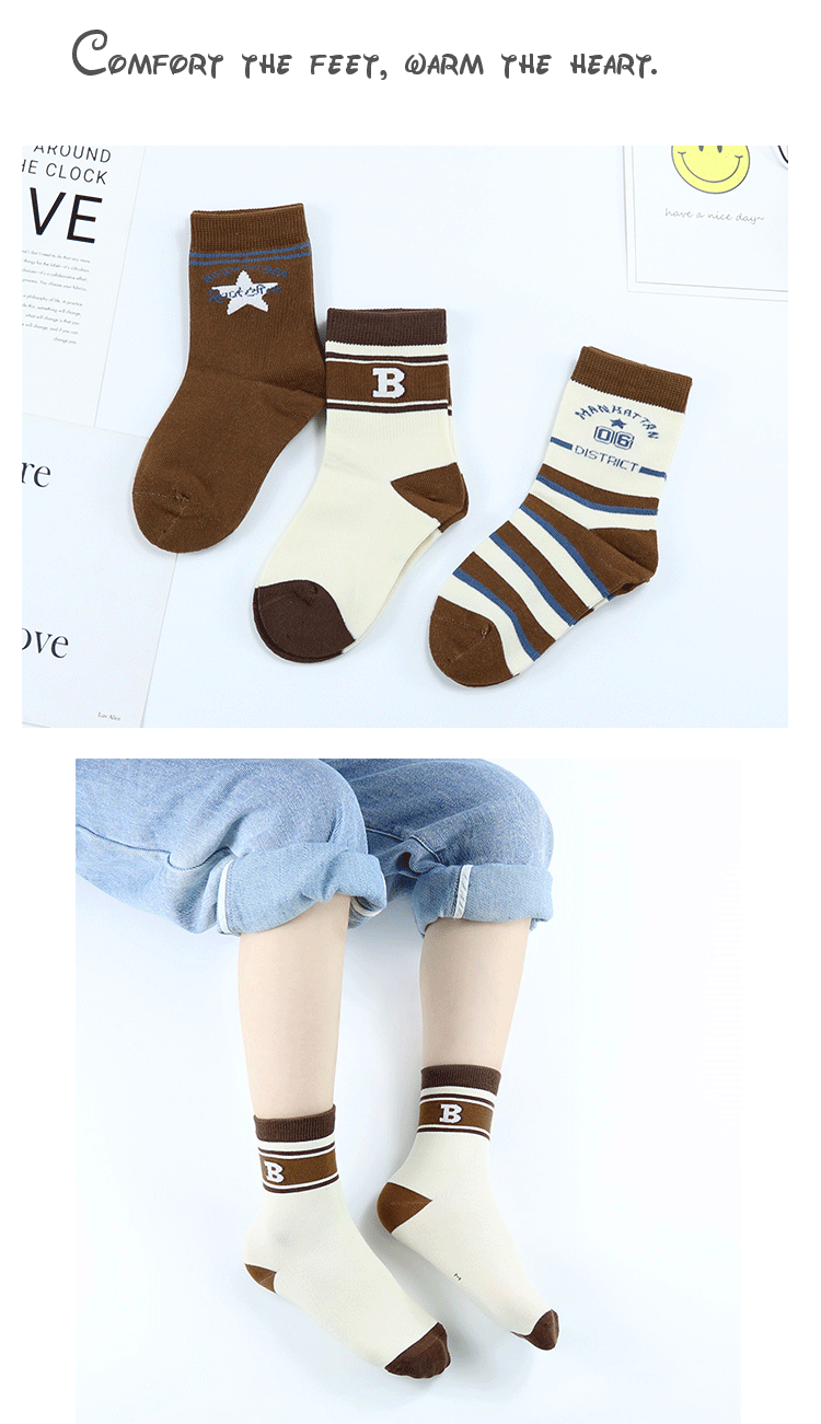 이순신 쌍 어린이 양말 가을과 겨울 새로운 한국식 레터 미드 튜브 양말 빗질 면 트렌디 브랜드 스포츠 양말 뼈없는 면 양말스토어 가기
