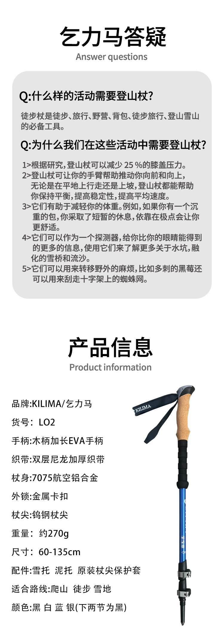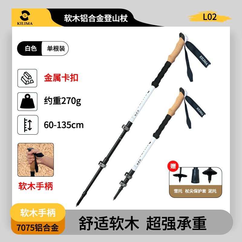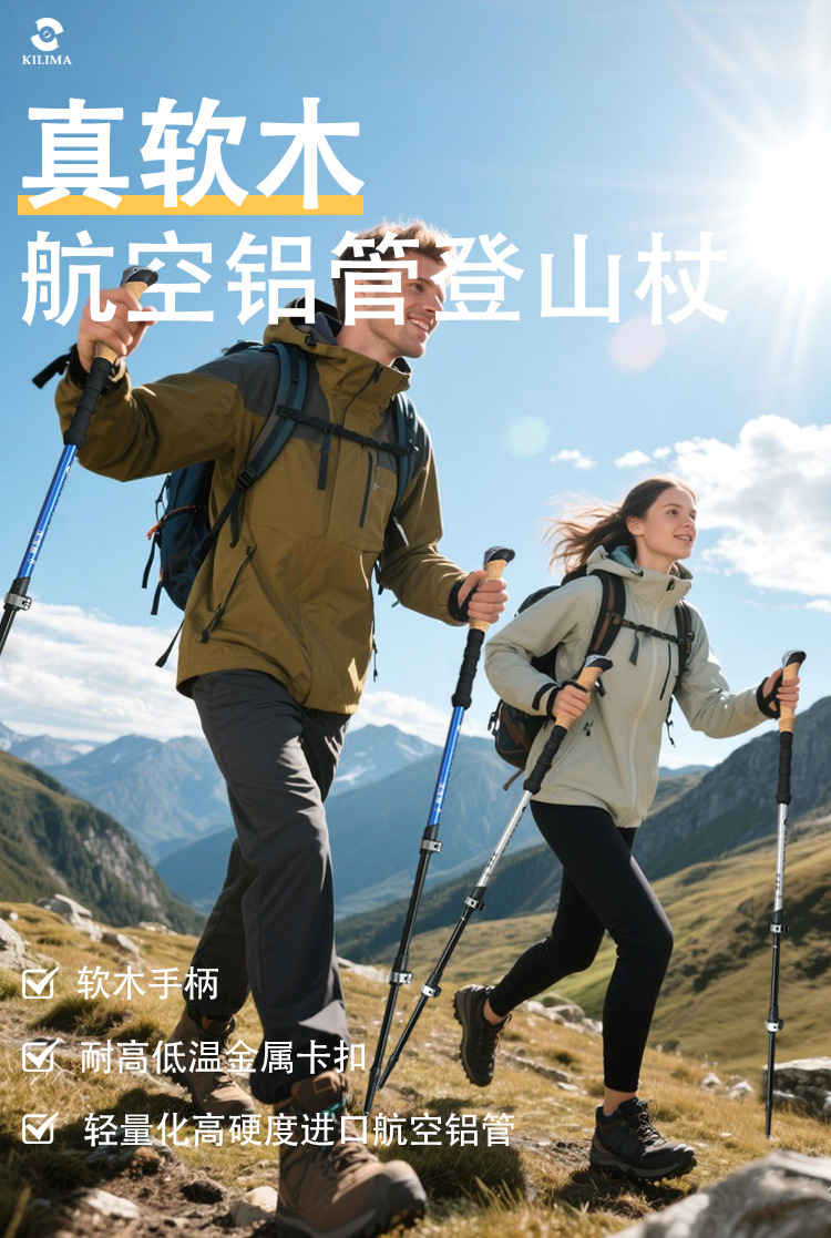 킬리마 나무 손잡이 알루미늄 합금 외부 자물쇠 하이킹 스틱 가공 및 인쇄 코르크 땀 흡수 산 하이킹 스틱스토어 가기