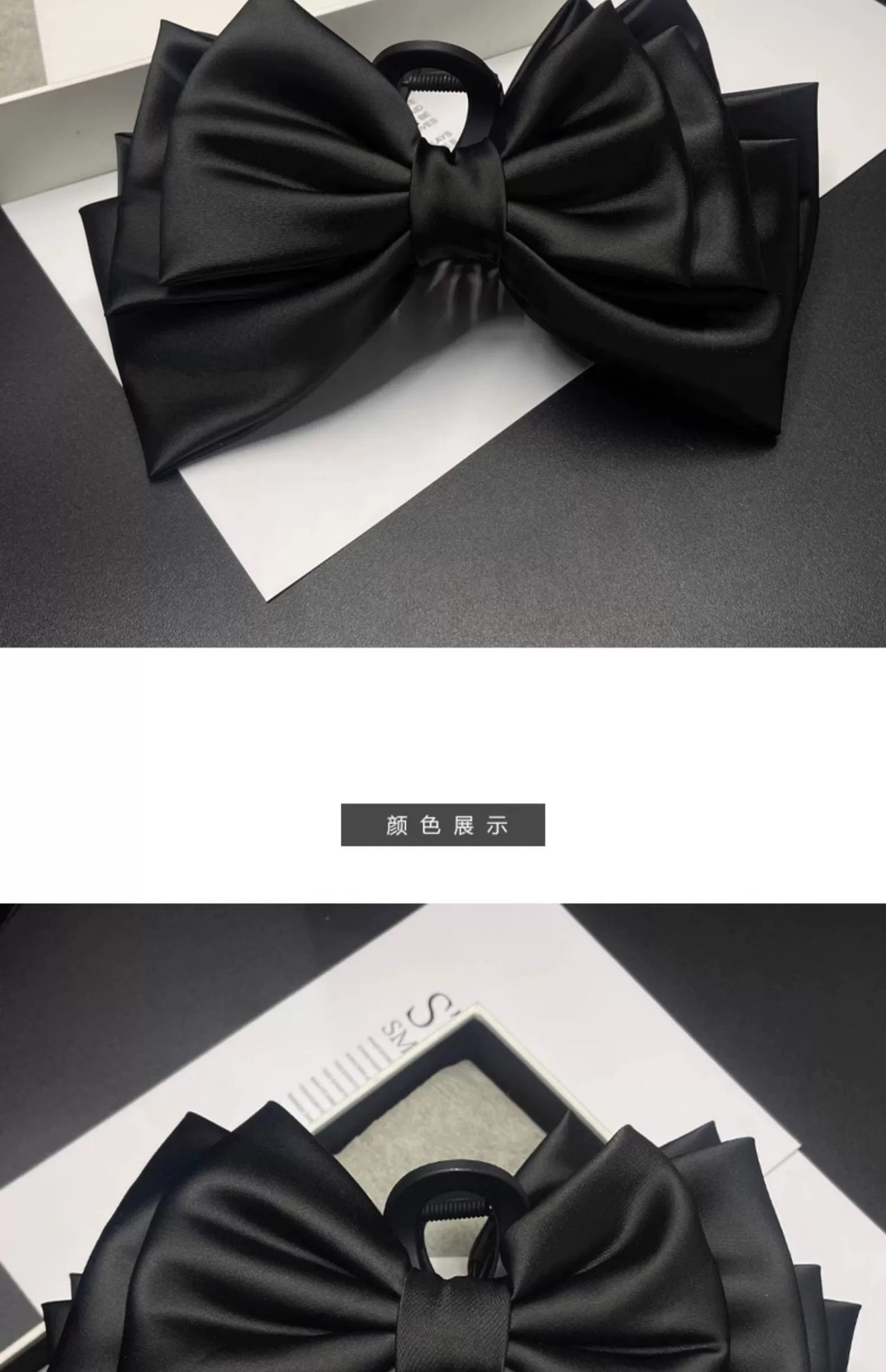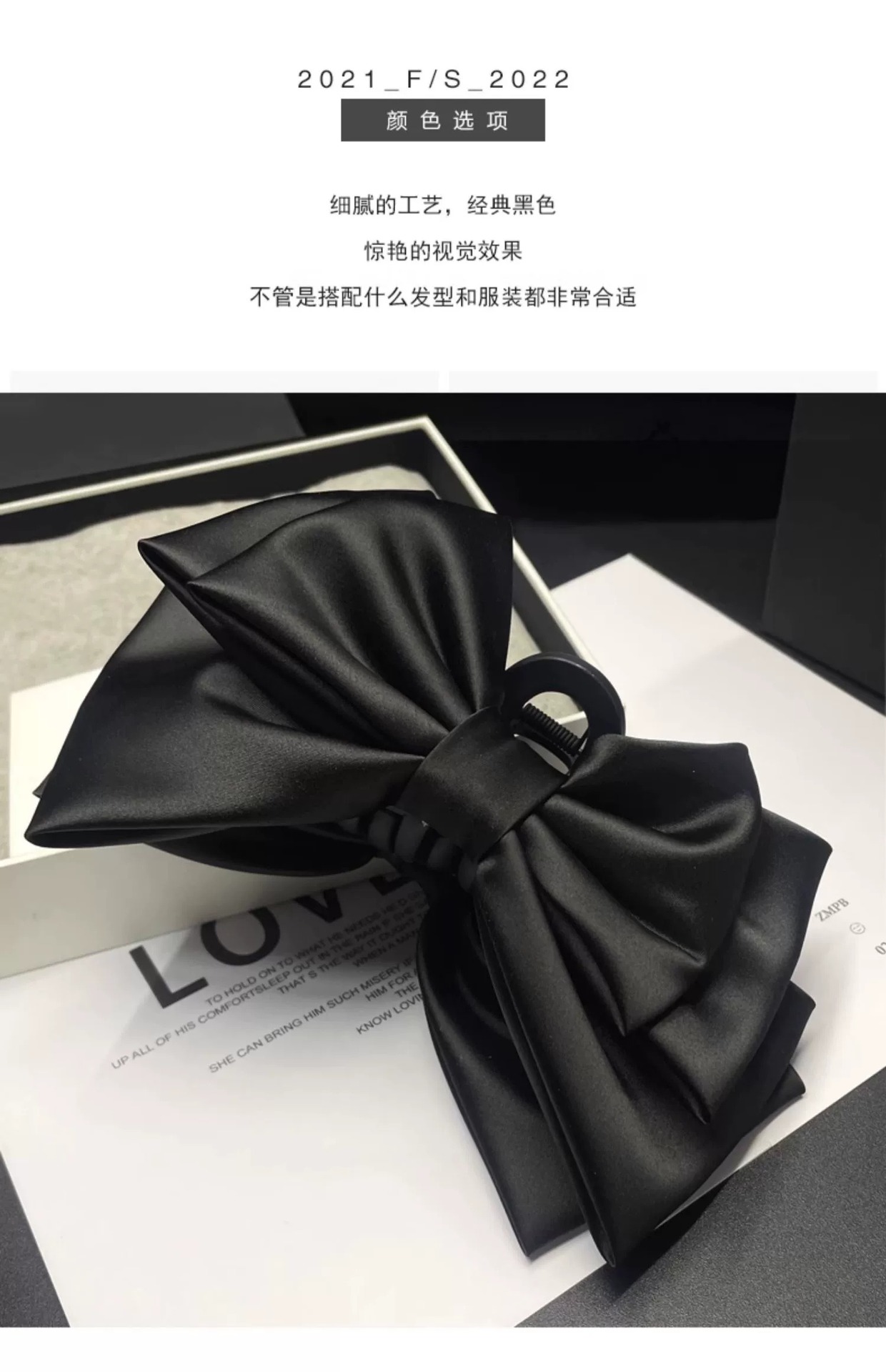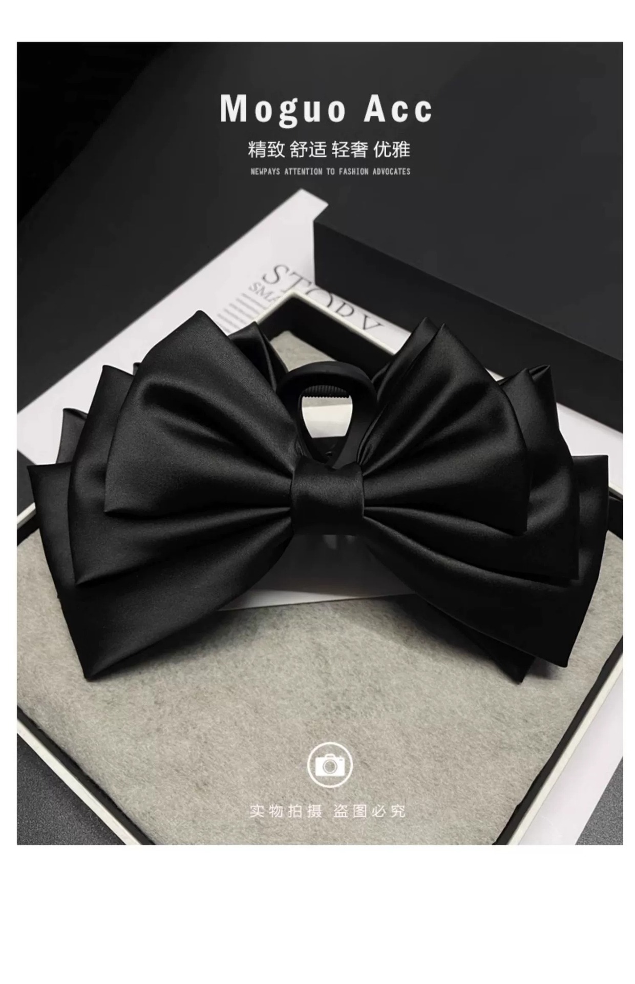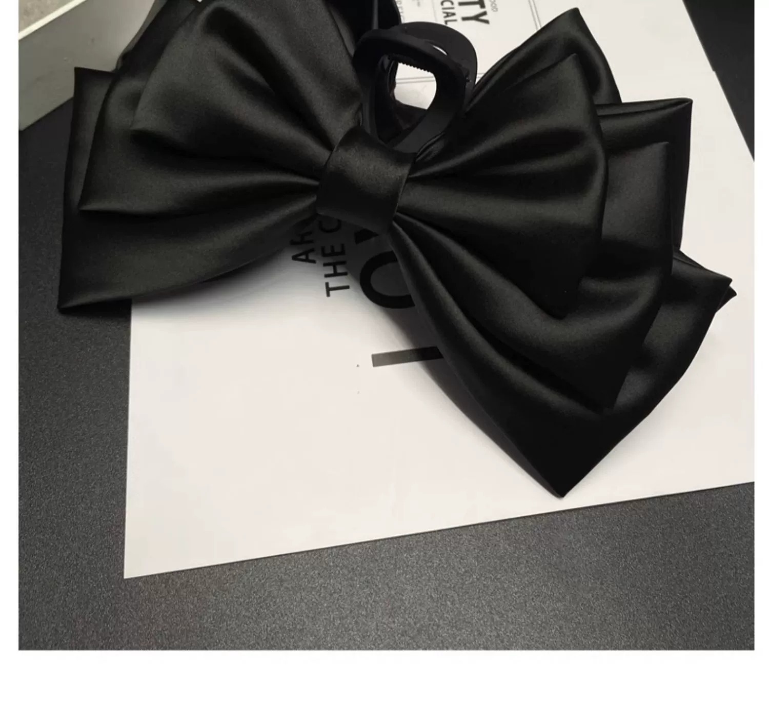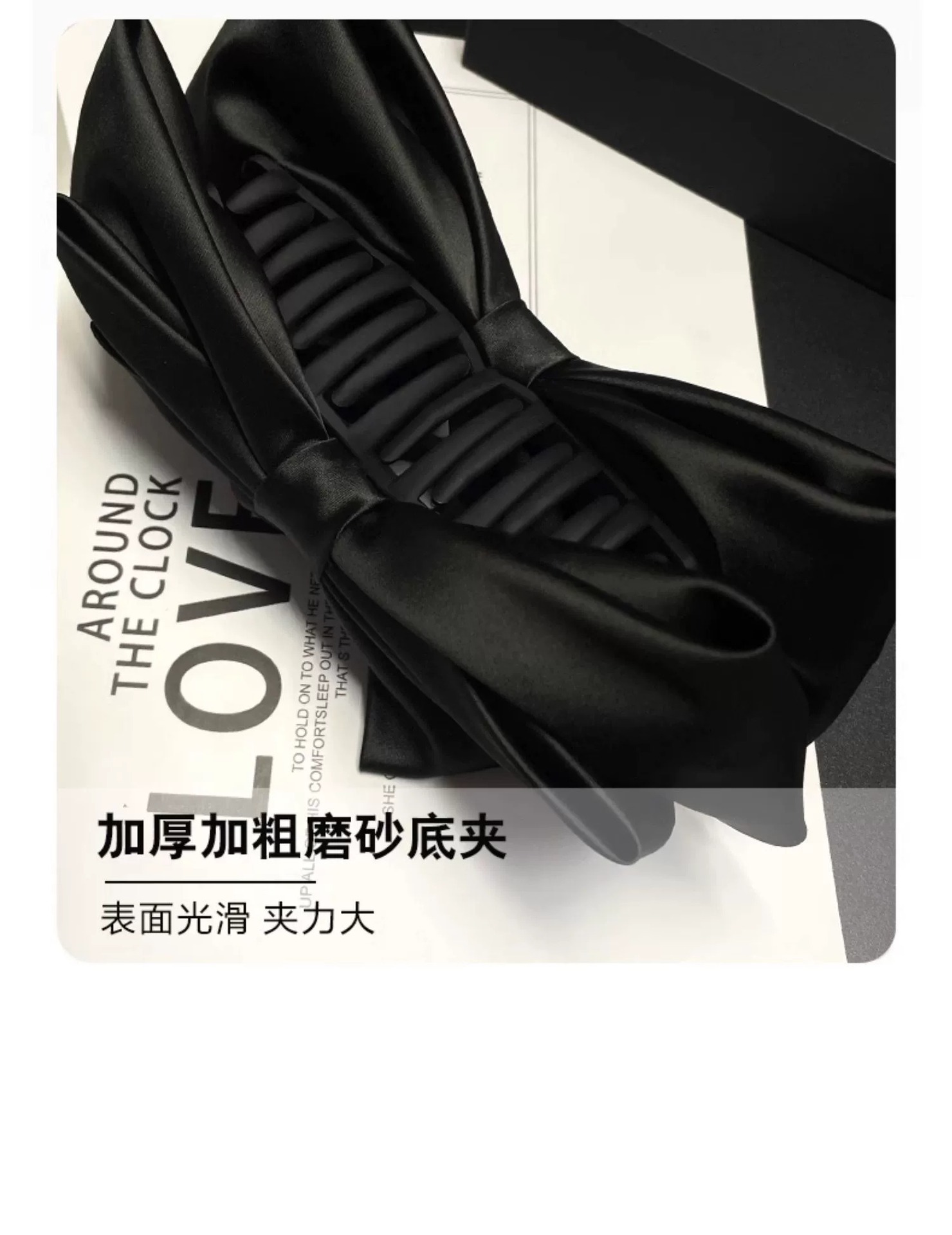 새틴 블랙 대형 리본 헤어핀, 프렌치 스타일 고급 헤어 액세서리, 3단 샤크 클립