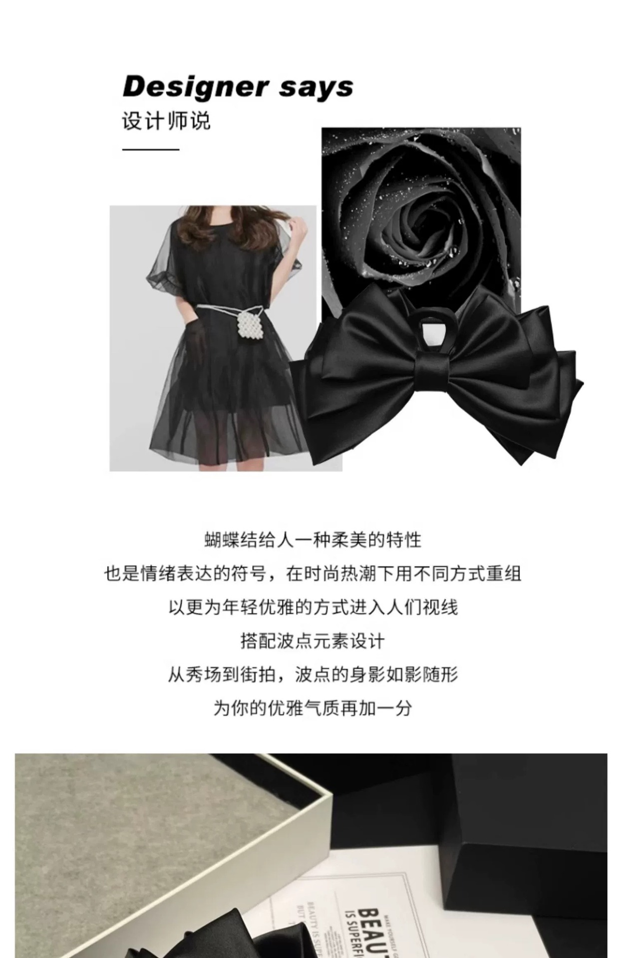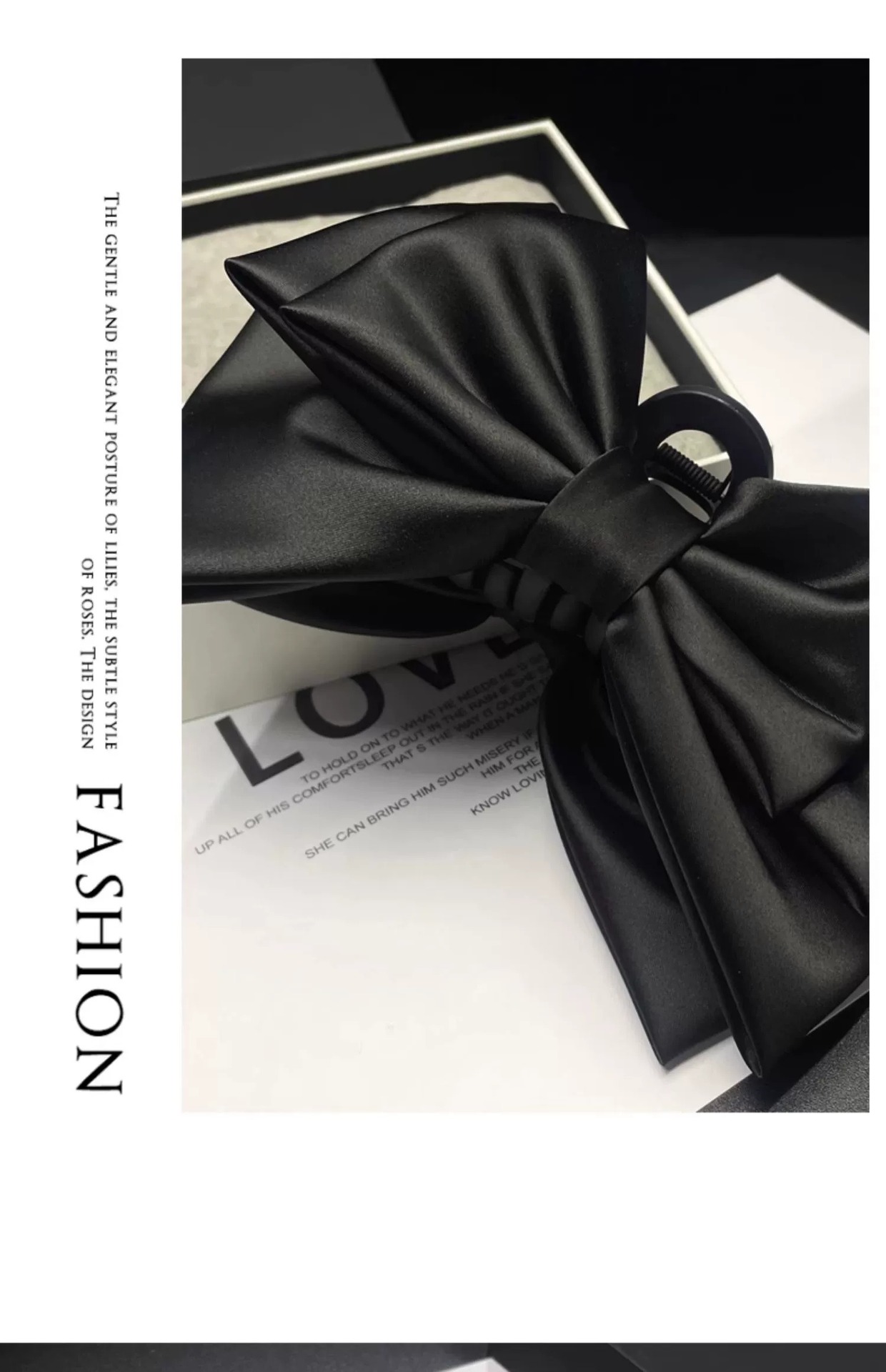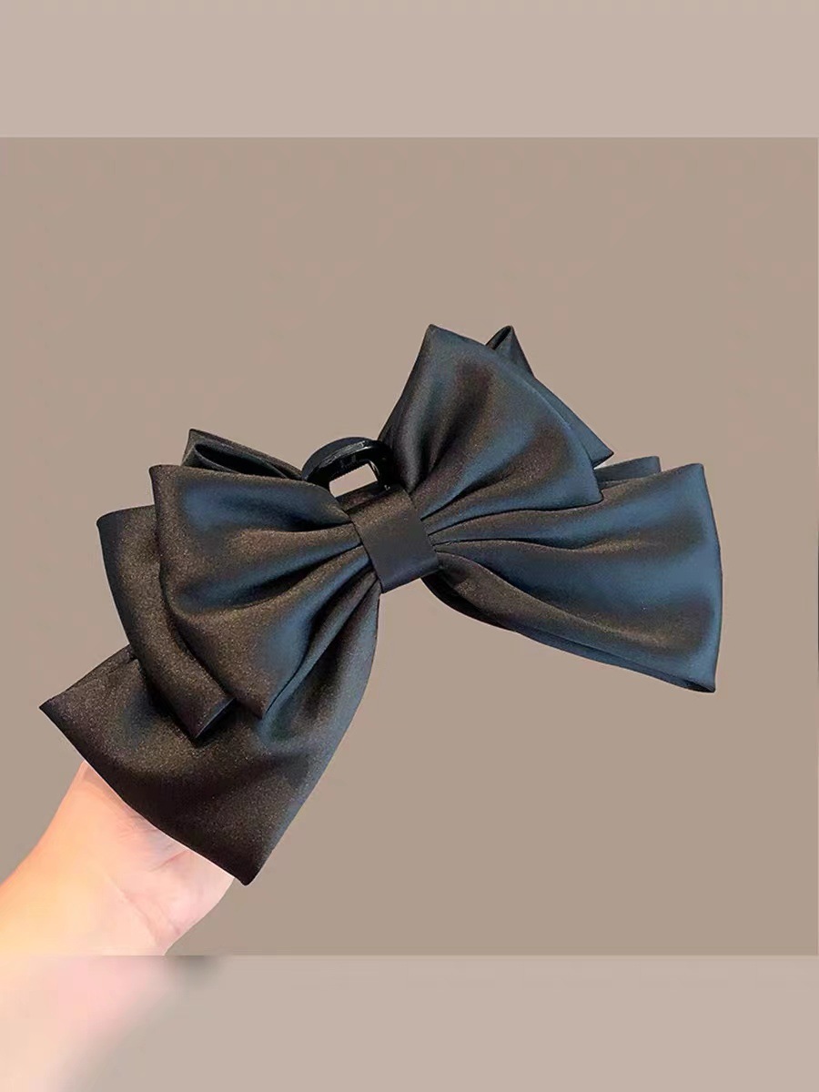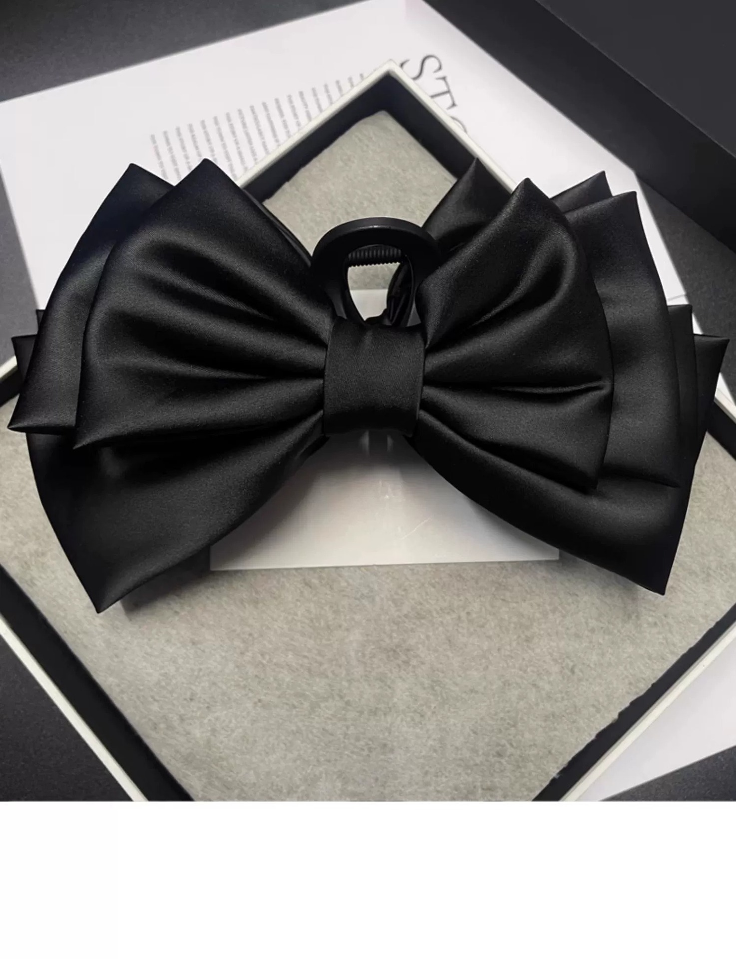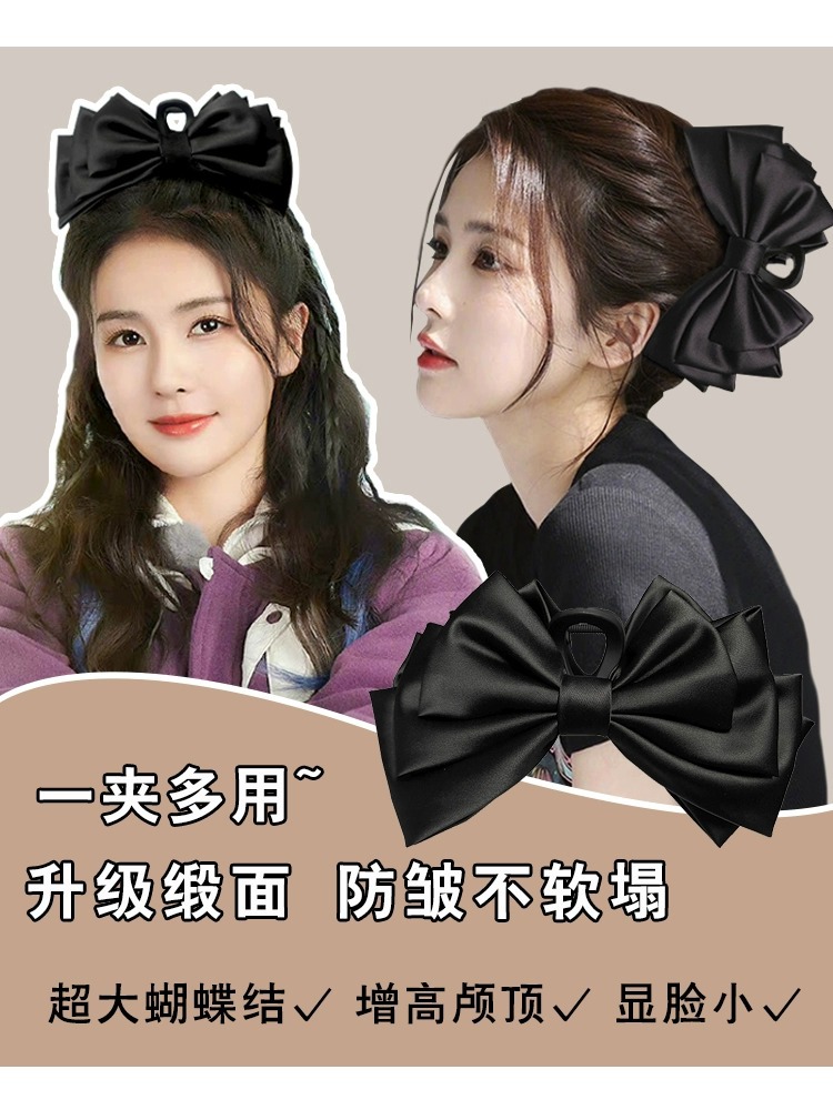 새틴 블랙 대형 리본 헤어핀, 프렌치 스타일 고급 헤어 액세서리, 3단 샤크 클립