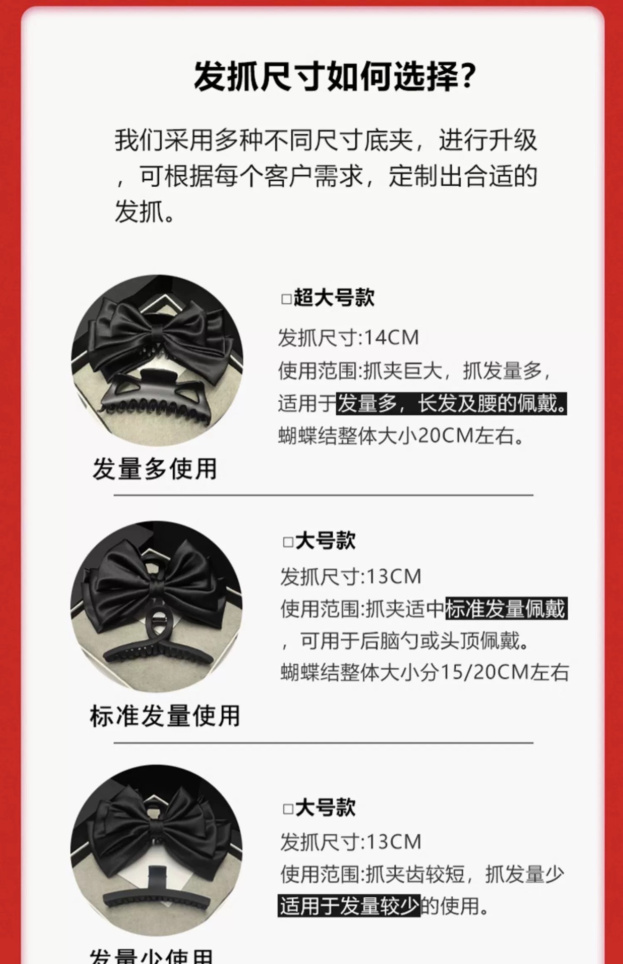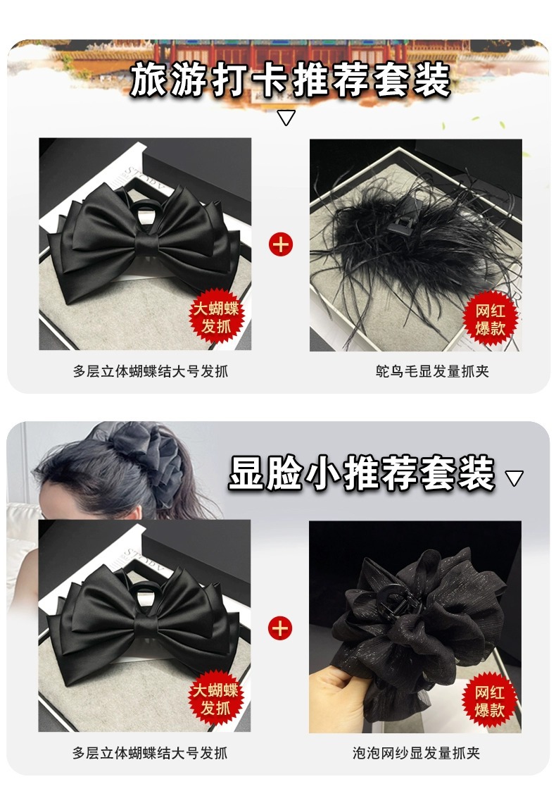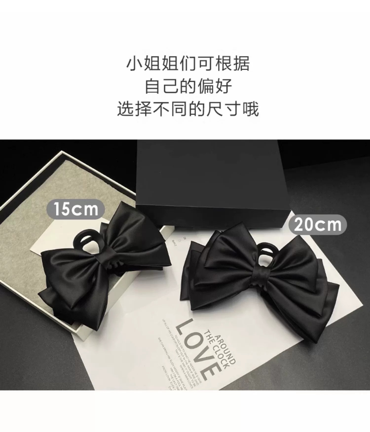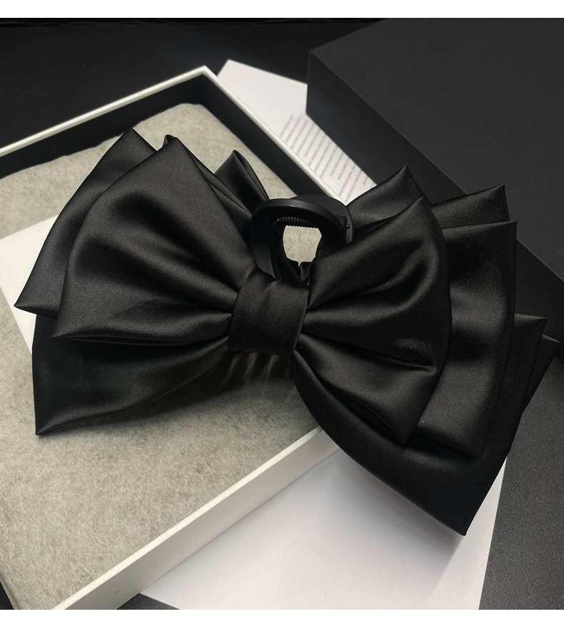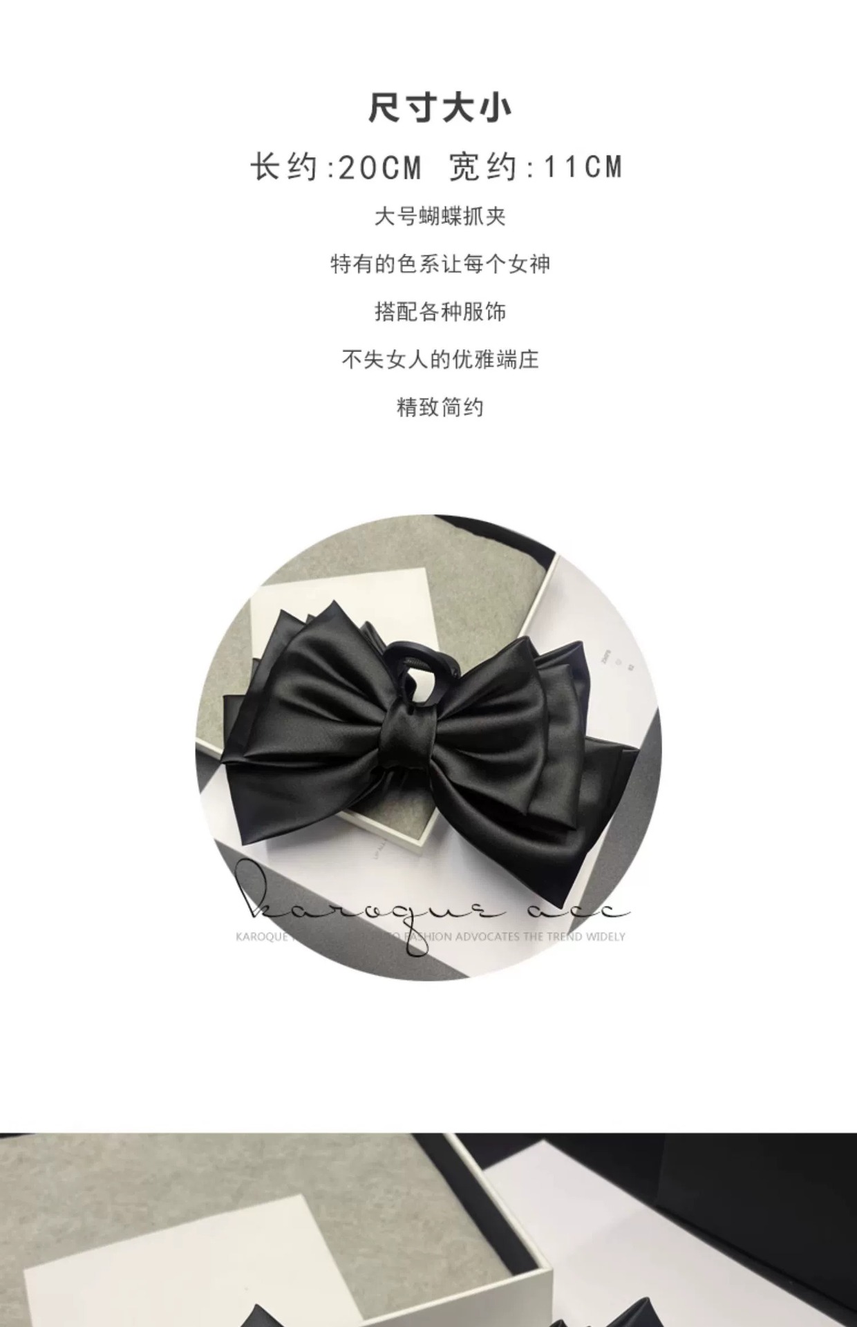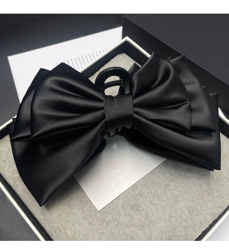 새틴 블랙 대형 리본 헤어핀, 프렌치 스타일 고급 헤어 액세서리, 3단 샤크 클립스토어 가기