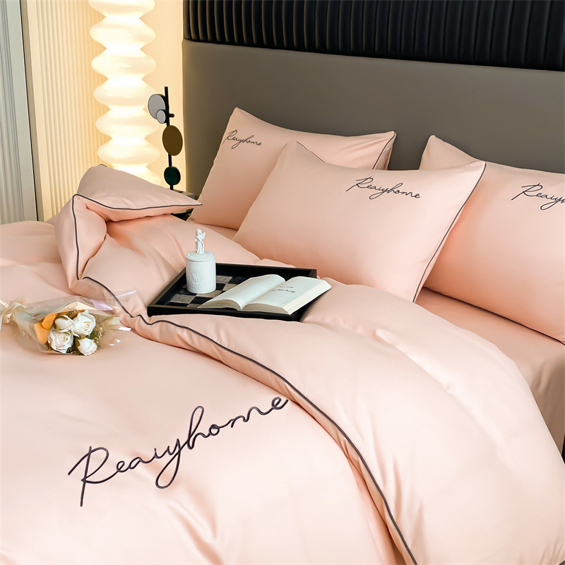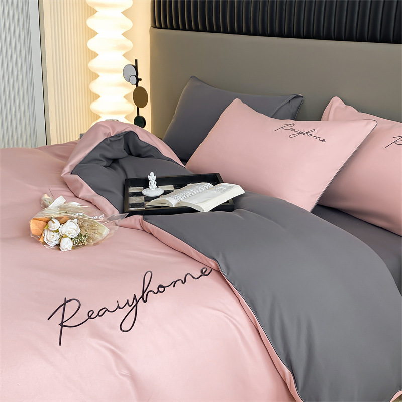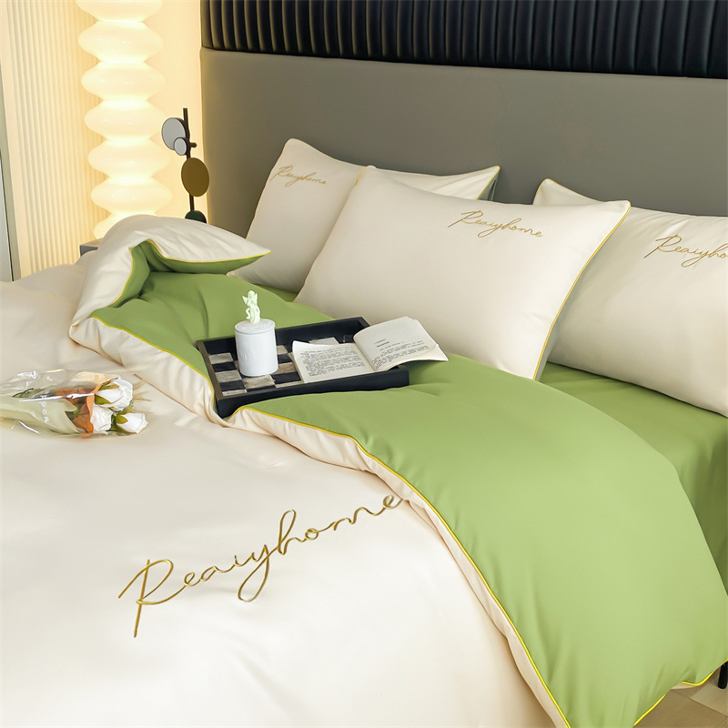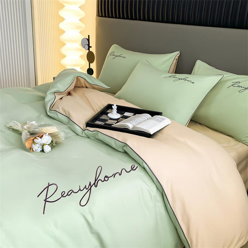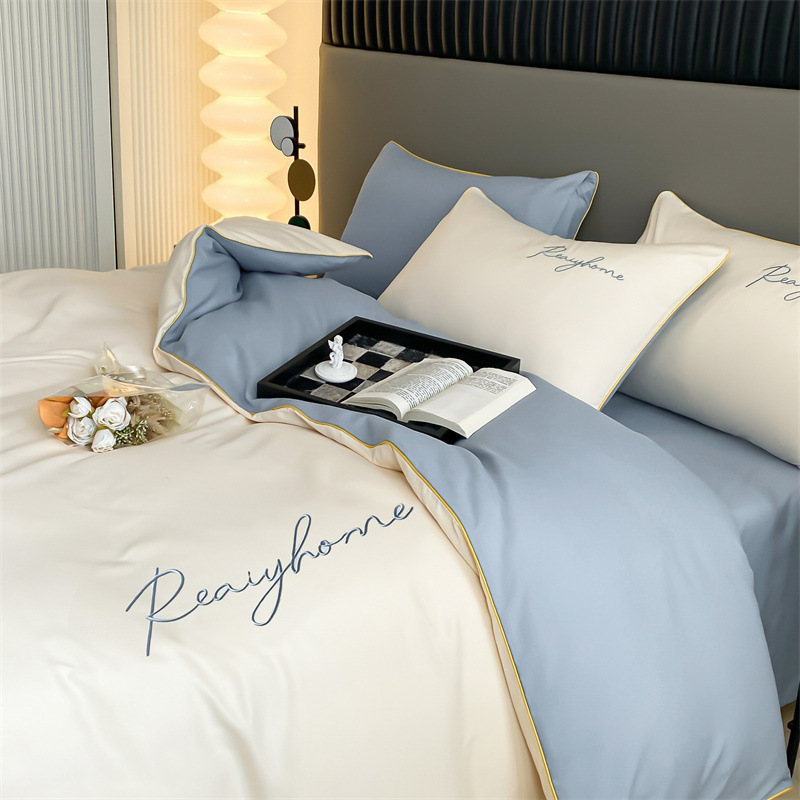 가벼운 럭셔리 고급 워싱면 샌딩 4 피스 침대 시트 이불 커버 학생 기숙사 침대 모자 3 피스 침구 세트