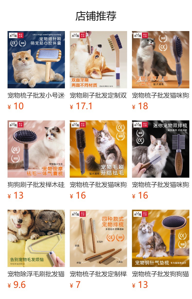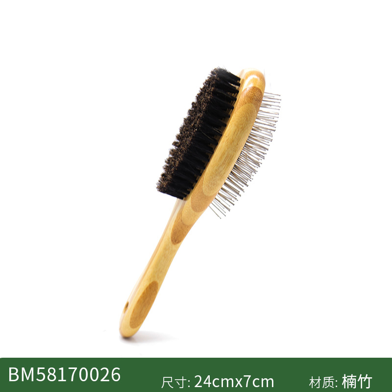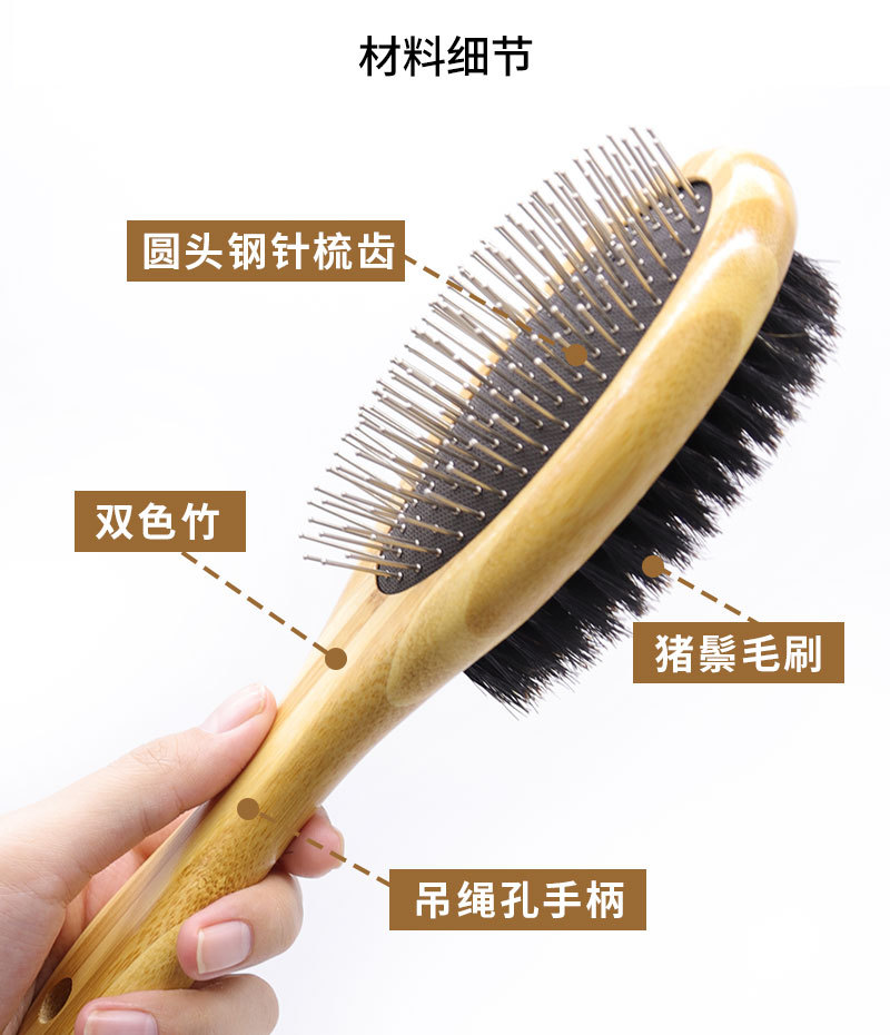 강아지 빗 도매 대형 소형 대나무 양면 돼지털 강철 바늘 애완동물 빗 털 제거 청소 마사지 브러시스토어 가기
