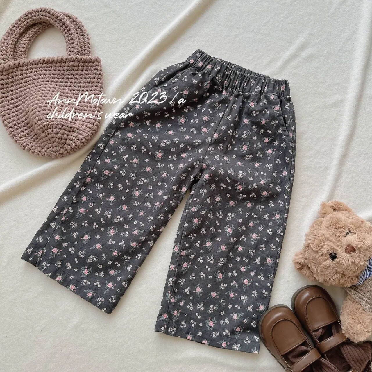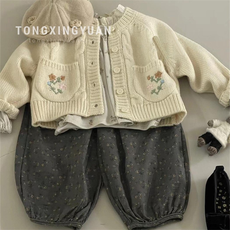 아동용 가을 여아 니트 조끼+레이스 칼라+꽃무늬 와이드 팬츠 3종 세트 캐주얼하고 다재다능함스토어 가기