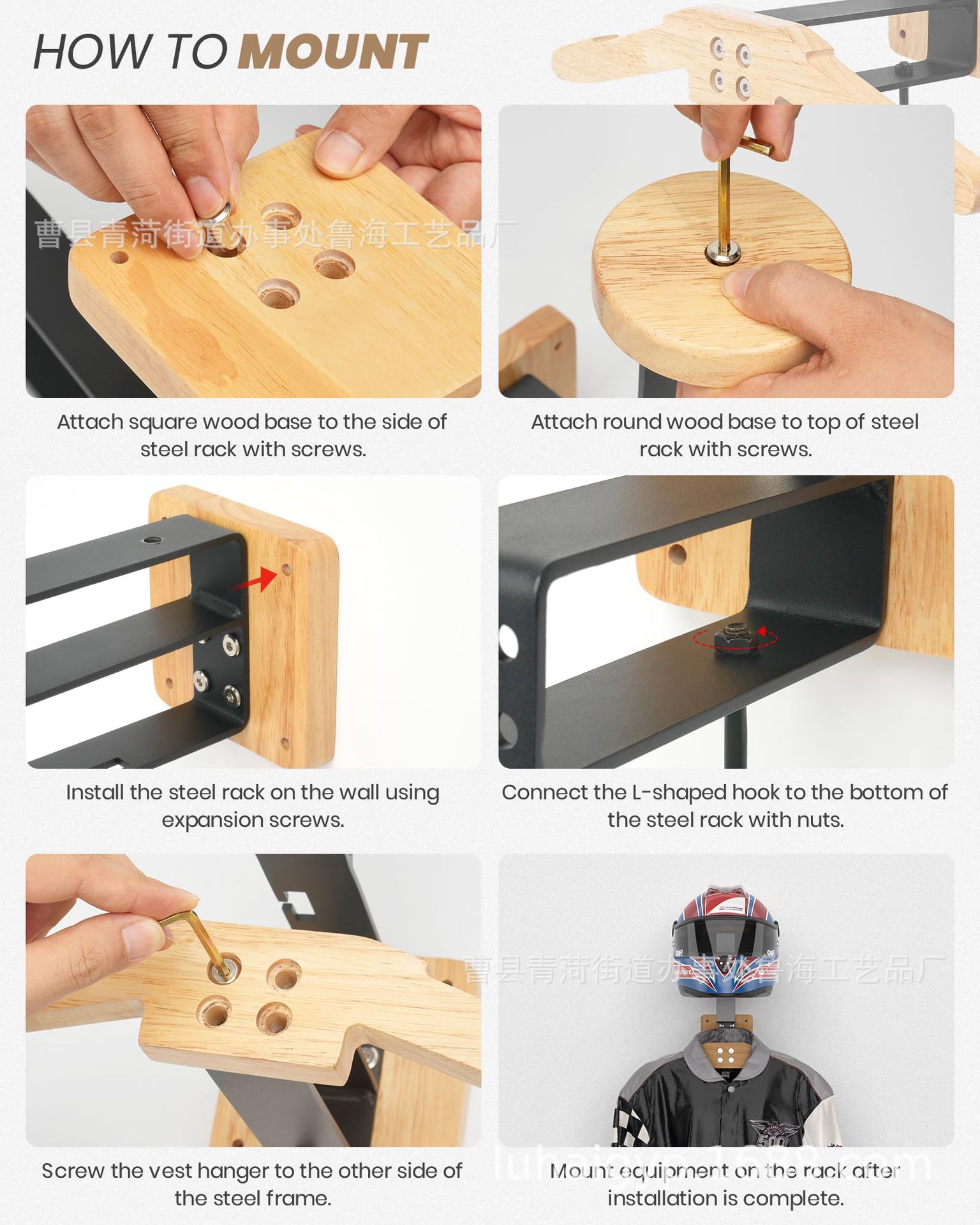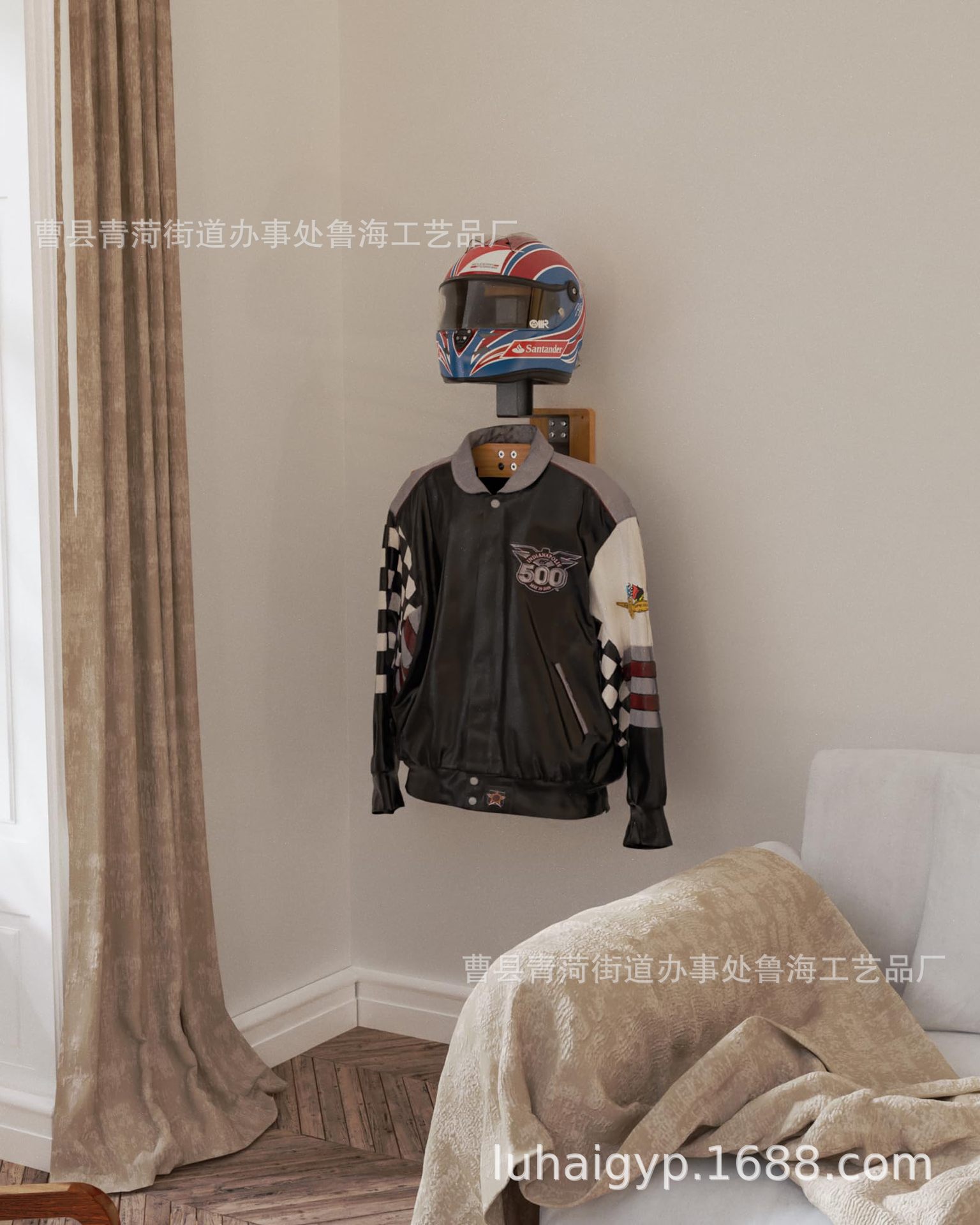 원목 헬멧 거치대, 헬멧 보관대, 벽걸이형 오토바이 의류 전시대, 철과 나무 결합 헬멧 거치대