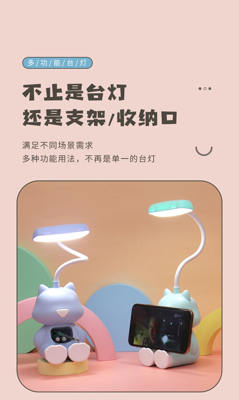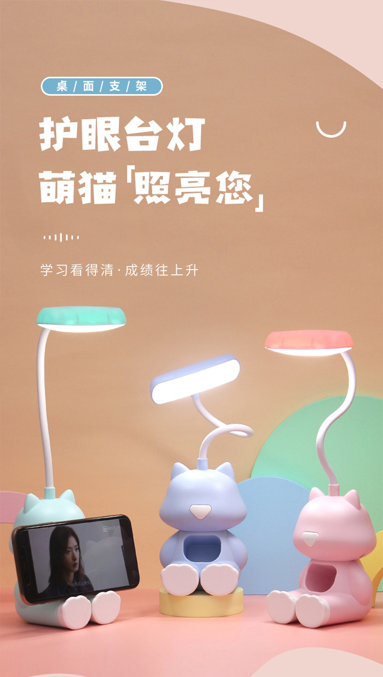 다기능 창조적 인 만화 충전식 책상 램프 학생 독서 학습 LED 눈 램프 어린이 침실 침대 옆 램프